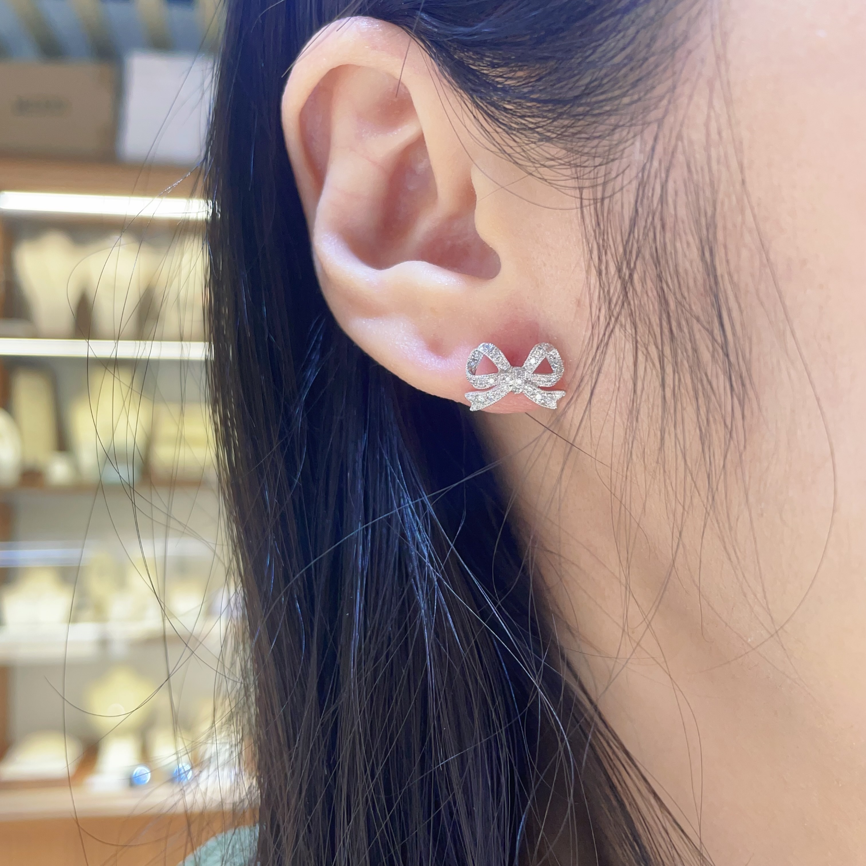 🎀 不管幾歲,心底總住著一個少女。鑽石蝴蝶結耳釘,將甜美與璀璨交織成最溫柔的呵護!