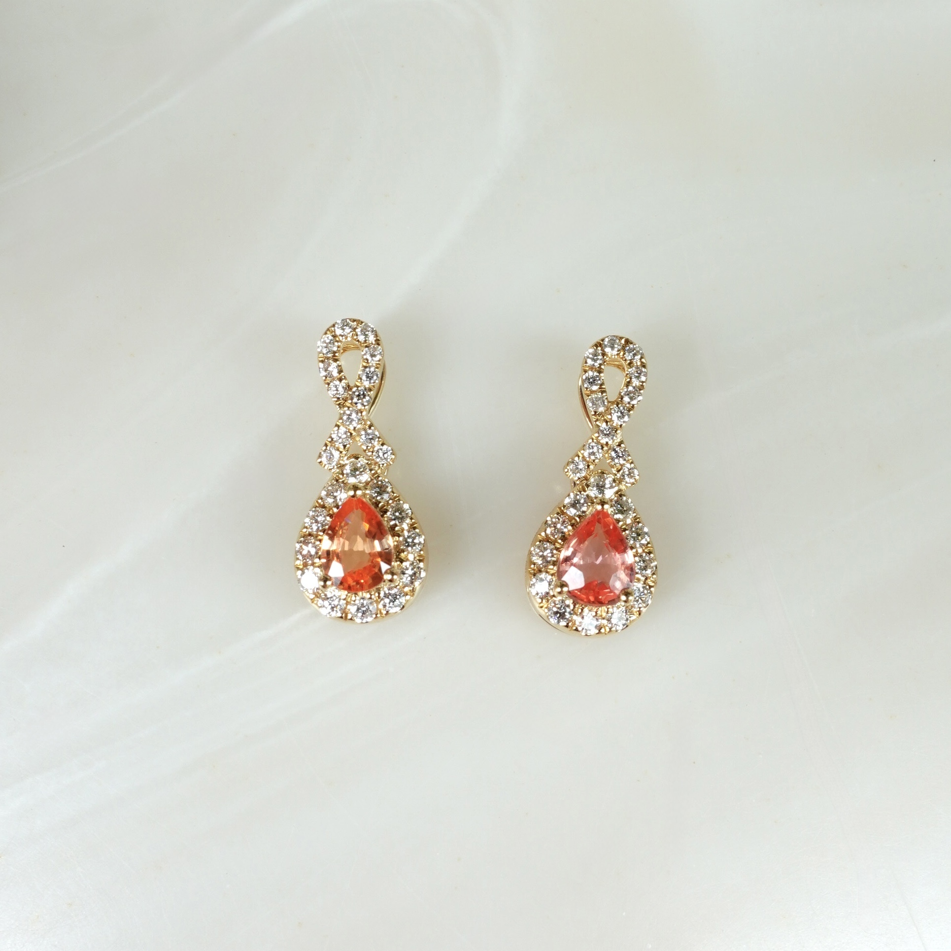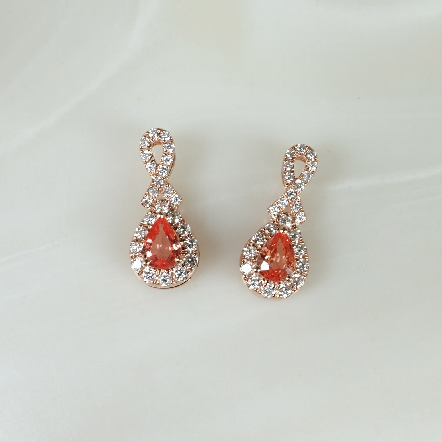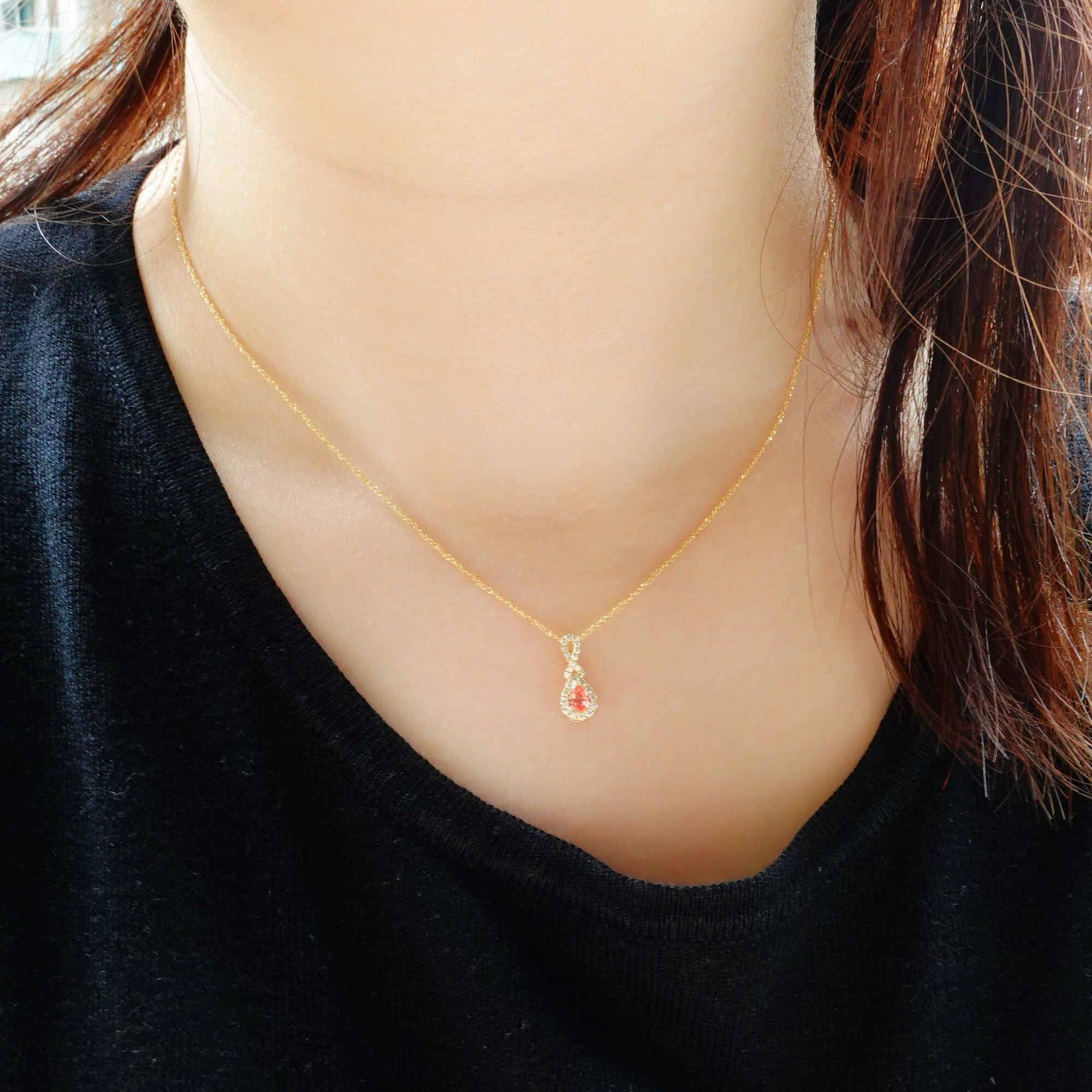 18K金Padparadscha鑽石復古吊墜/掛件 - 日落色