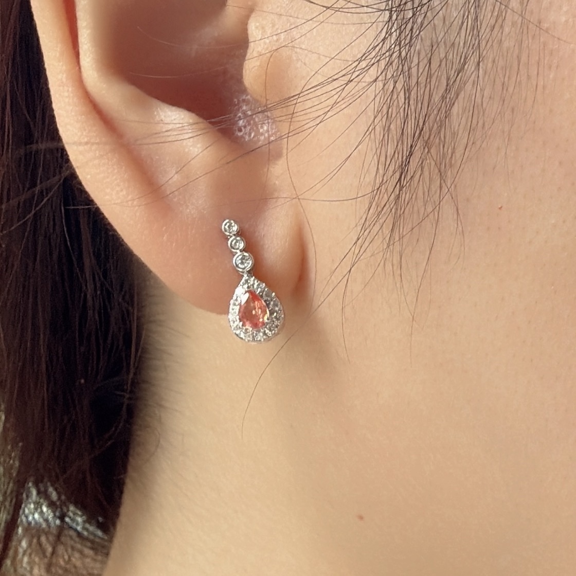 18K金Padparadscha鑽石復古耳釘 - 日落色