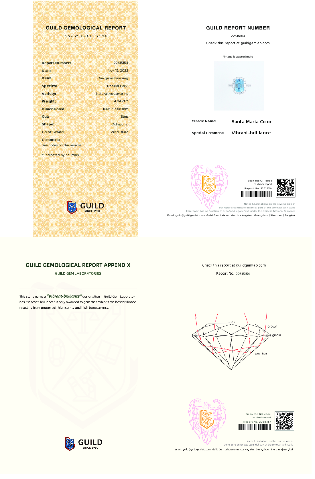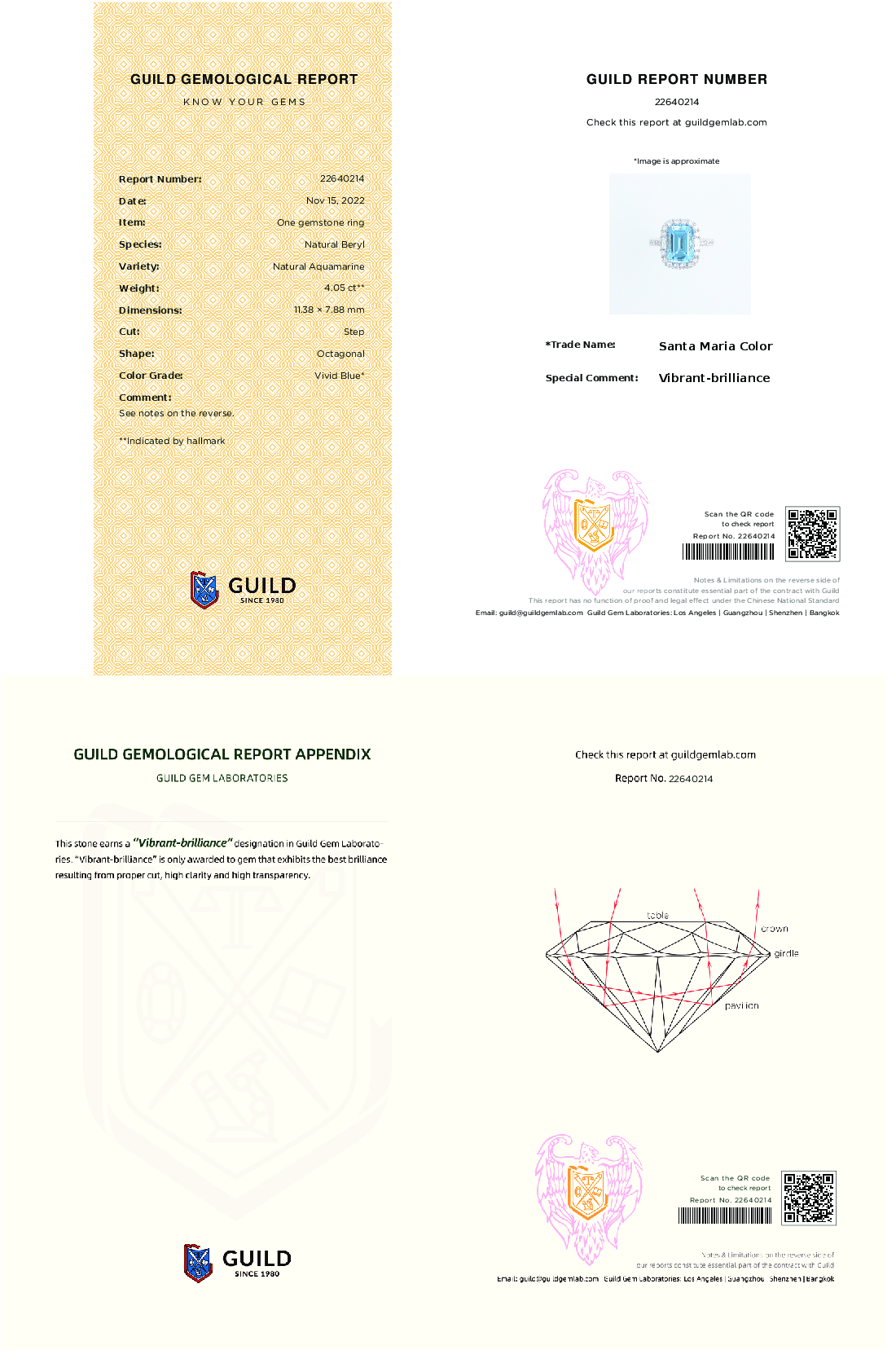 我們甄選的祖母綠切割海藍寶石,每每都能拿到Guild雙認證:「Santa Maria 」+ 「Vibrant Brilliance 」, 同時肯定了寶石的色級以及切工淨度的高標準!