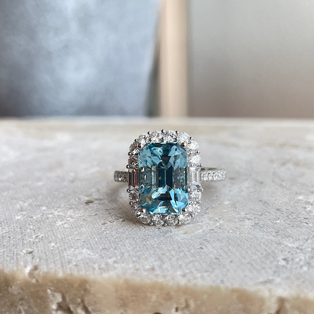 一般來說,淨度較好的海藍寶石會切磨成刻面,而祖母綠形切割刻面更是對淨度要求/考驗更高,因為台面大加之少切割面,不難從台面察看👀寶石有沒有內含物。