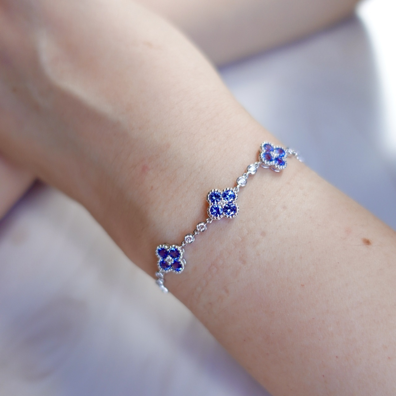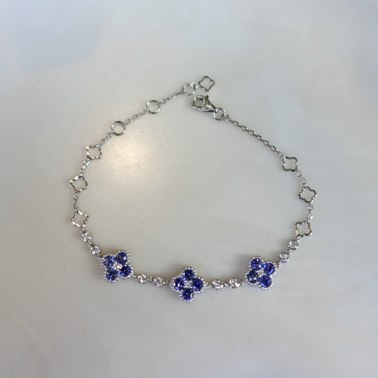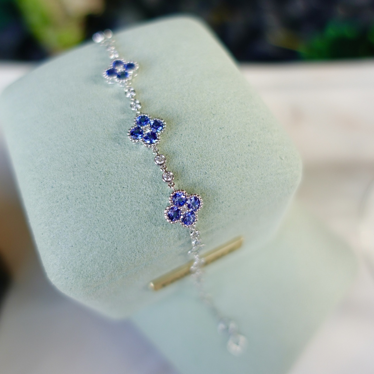 18K Gold Natural Blue Sapphires Diamonds Bracelet - Lucky Clover