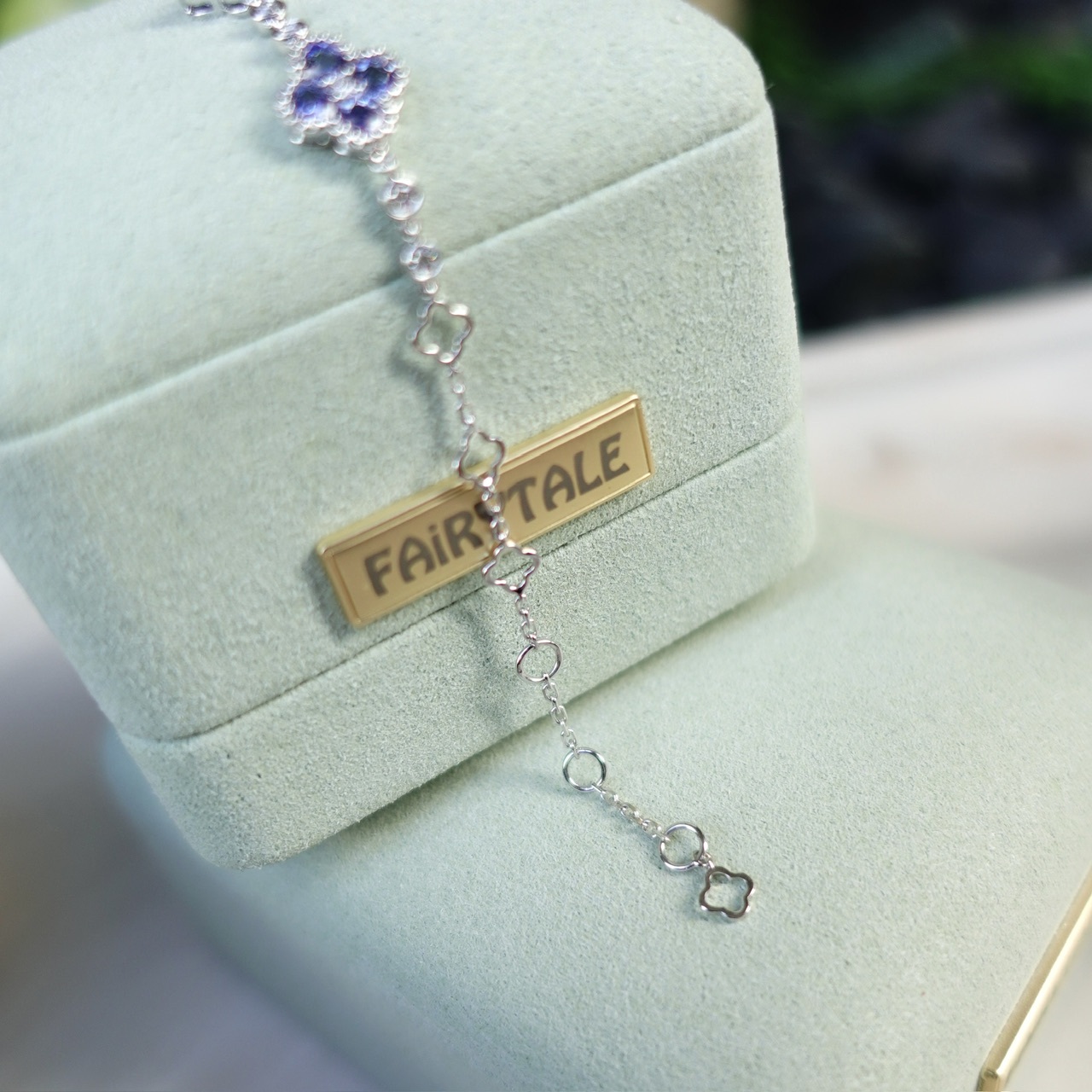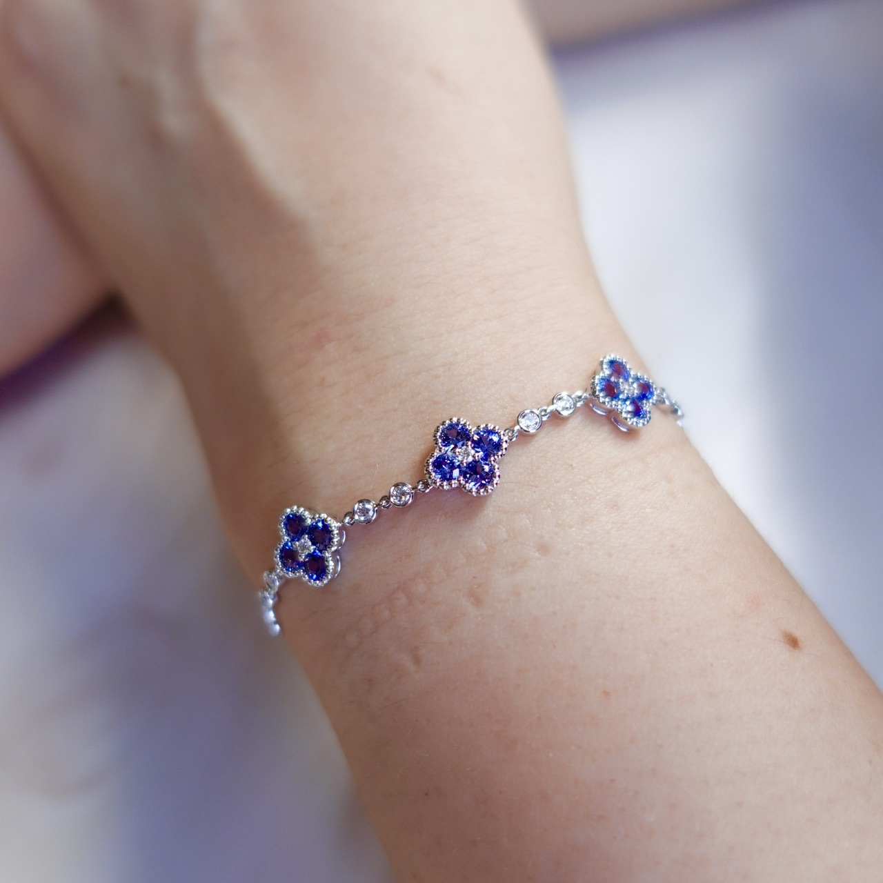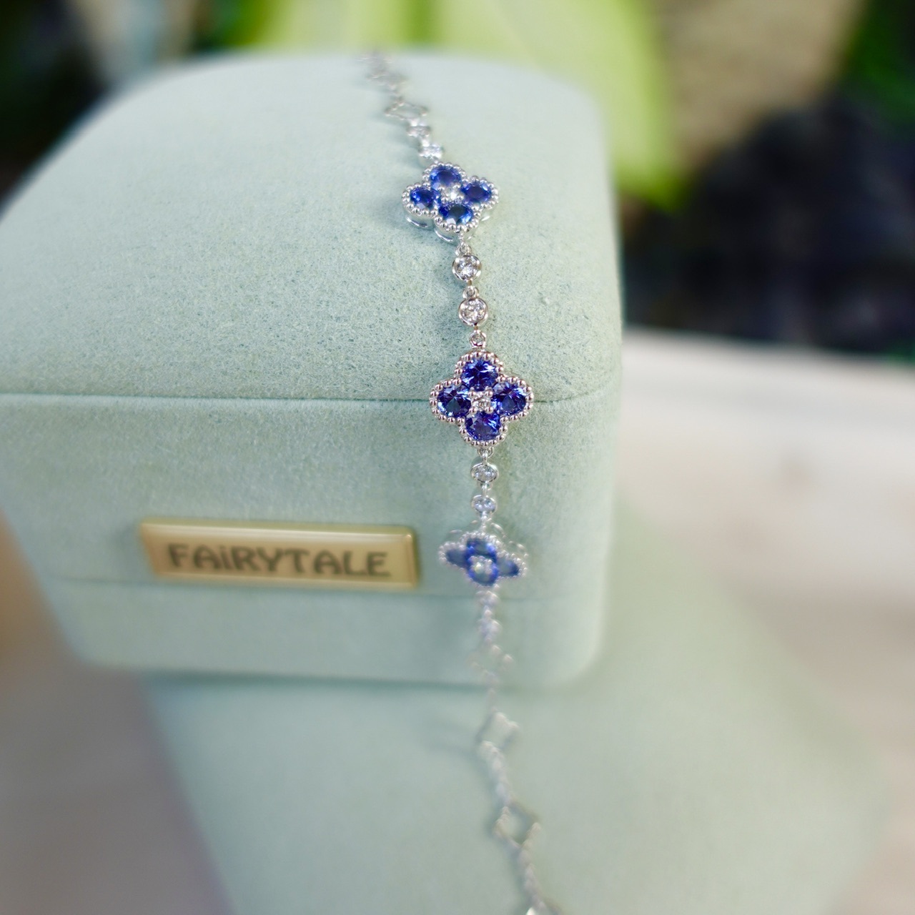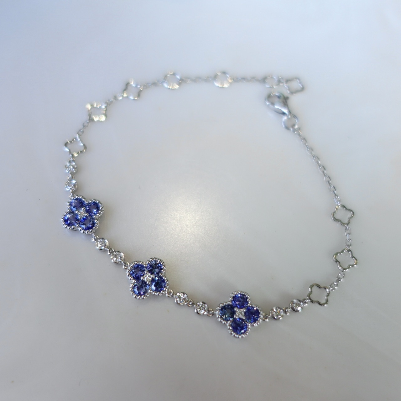 18K Gold Natural Blue Sapphires Diamonds Bracelet - Lucky Clover