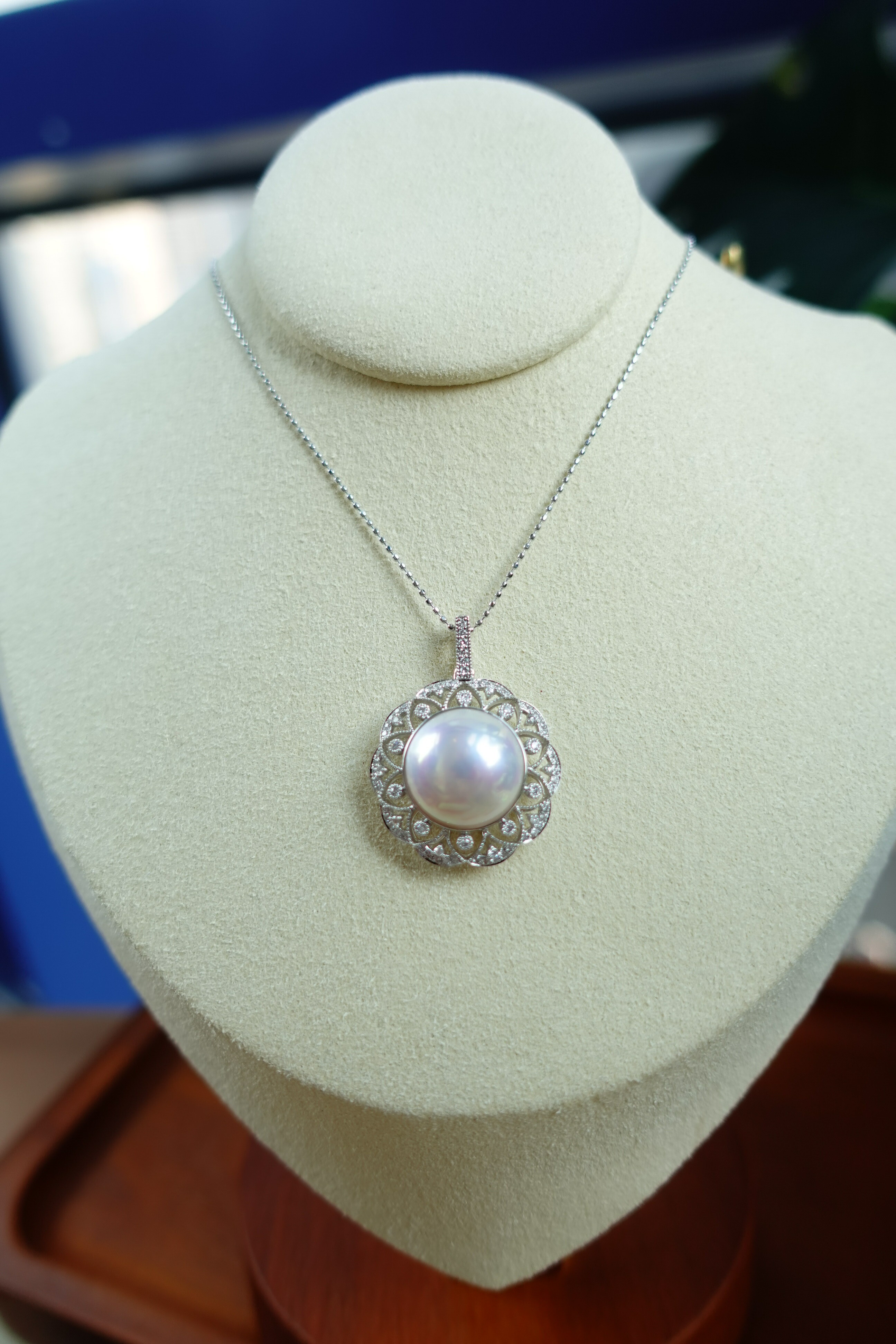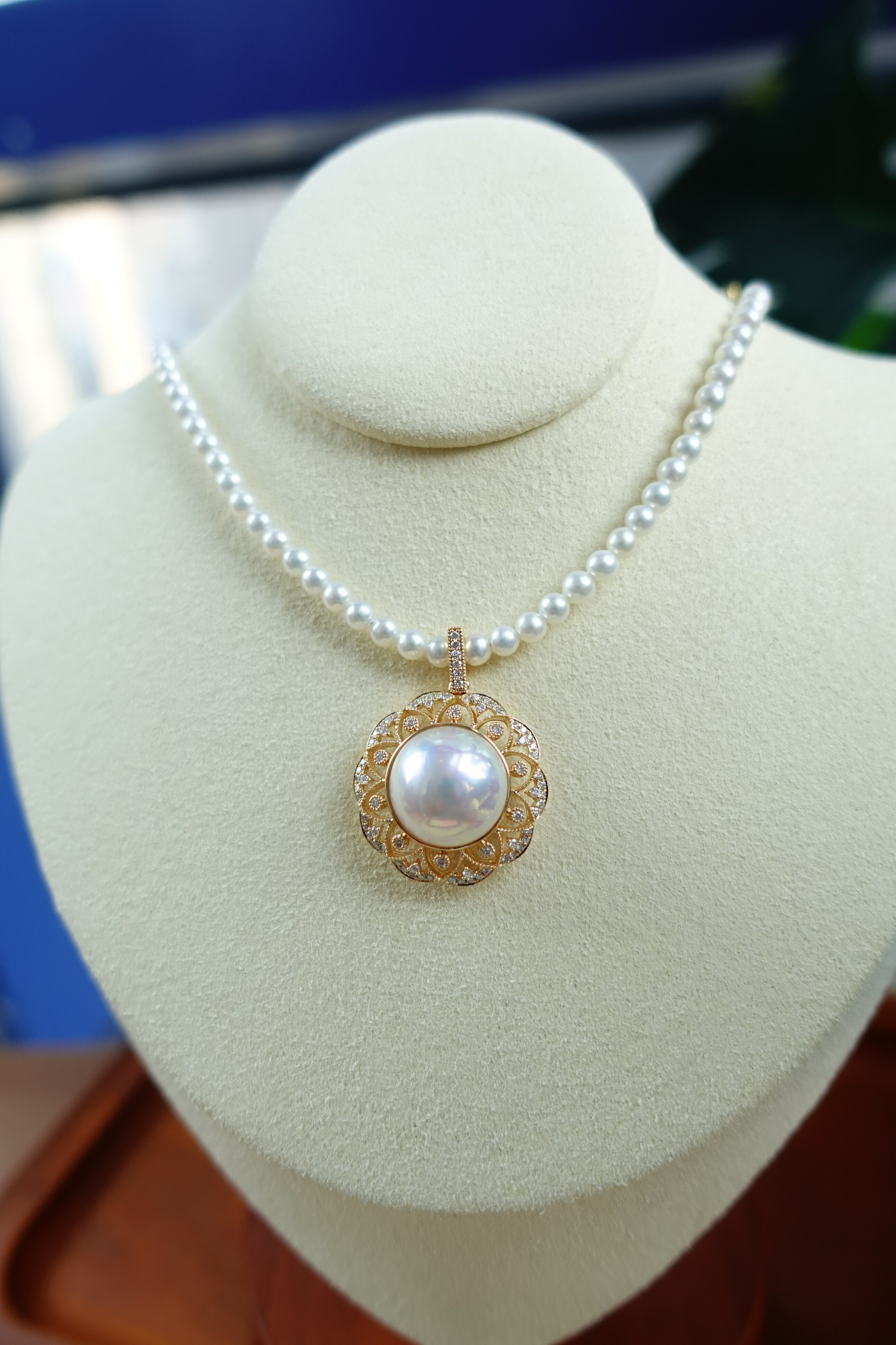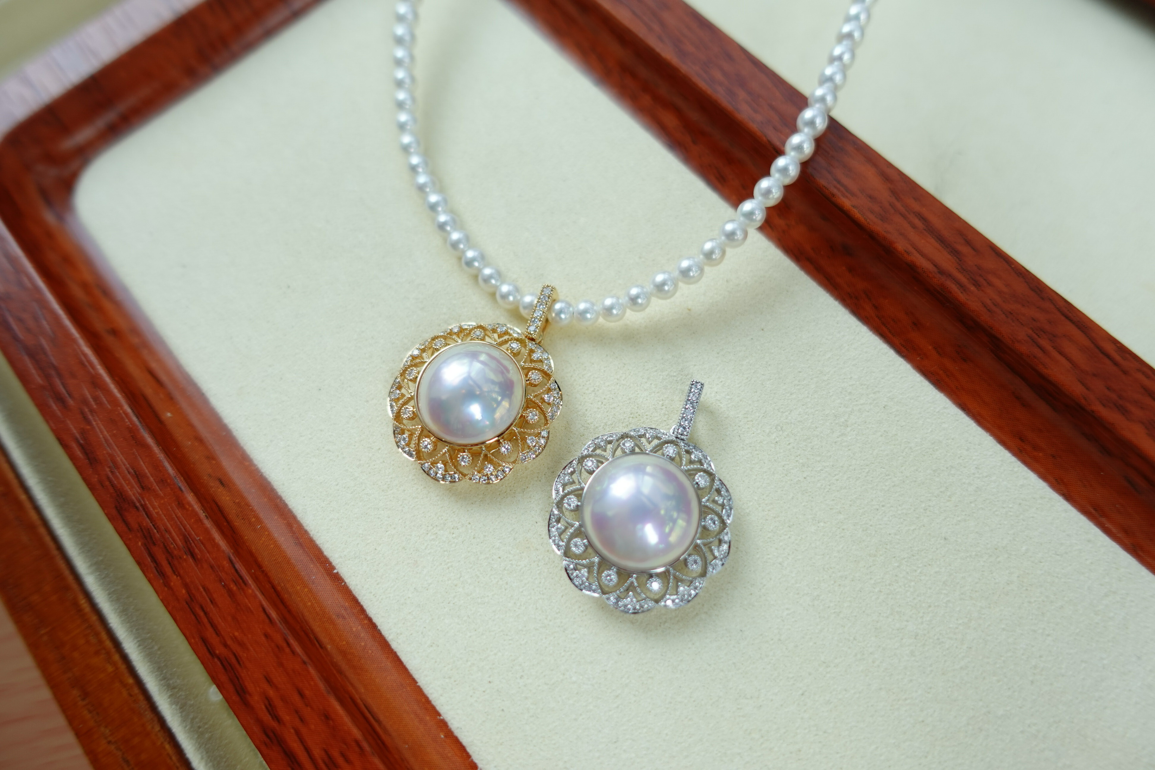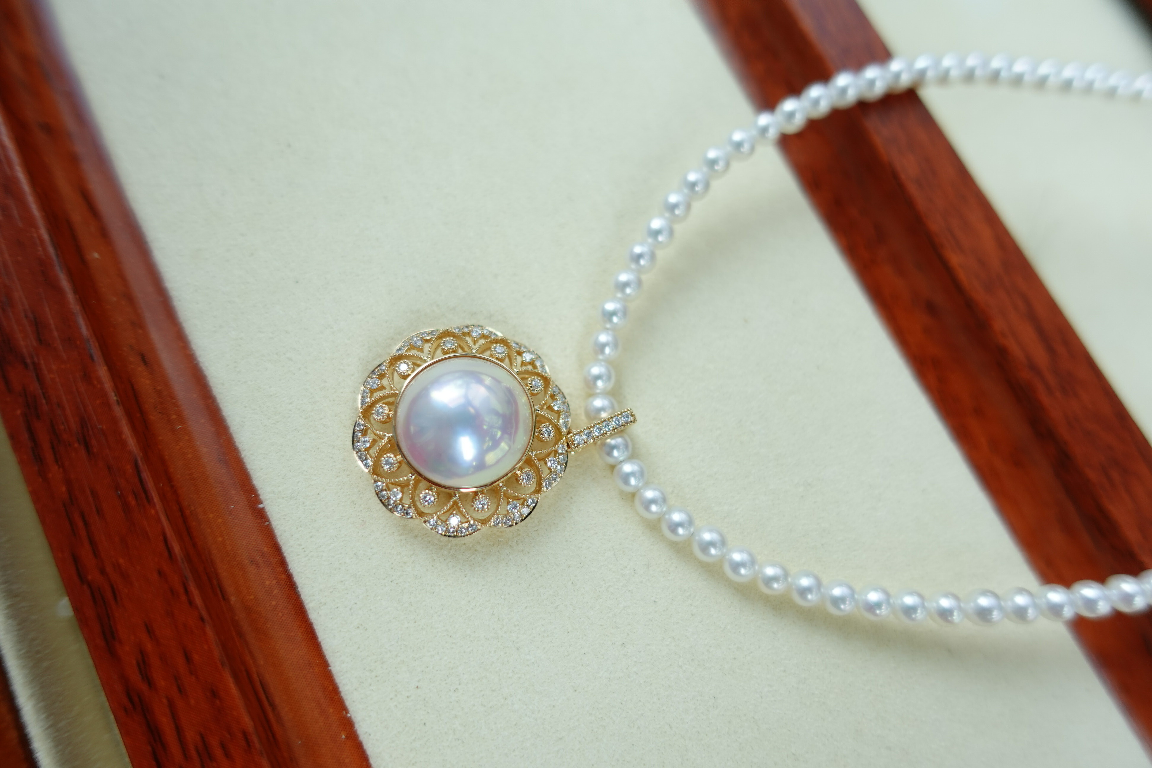 馬貝珍珠吊墜加小珍珠項鏈一套配戴很有法式氛圍感,滾珠邊加小碎鑽邊圍鑲的設計,為我們精選頂級皮光的日本馬貝珠帶來獨特的復古藝術感和貴族氣質,讓人一眼難忘!✨