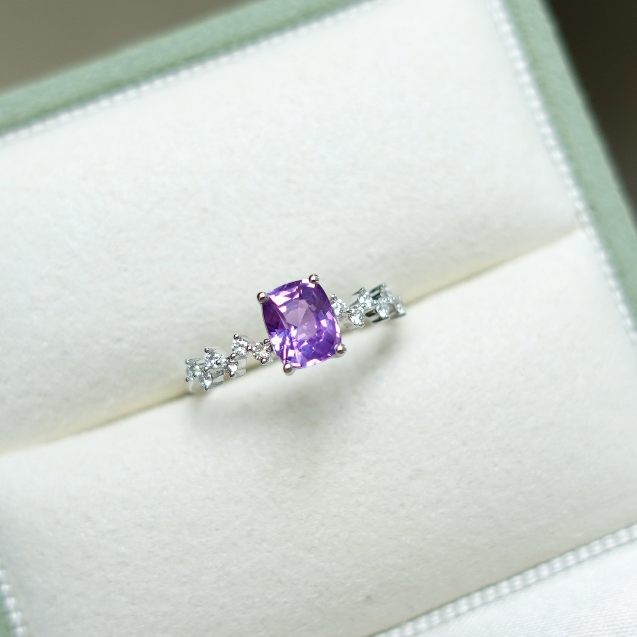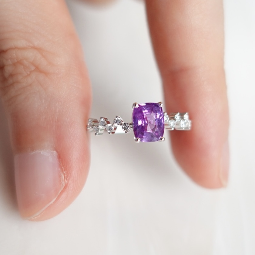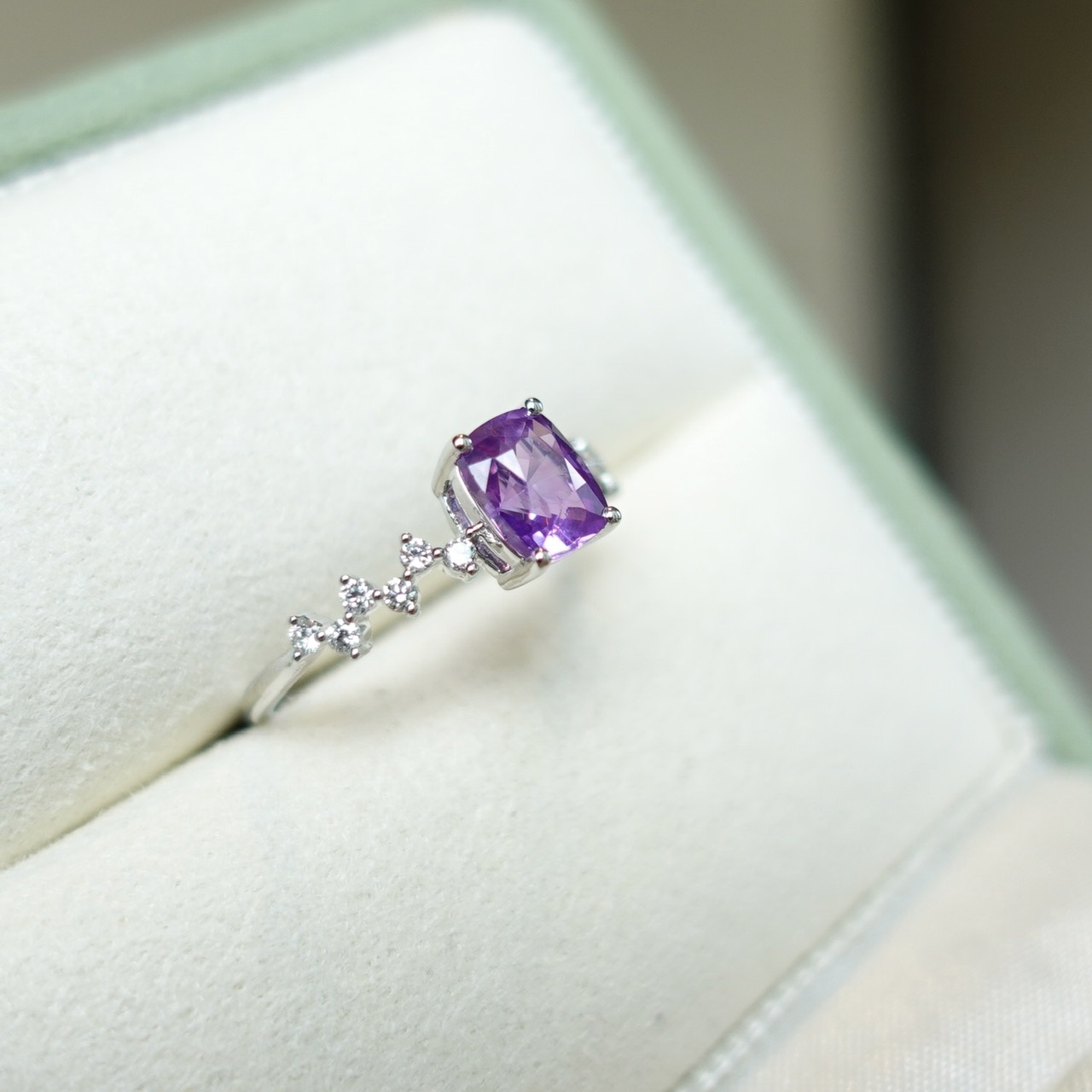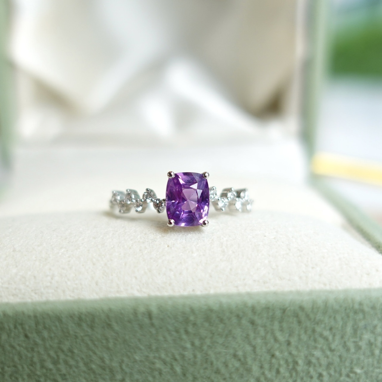 18K Gold Purple Sapphire ring with diamonds setting (With GUILD Cert)