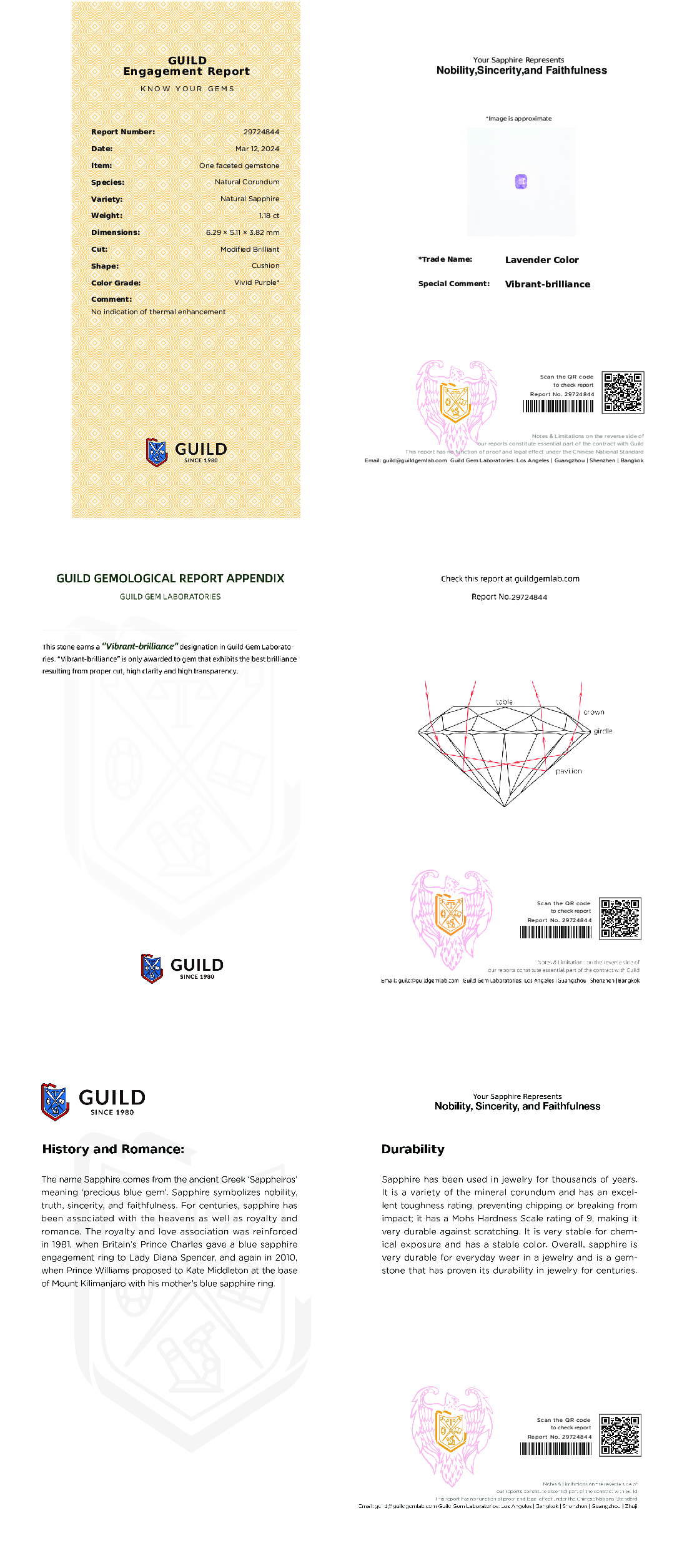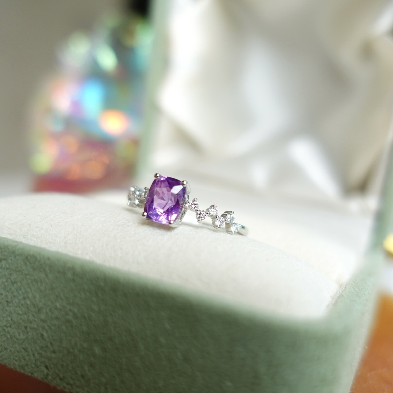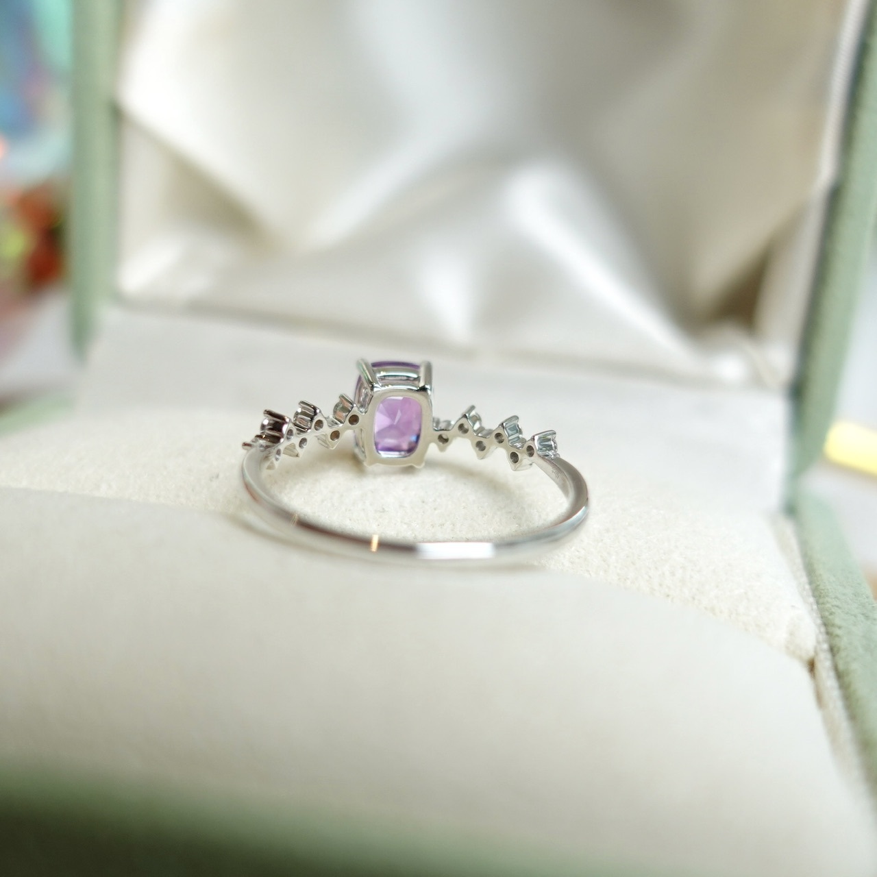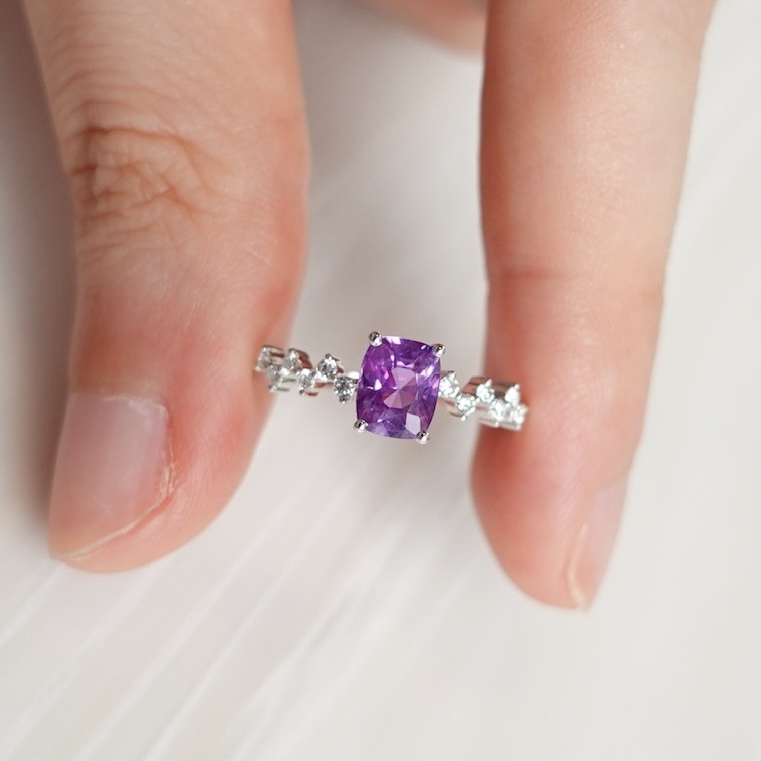 18K Gold Purple Sapphire ring with diamonds setting (With GUILD Cert)
