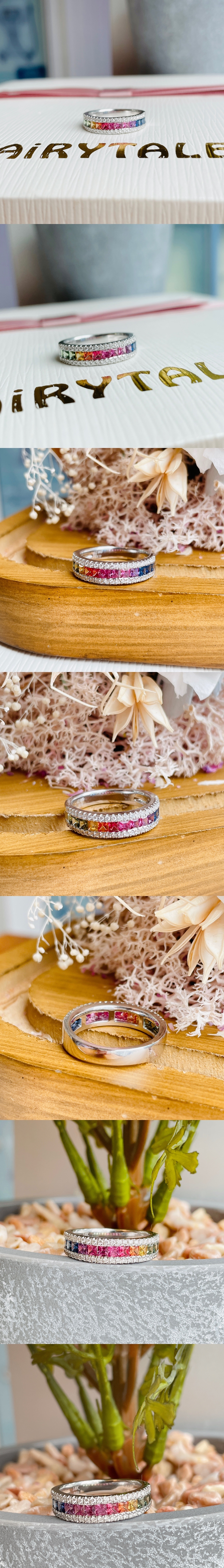 18K Gold Rainbow Sapphires with Diamonds setting - Single Row