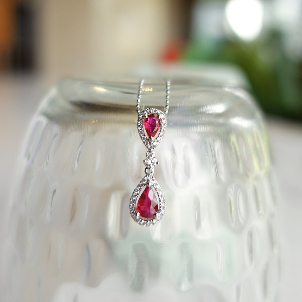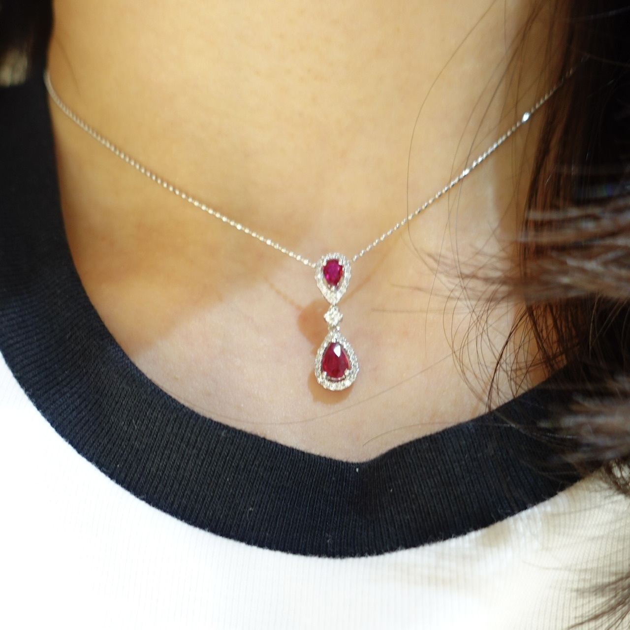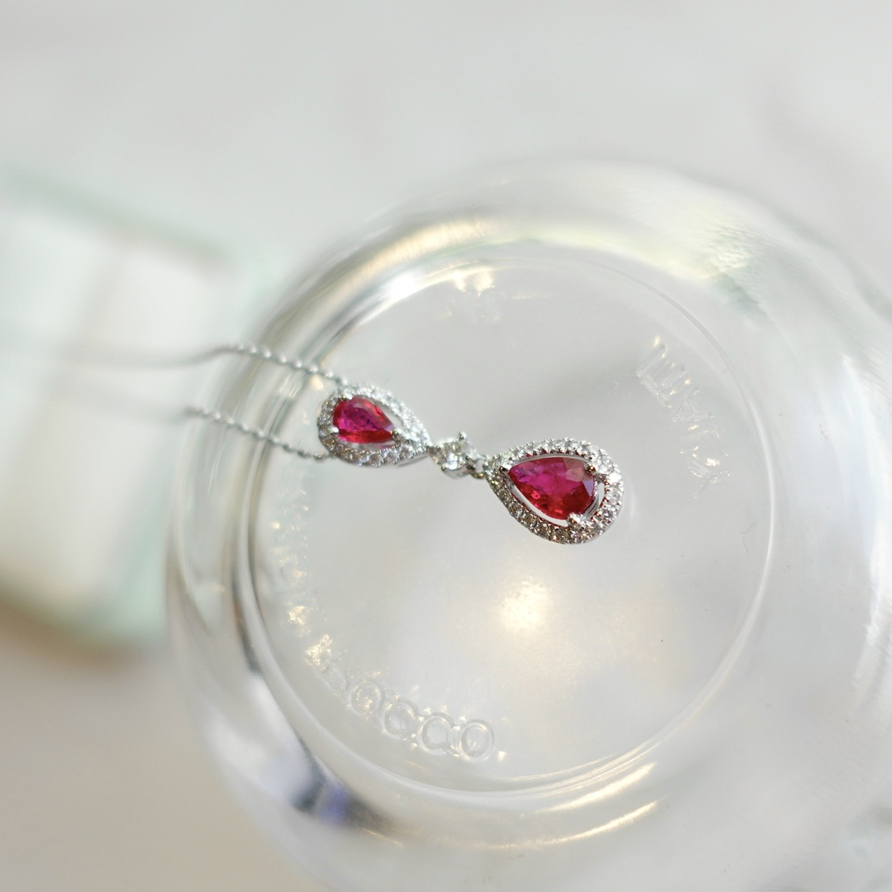 雙顆水滴紅寶,以一大小巧妙倒置相映,