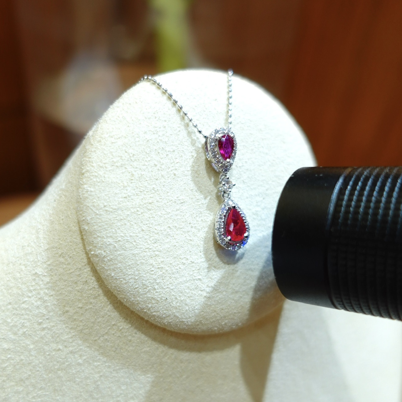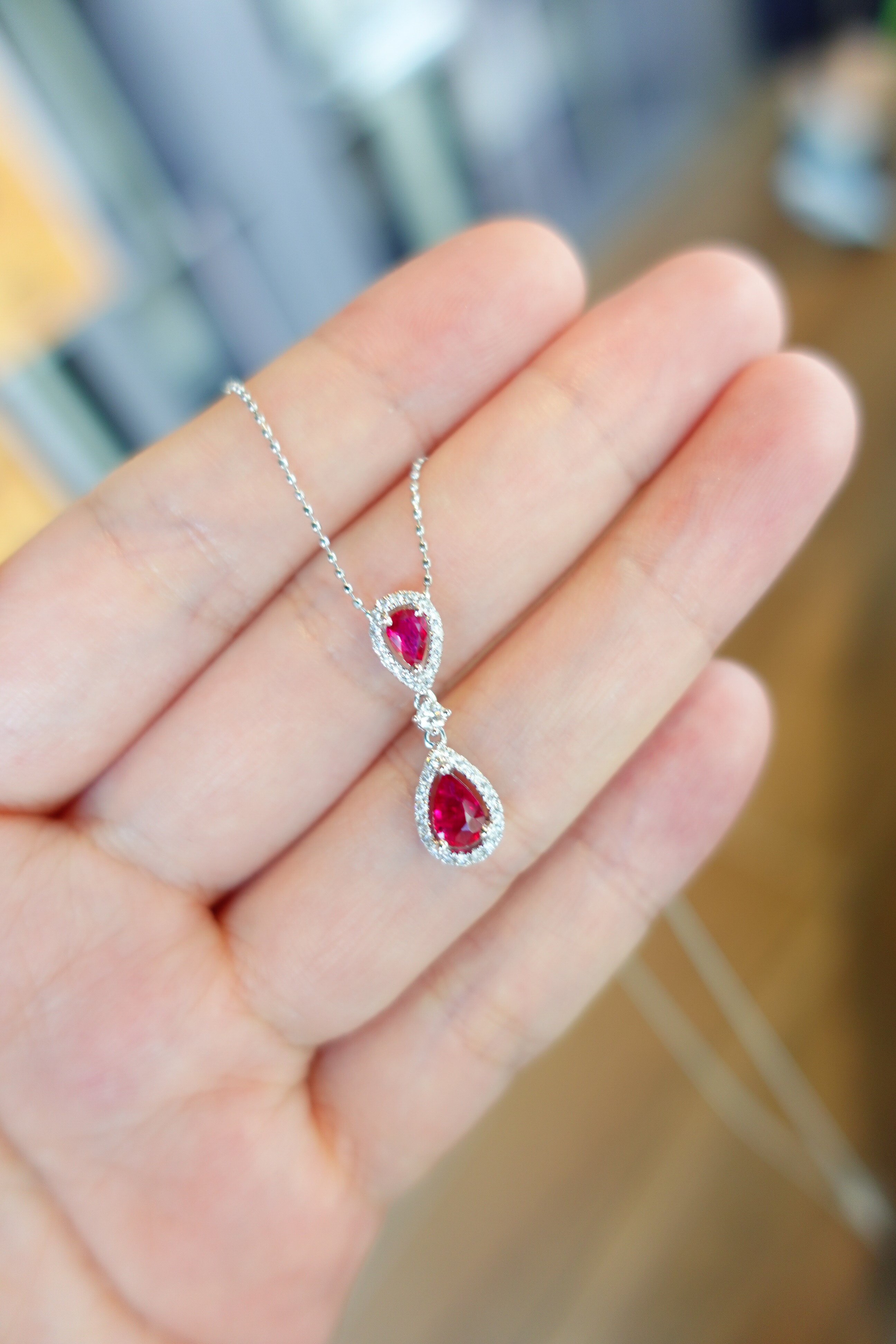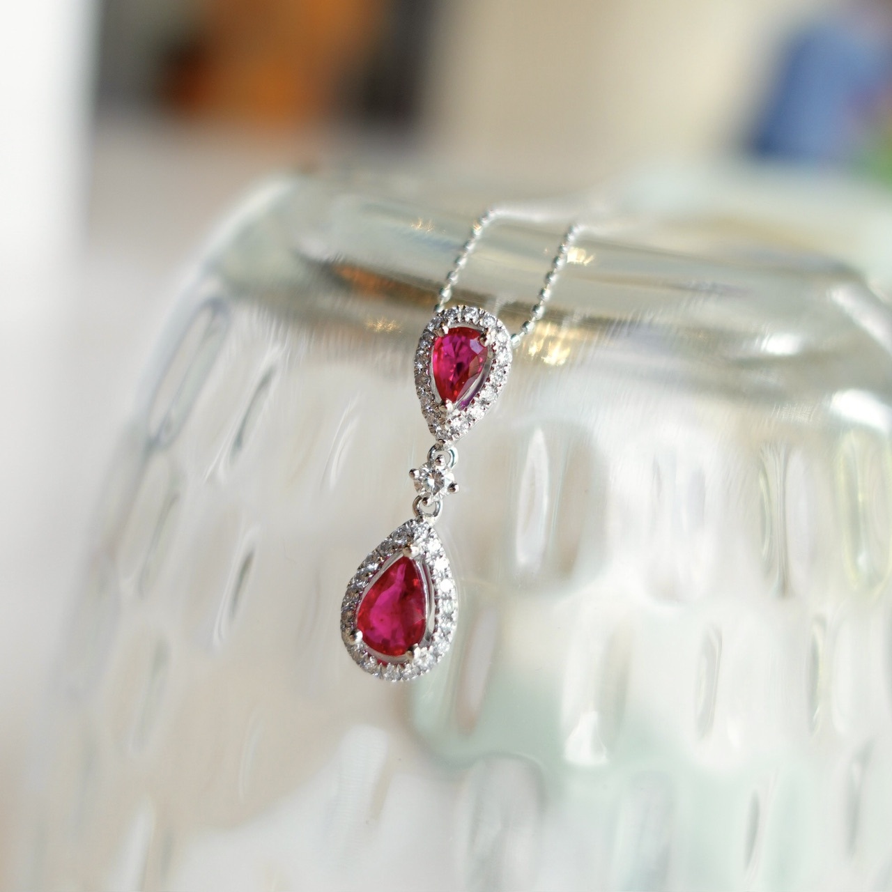雙顆水滴紅寶,以一大小巧妙倒置相映,