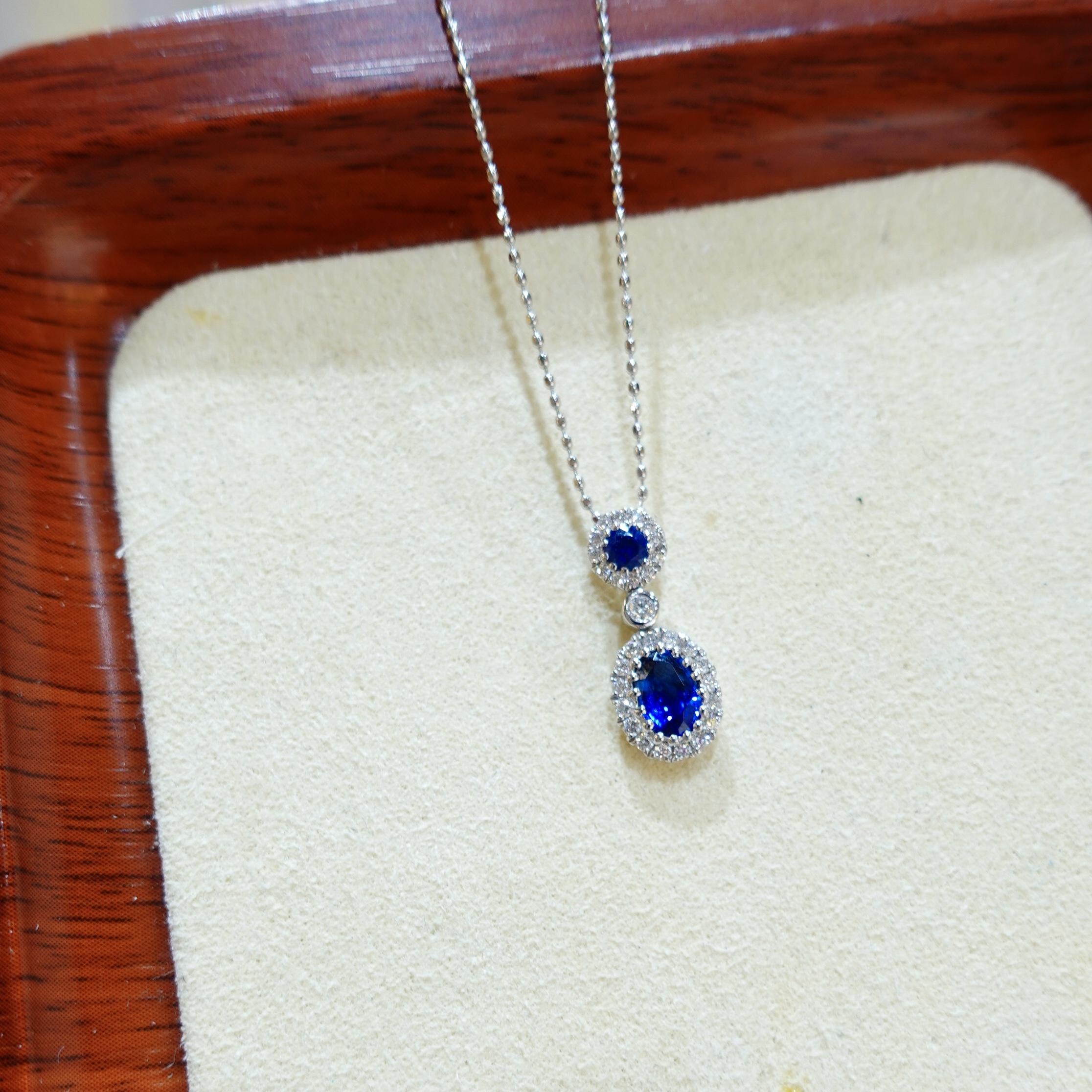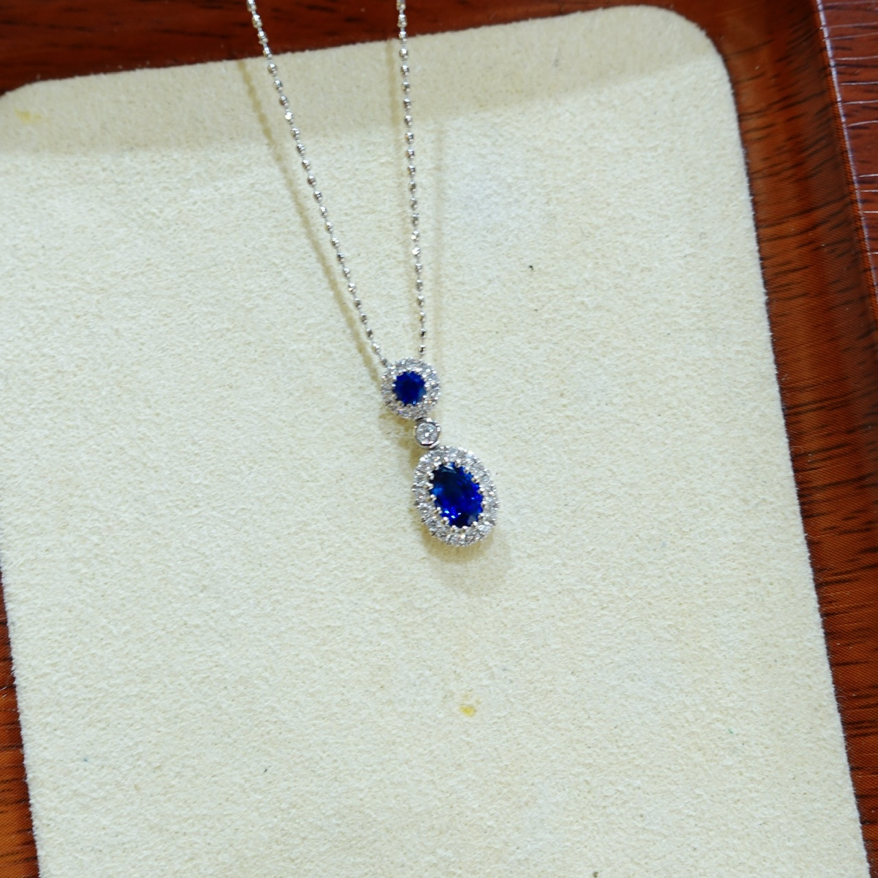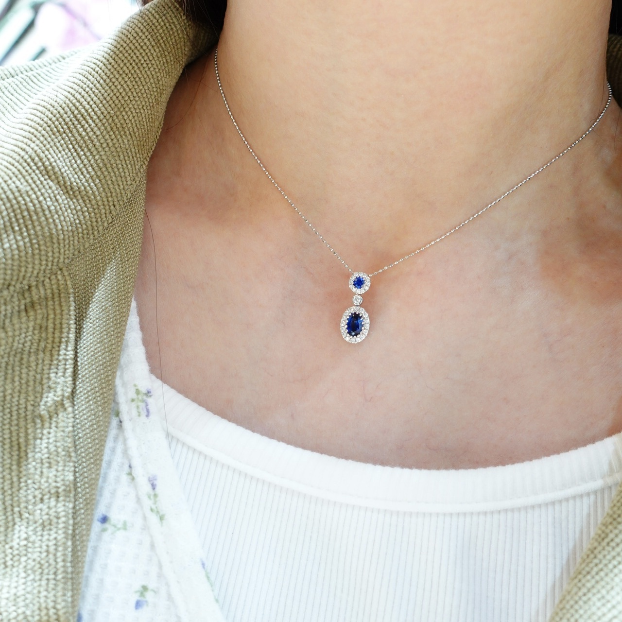 18K Gold Blue Sapphire Pendant with Diamonds setting - Oval
