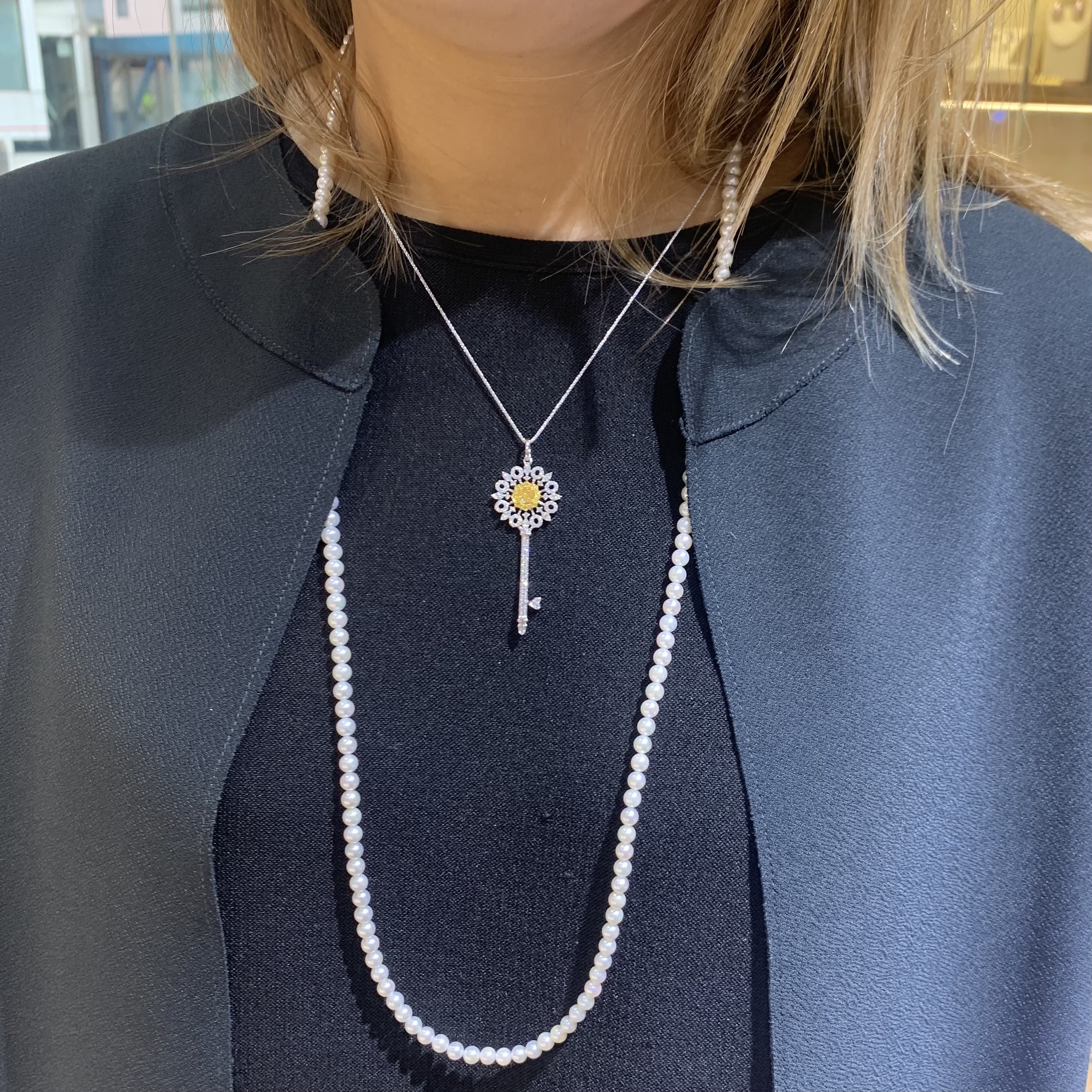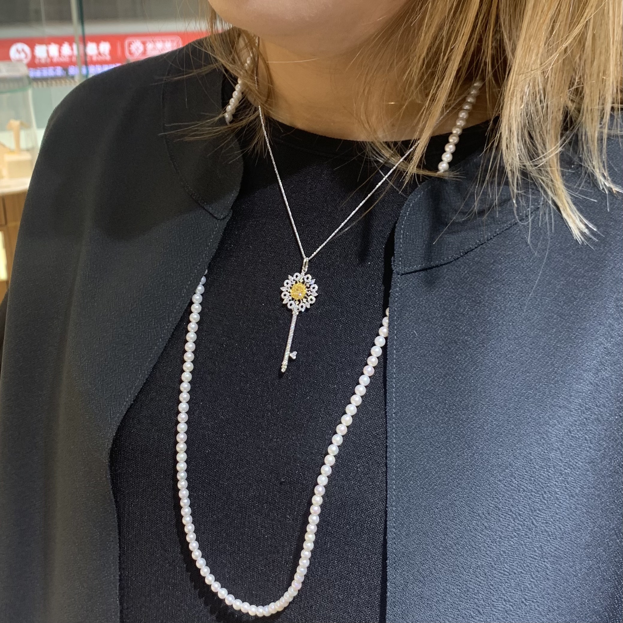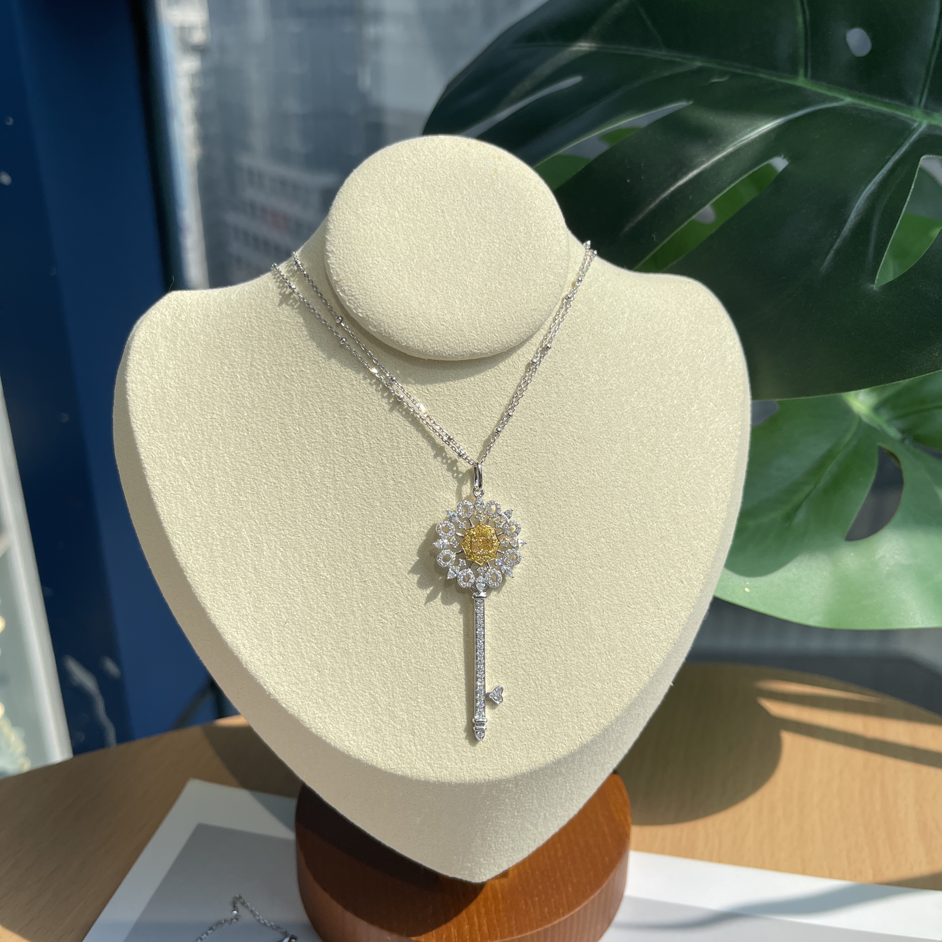 纖細精緻的鑰匙吊墜在項間擺動,為自信平添了一種特別的堅韌氣質,搭配鑲飾於吊墜的鑽石,煥發出迷人光彩