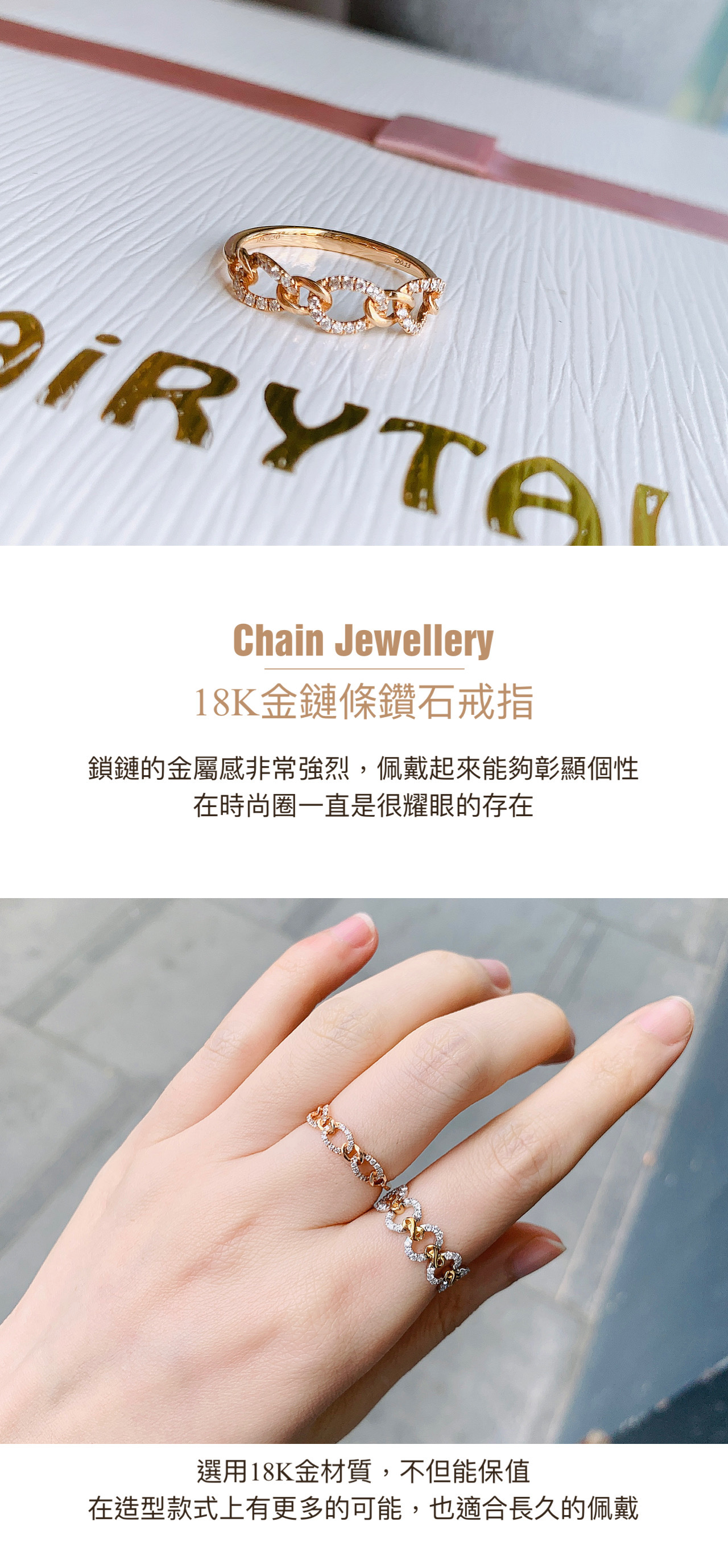 18K金鏈條造型鑽石戒指