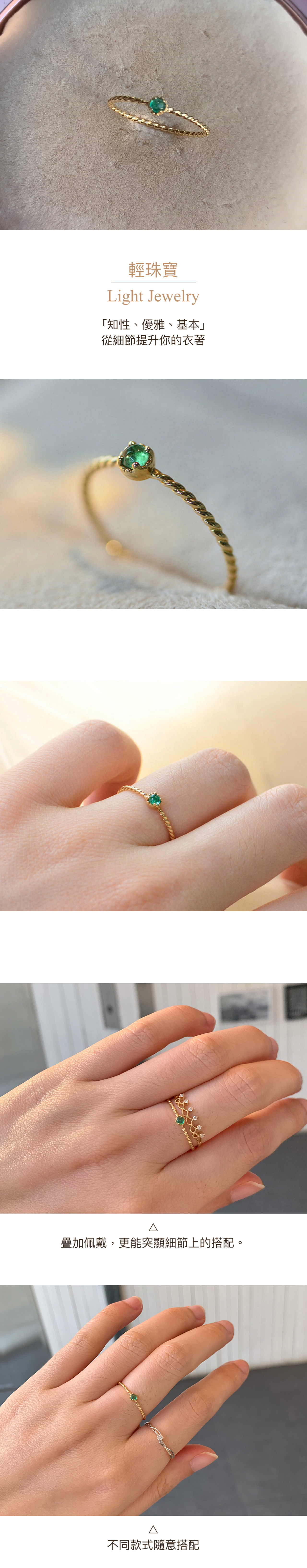 素面的祖母綠,尤如宇宙中的星球在運轉,閃耀的小星球在指間轉動,將它的光亮傳遞給妳,正如妳的閃閃愛亮的魅力總會被看見。