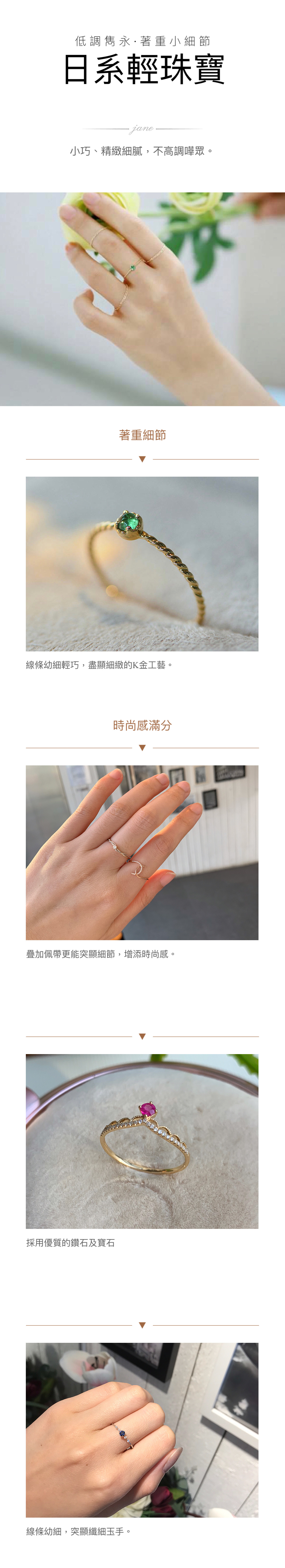這一系的輕奢戒指以18K金工打造,優質的鑽石及寶石鑲嵌而成,線條幼細輕巧之餘盡顯細緻的工藝,日常外出可與多個不同風格的款式隨意搭配,也可作尾戒,增添時尚感。疊加佩帶更能突顯細節上的搭配。
