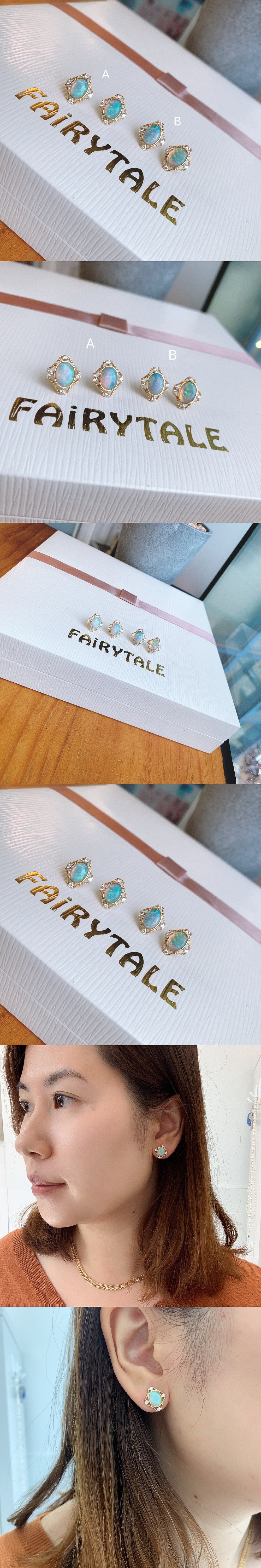 18K金澳洲Opal鑽石耳釘-鏤空滾珠邊