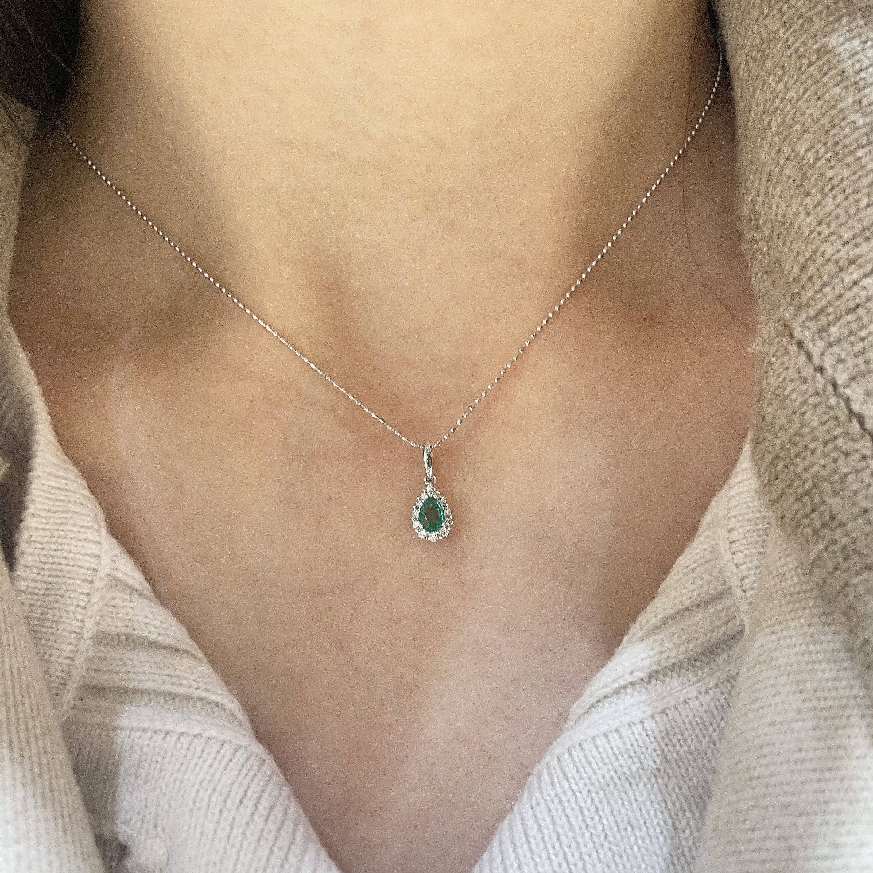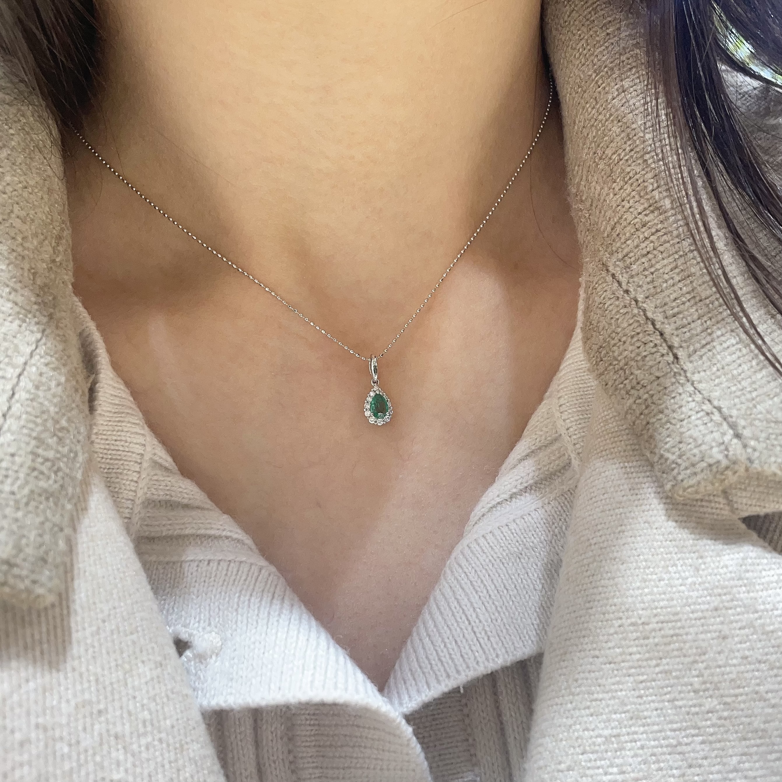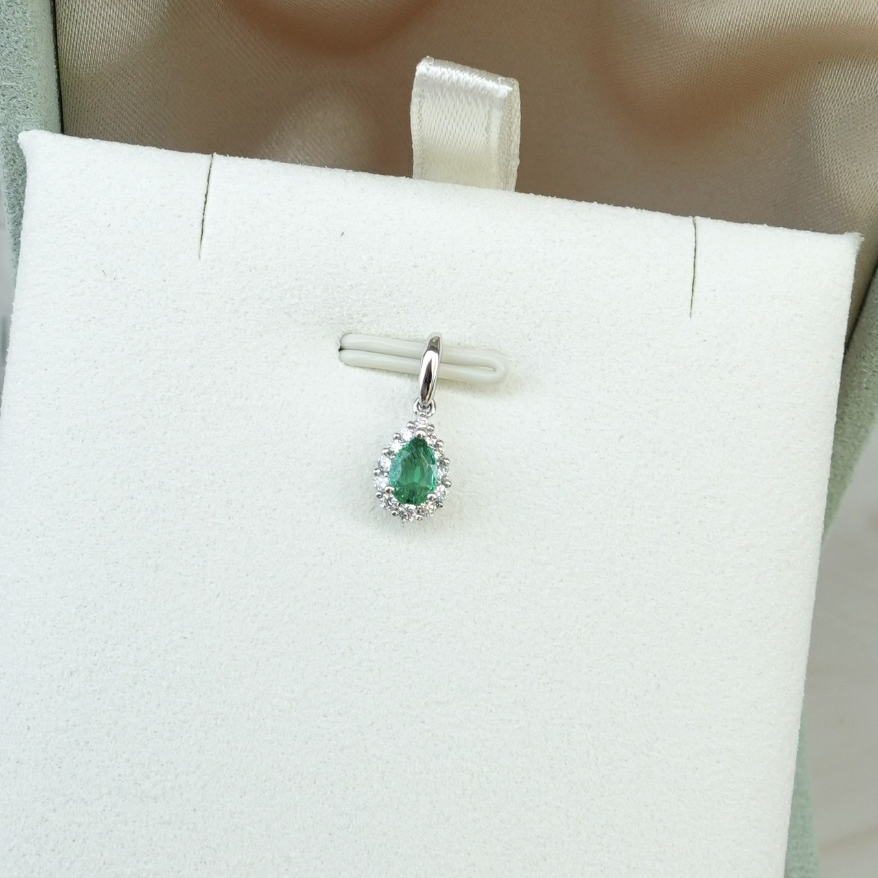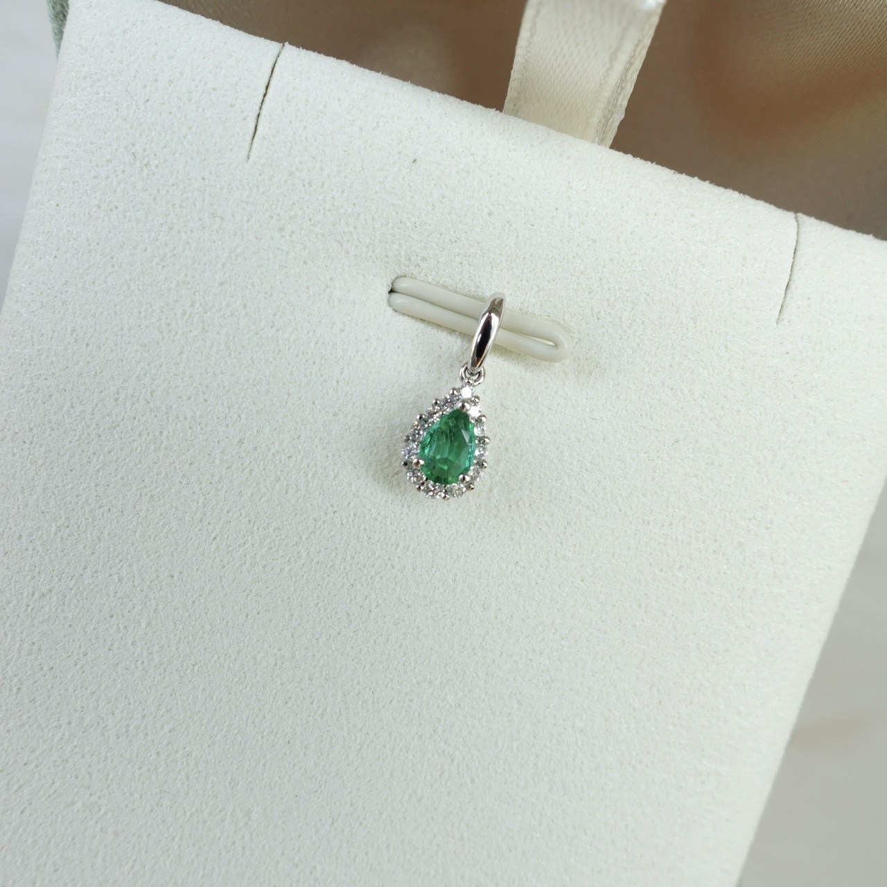18K金哥倫比亞祖母綠鑽石吊墜 - 水滴形