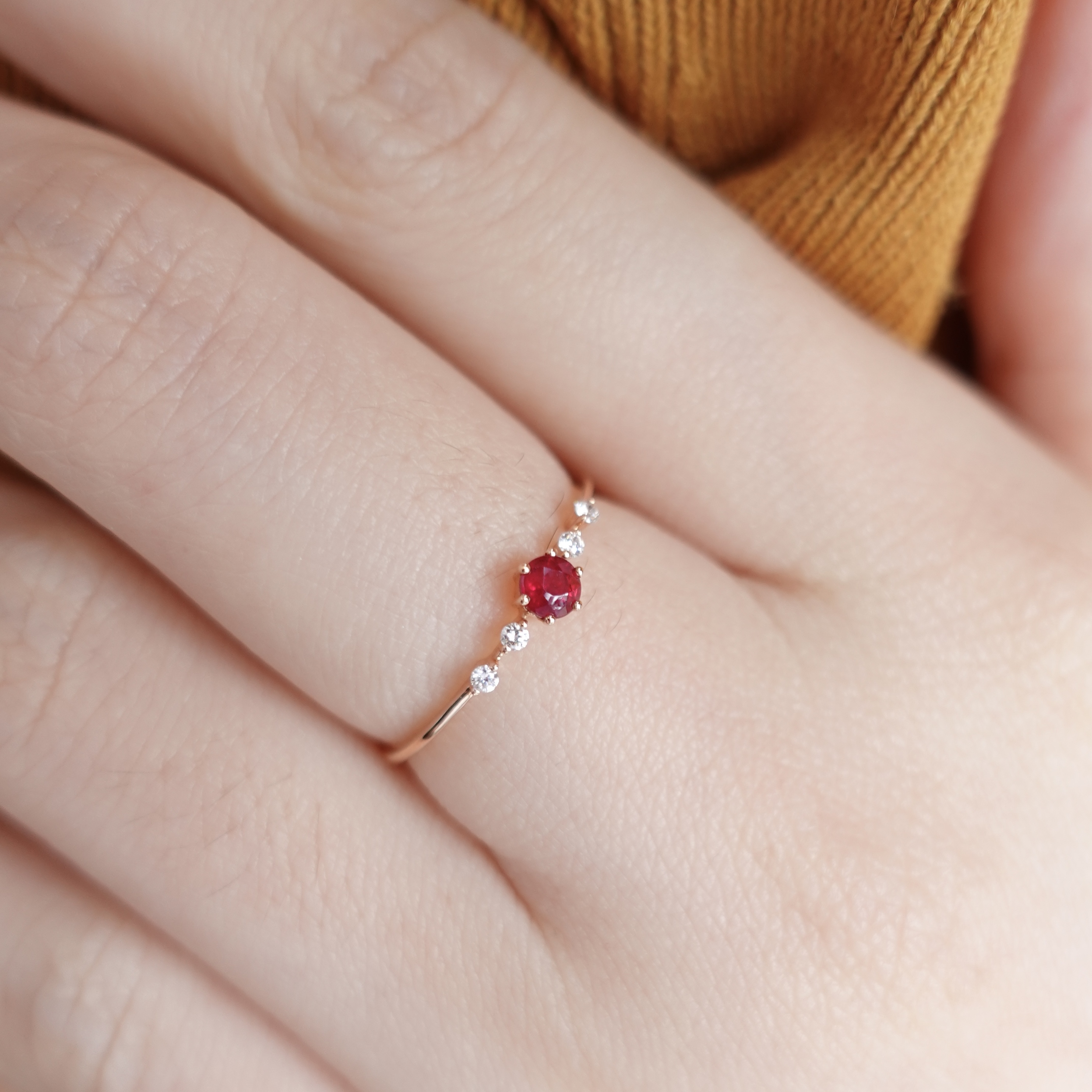 精緻細緻的質感,天然的紅寶石採用刻面切割,閃耀奪目,爪鑲工藝使其更牢固,紅寶主石被左右各兩顆小鑽石團繞,繁星點點,忽閃忽閃的,超美超好看。