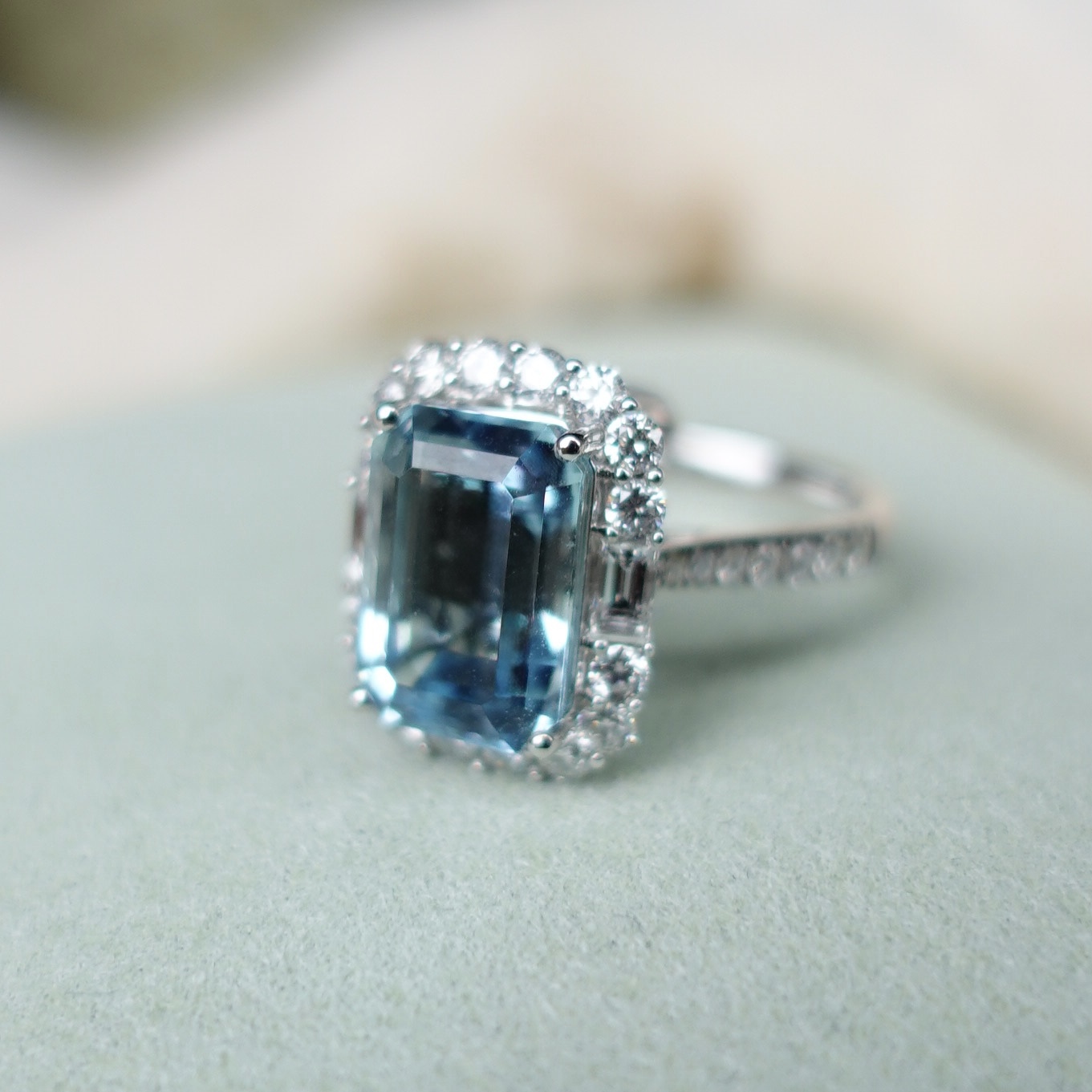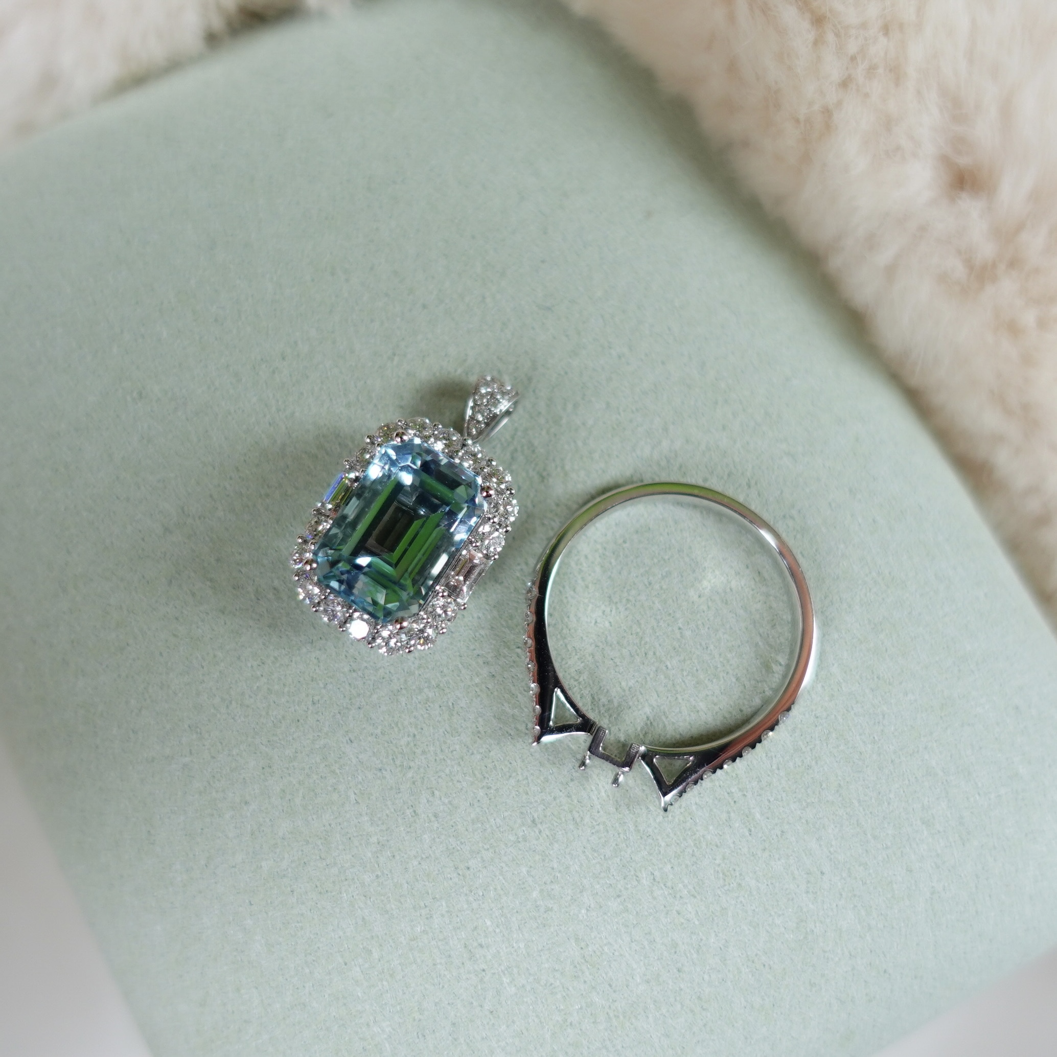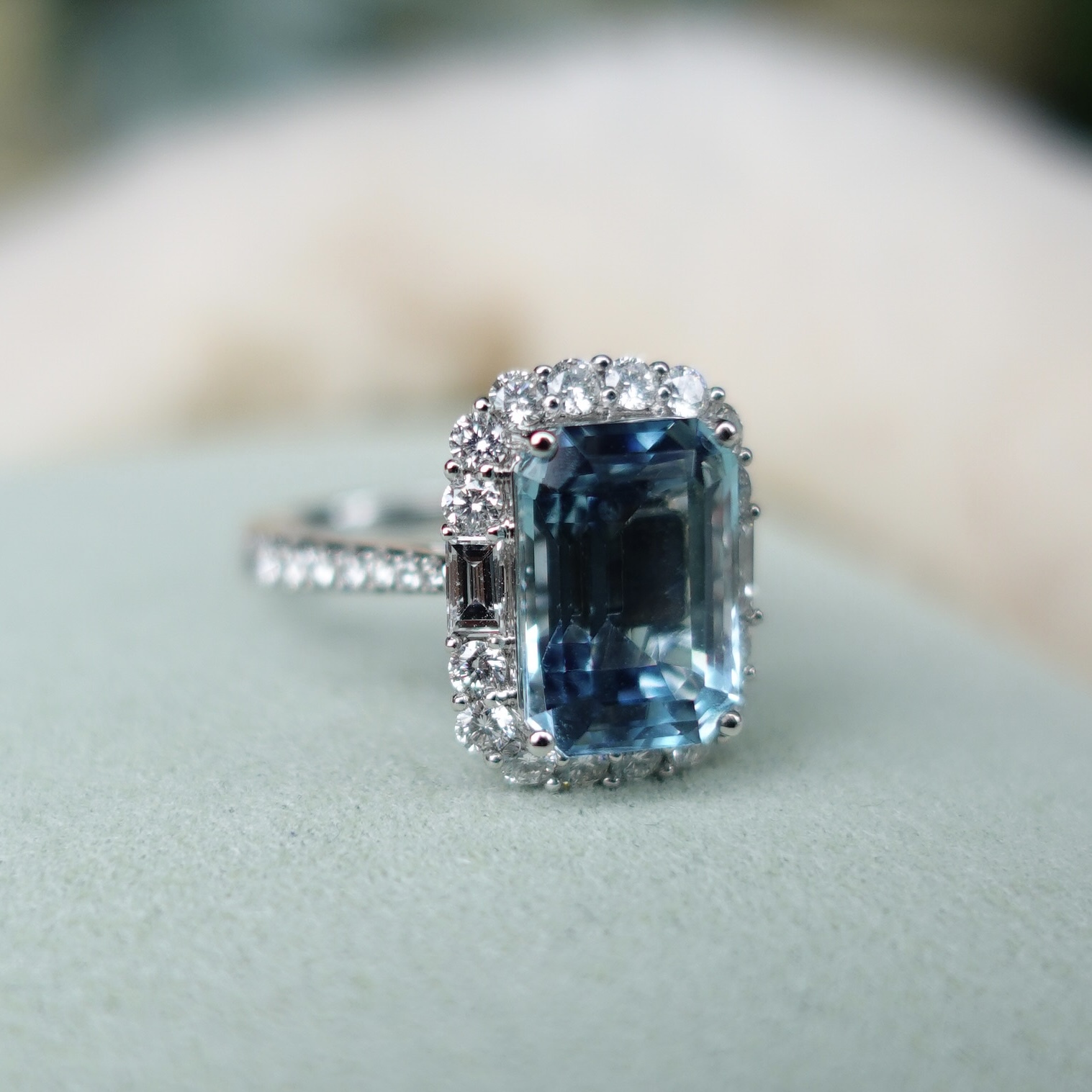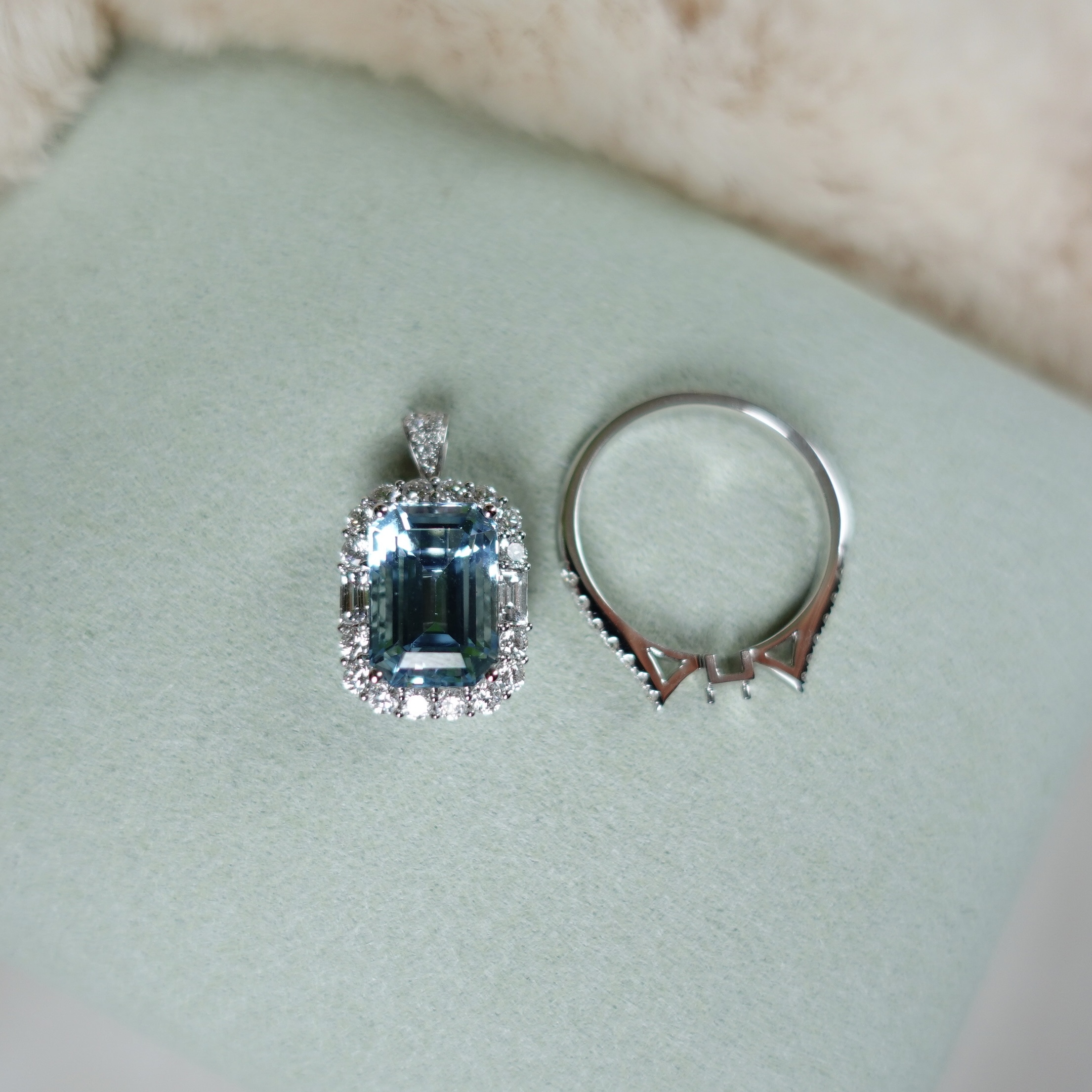 我們甄選的祖母綠切割海藍寶石,每每都能拿到Guild雙認證:「Santa Maria 」+ 「Vibrant Brilliance 」, 同時肯定了寶石的色級以及切工淨度的高標準!