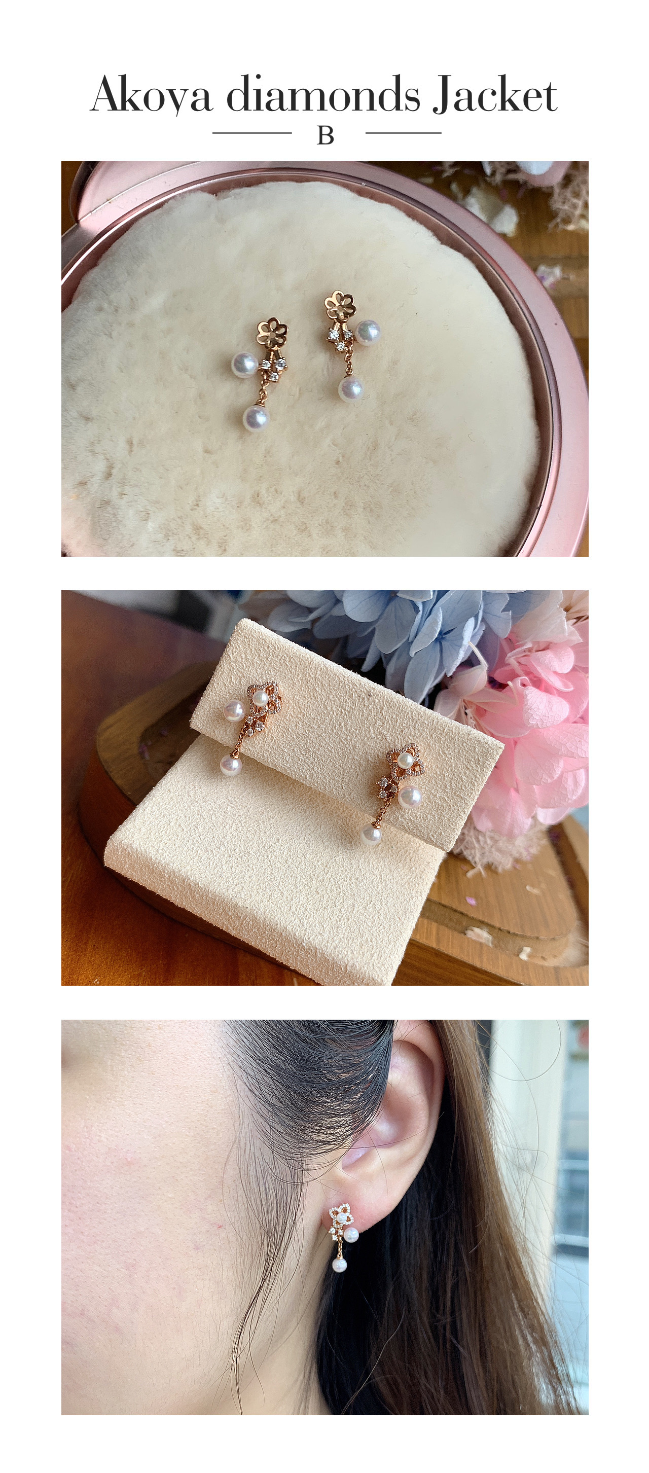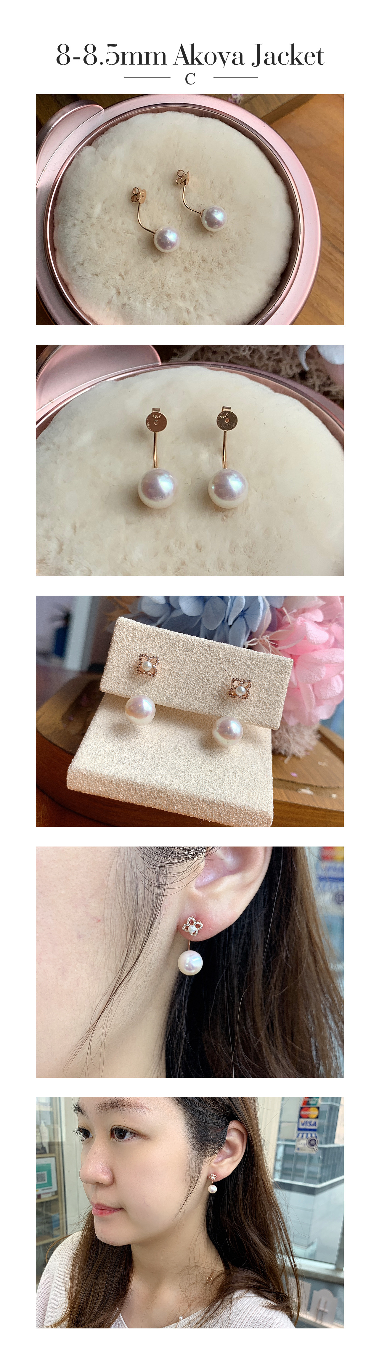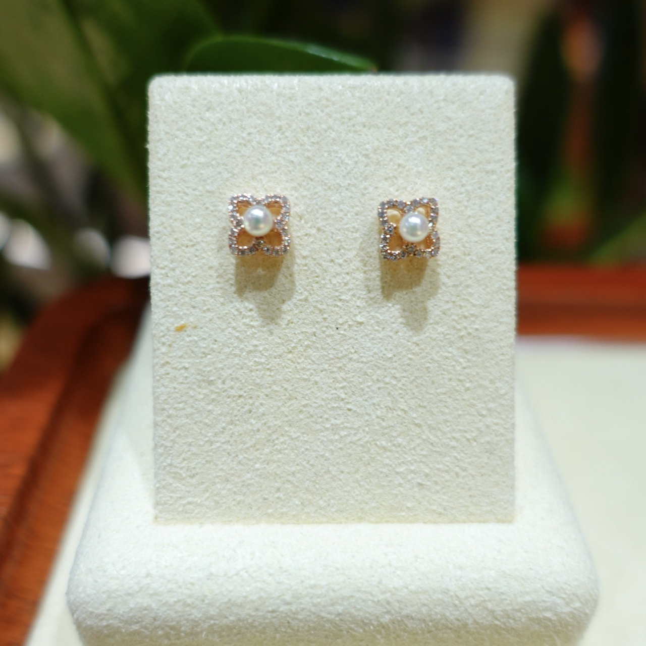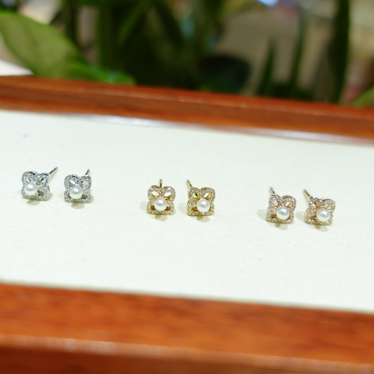 Baby Akoya給人的印象就是清新可愛,光澤強如小燈泡💡,像這種2.5mm的極小baby akoya因為產量少,養殖成本高,市場上非常稀缺!耳釘以小鑽石圍邊組成鏤空四葉草,做工非常精緻,中間鑲上2.5mm的baby akoya,珠光瑩瑩透亮,戴上耳顯得清新甜美。