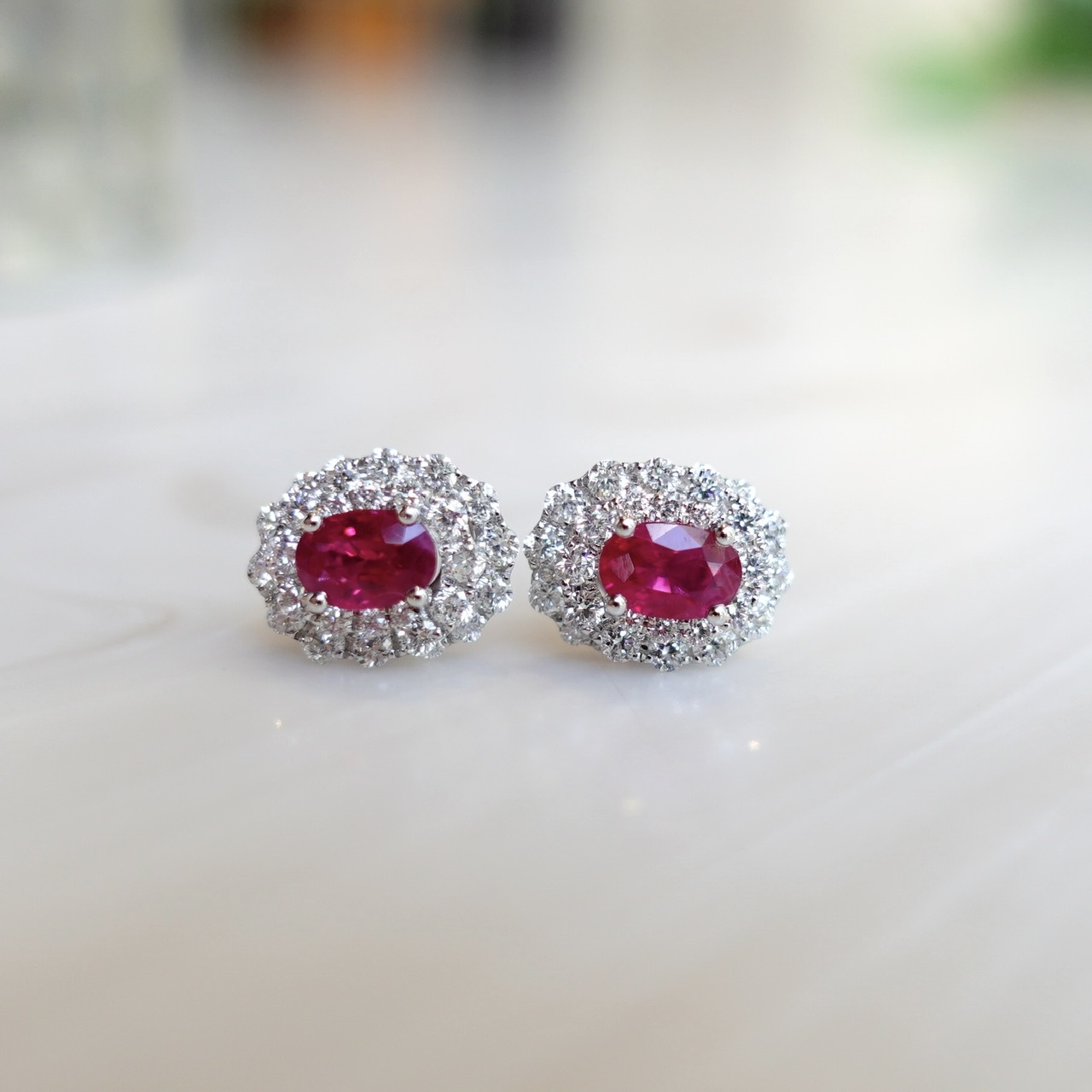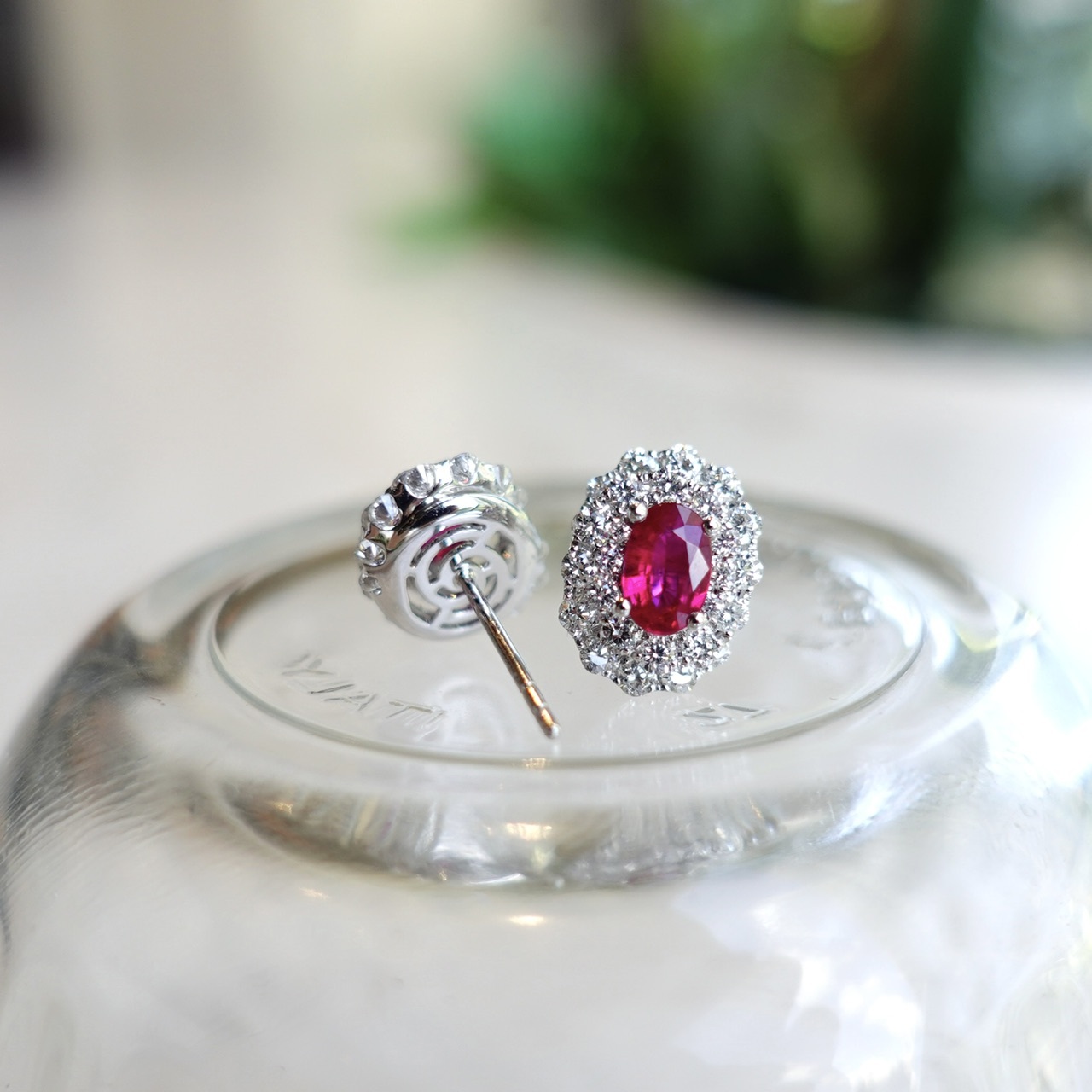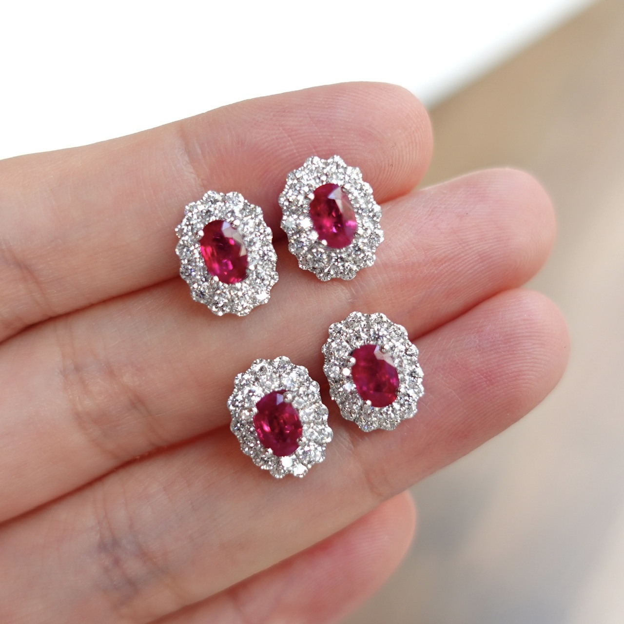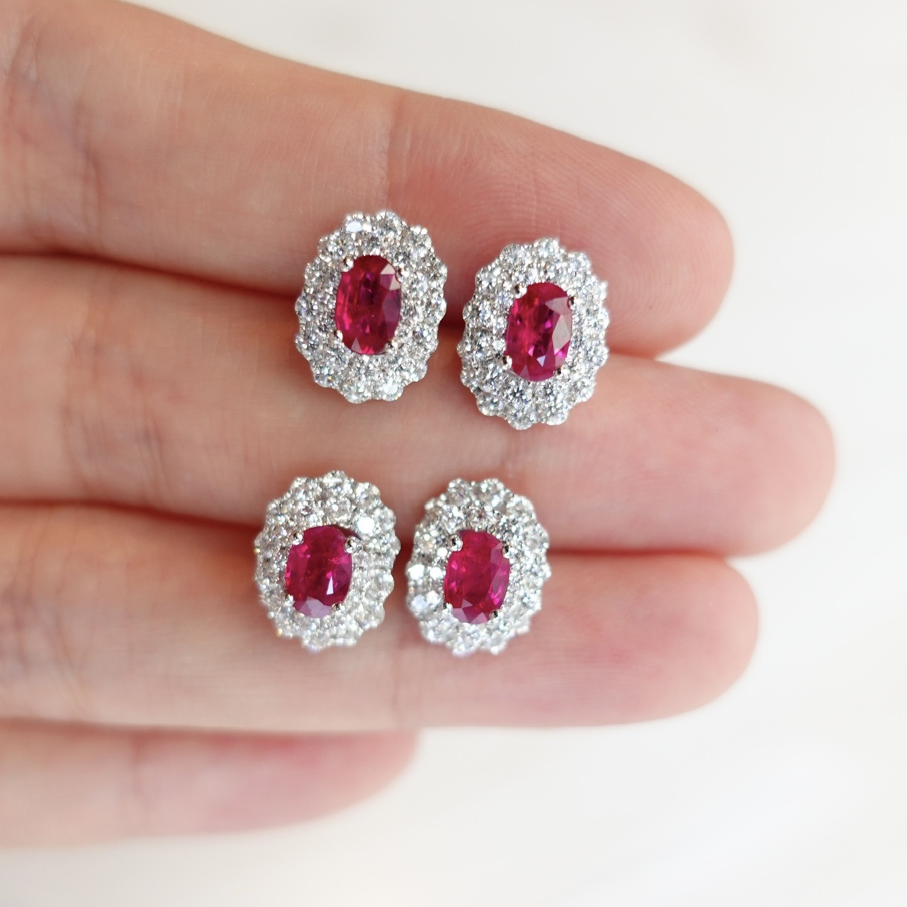 霓虹感超強的鴿血紅紅寶石耳釘