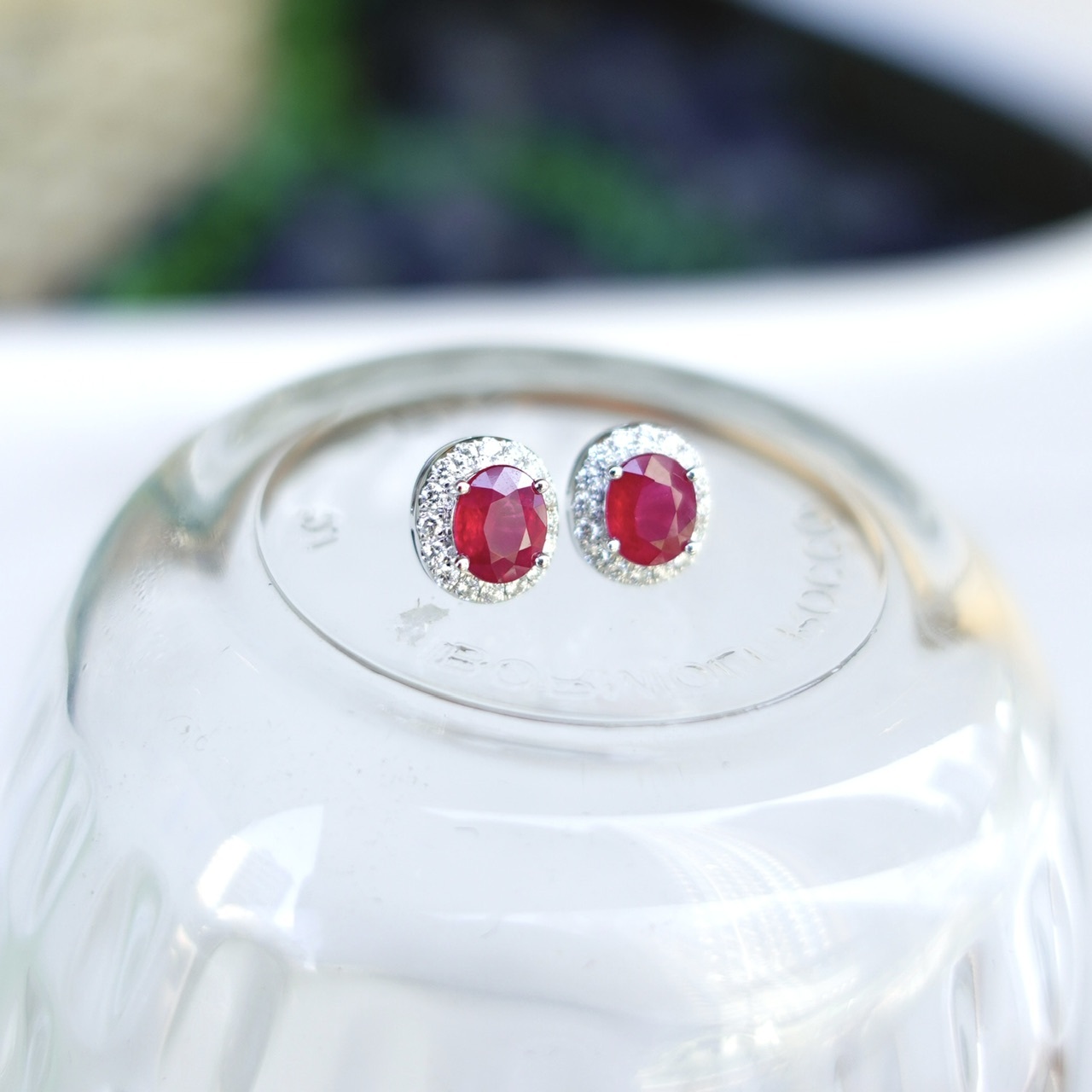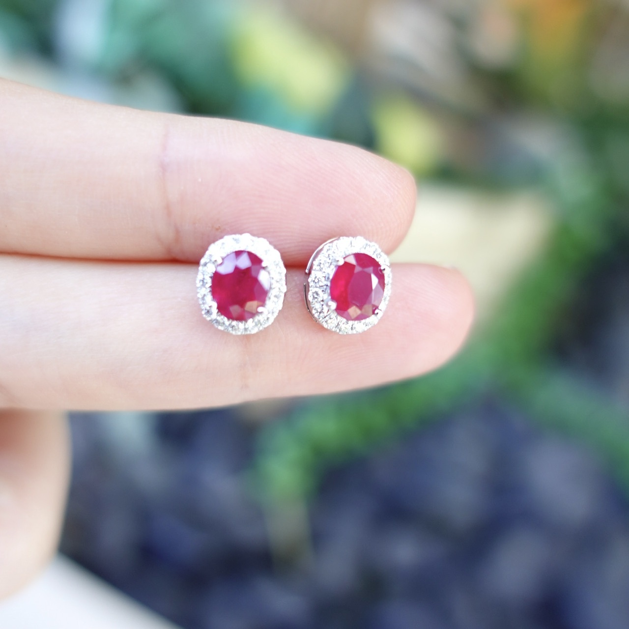 18K金天然緬甸紅寶石鑽石耳釘-橢圓形 (帶寶石證書)
