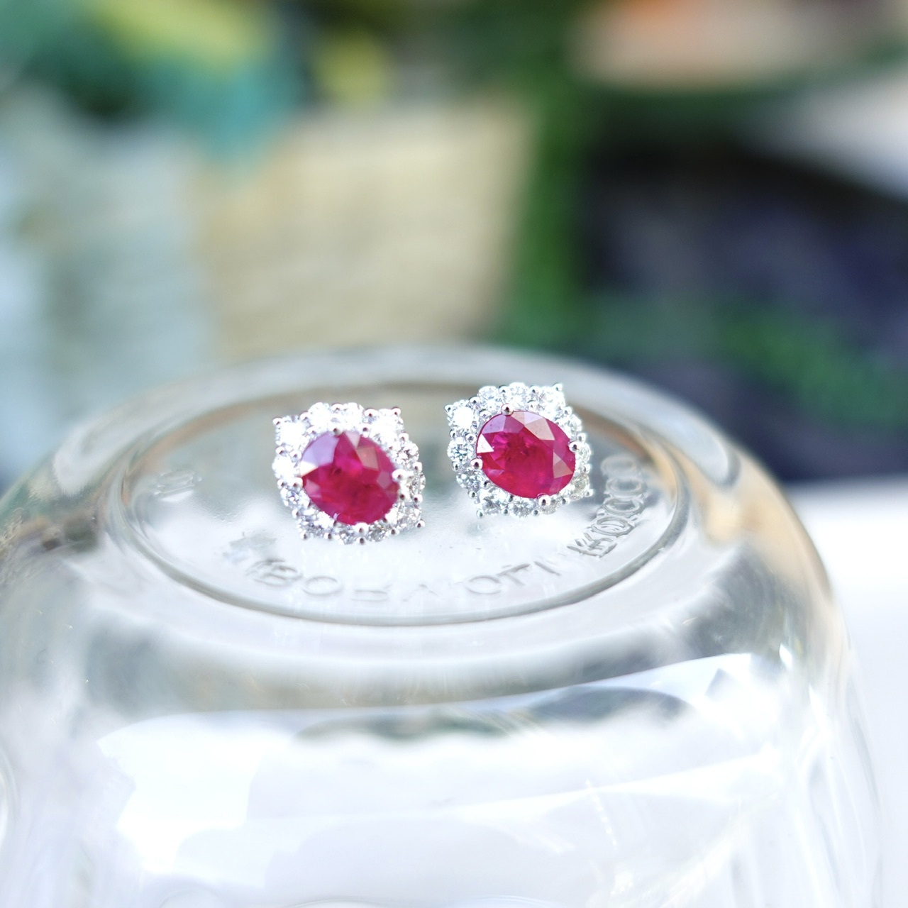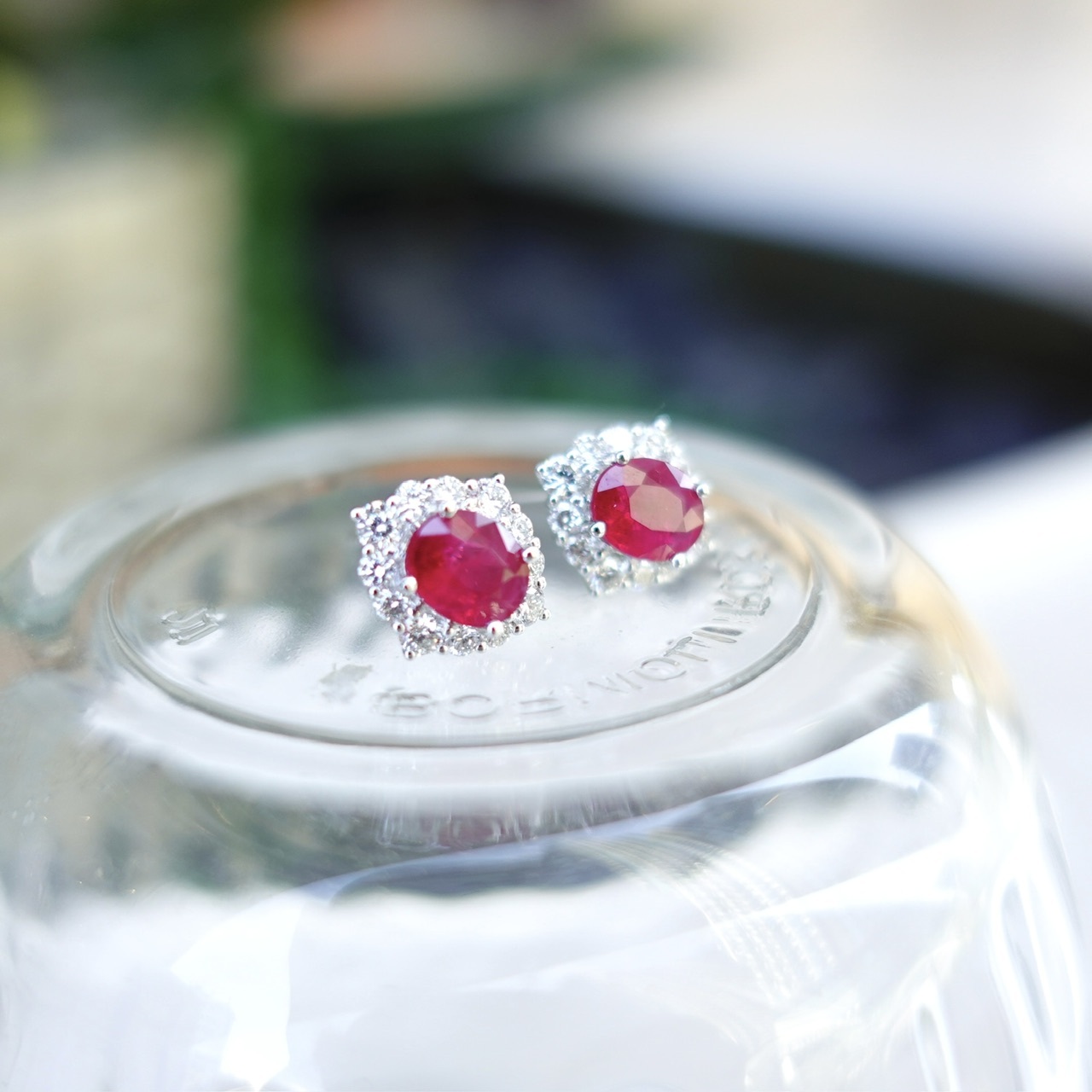 霓虹感超強的鴿血紅紅寶石耳釘