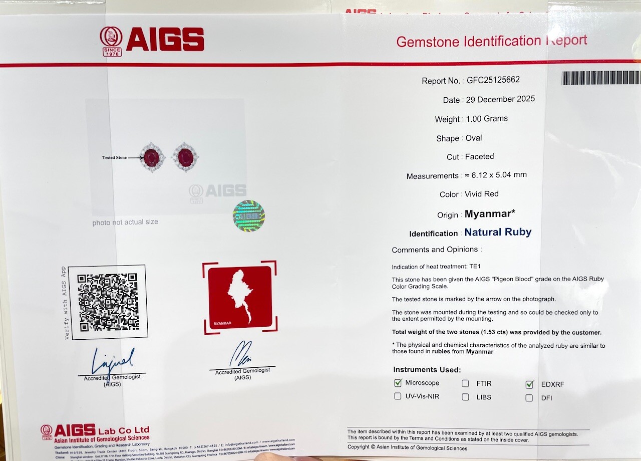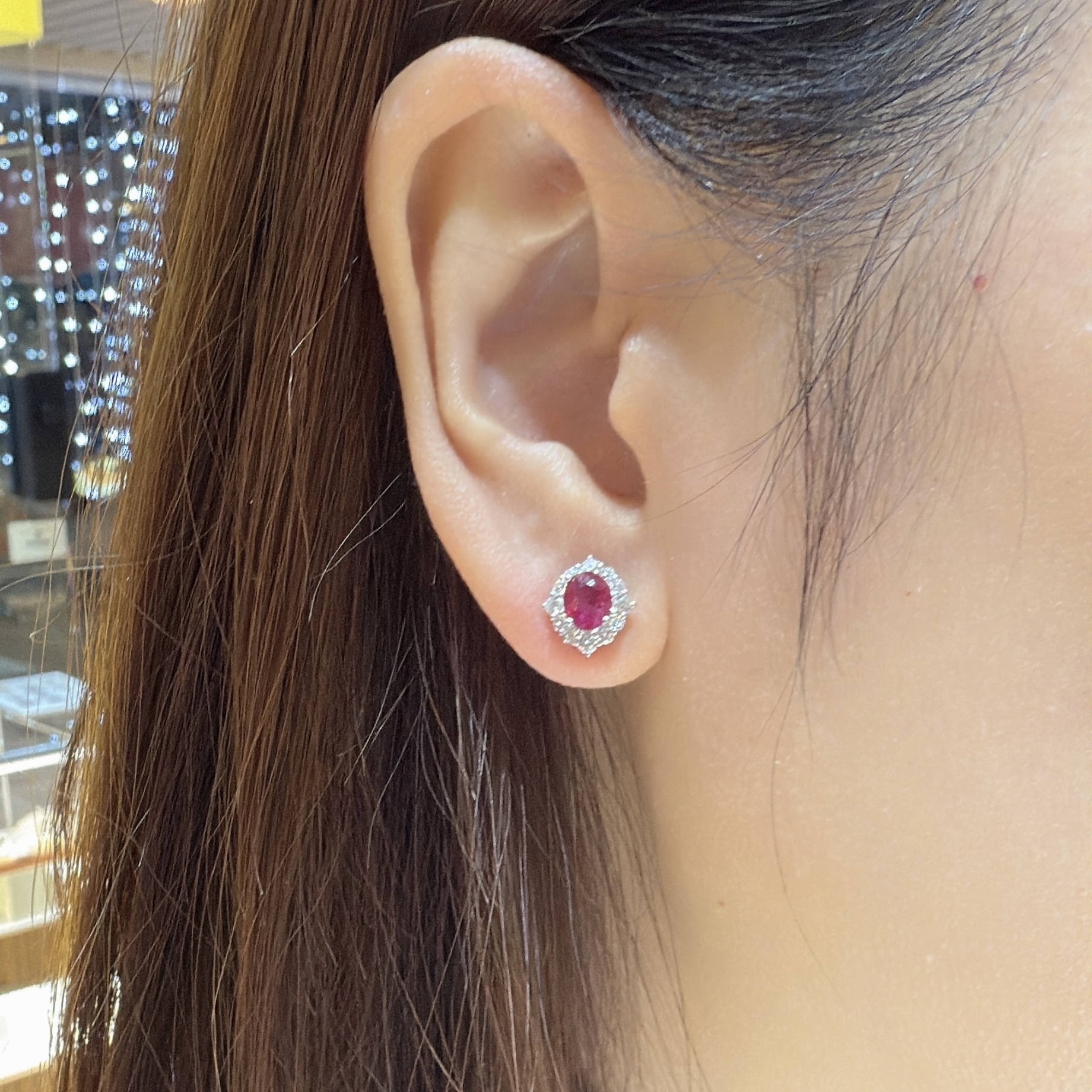 18K金天然緬甸紅寶石鑽石耳釘-橢圓形 (帶寶石證書)