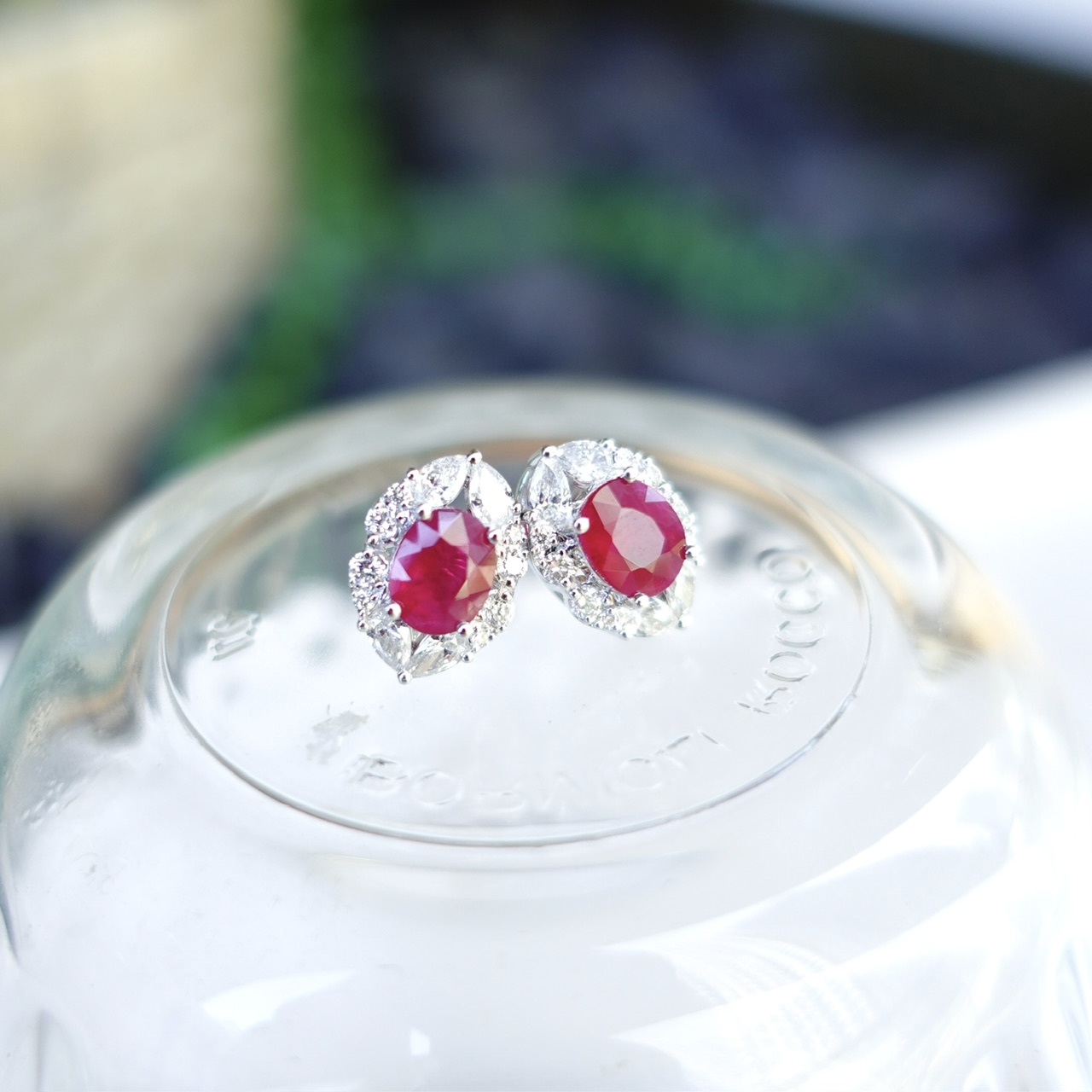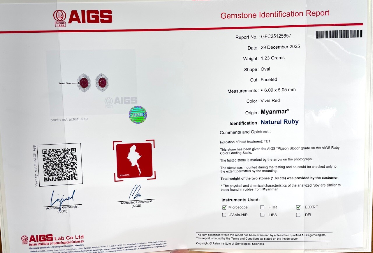 18K金天然緬甸紅寶石鑽石耳釘-橢圓形 (帶寶石證書)