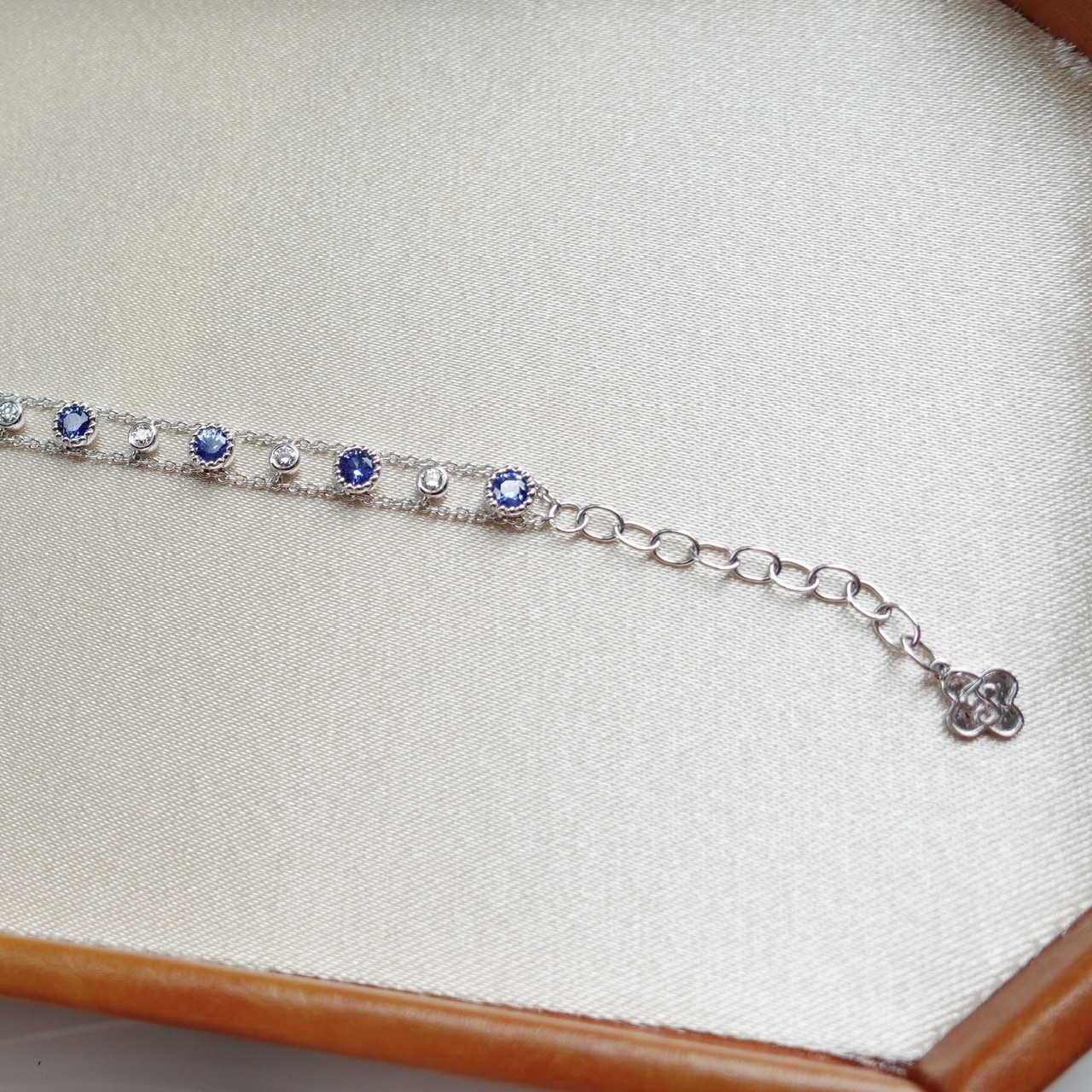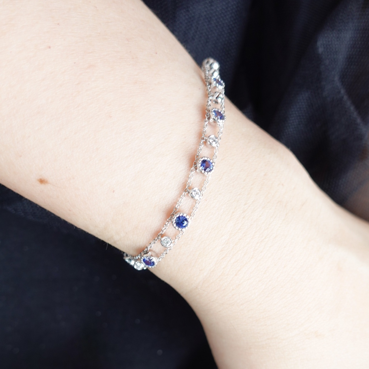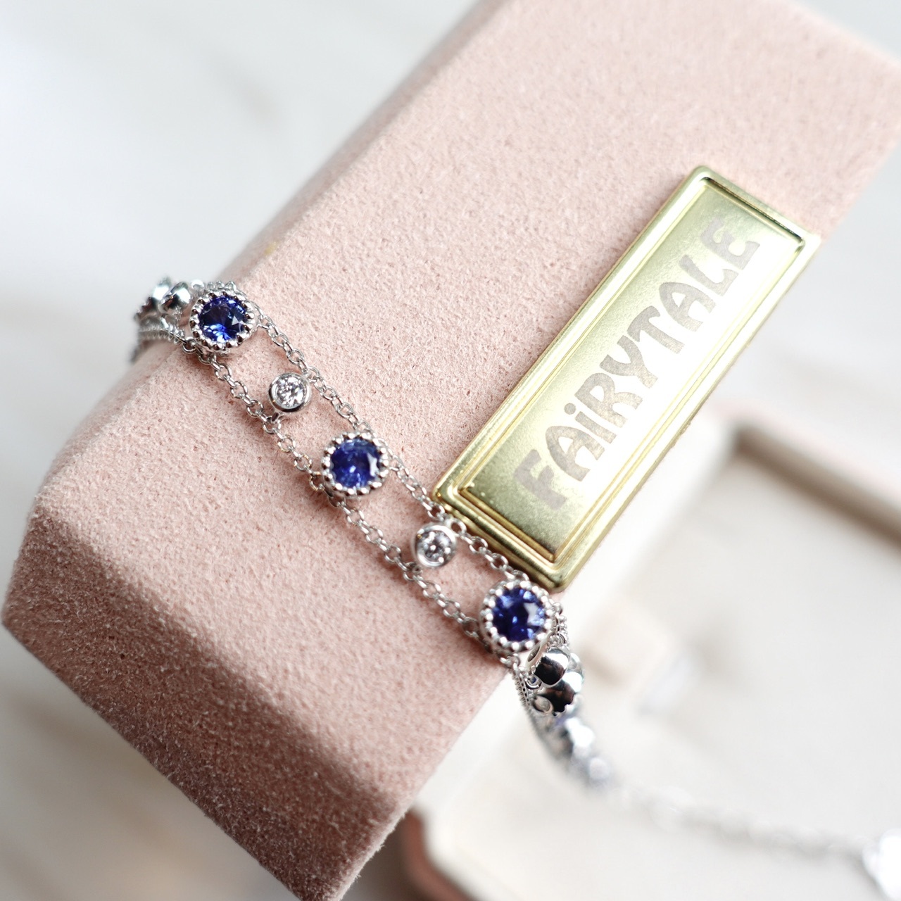 18K金鑲嵌天然藍寶石鑽石手鏈 - 雙層泡泡