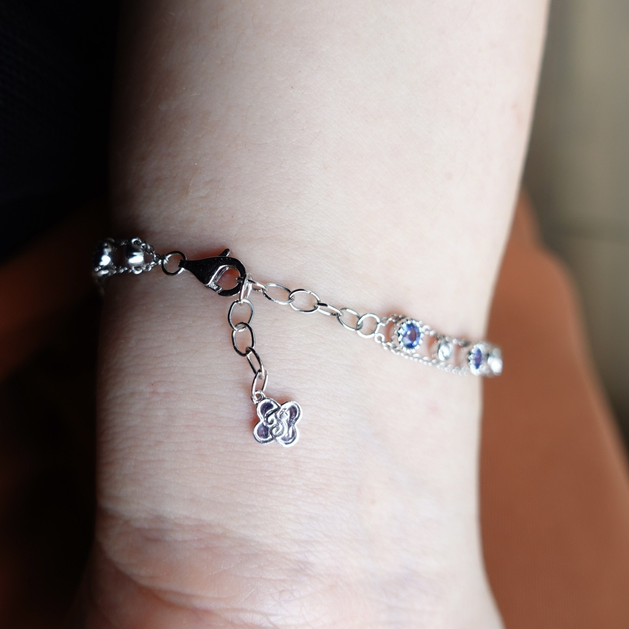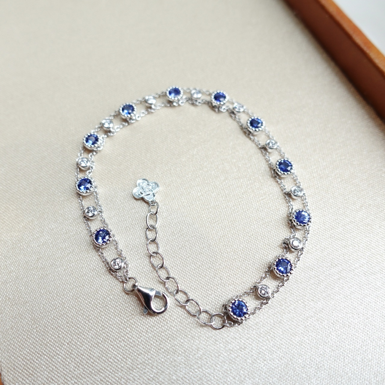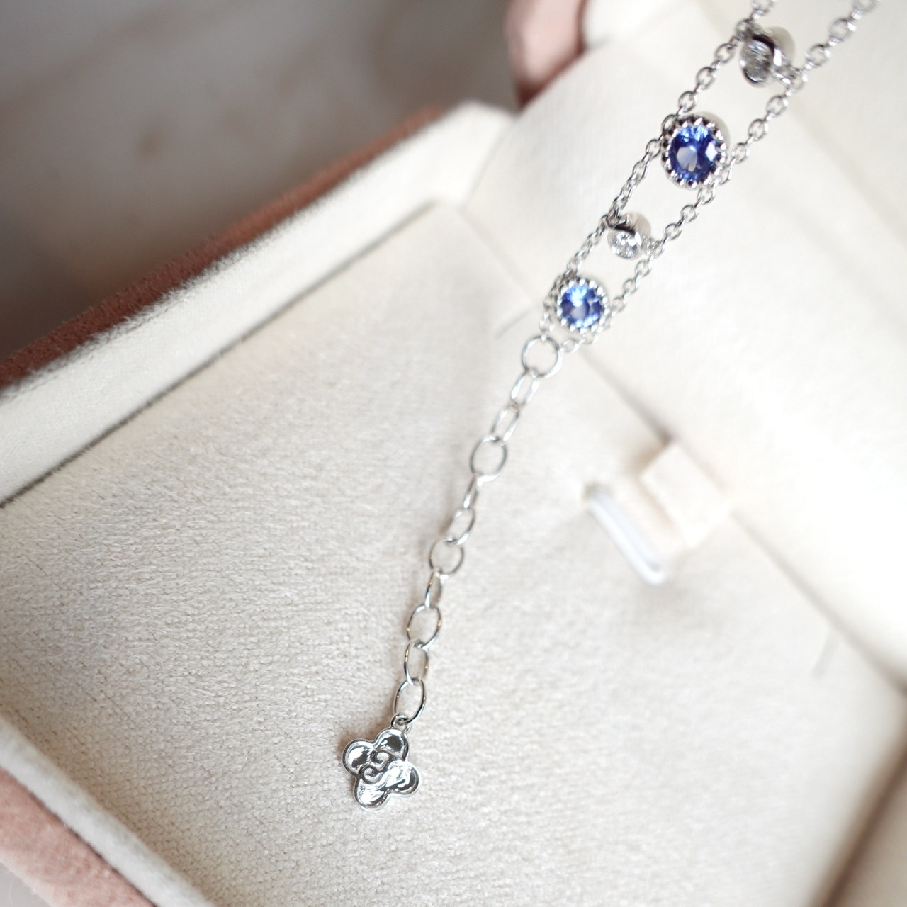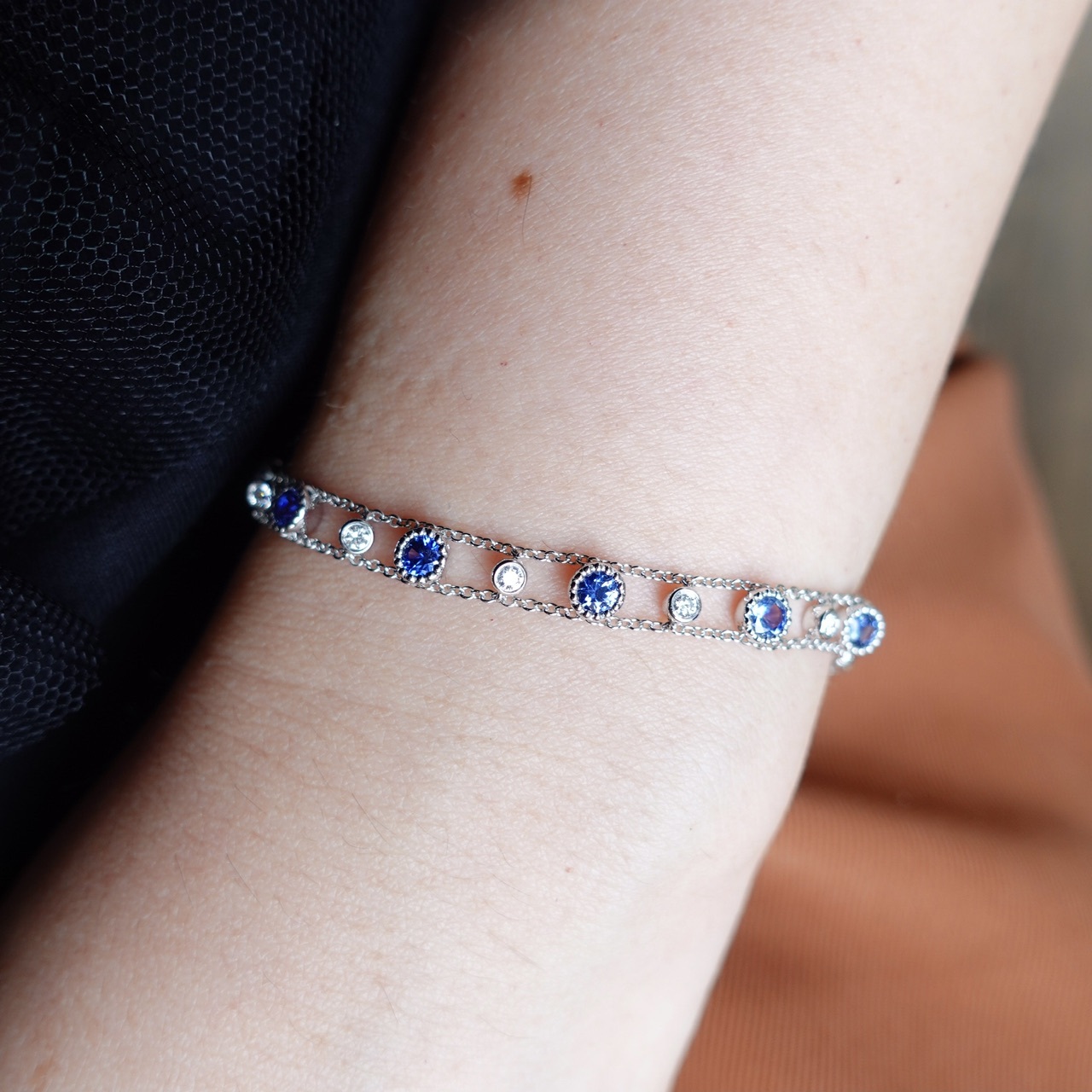 18K金鑲嵌天然藍寶石鑽石手鏈 - 雙層泡泡