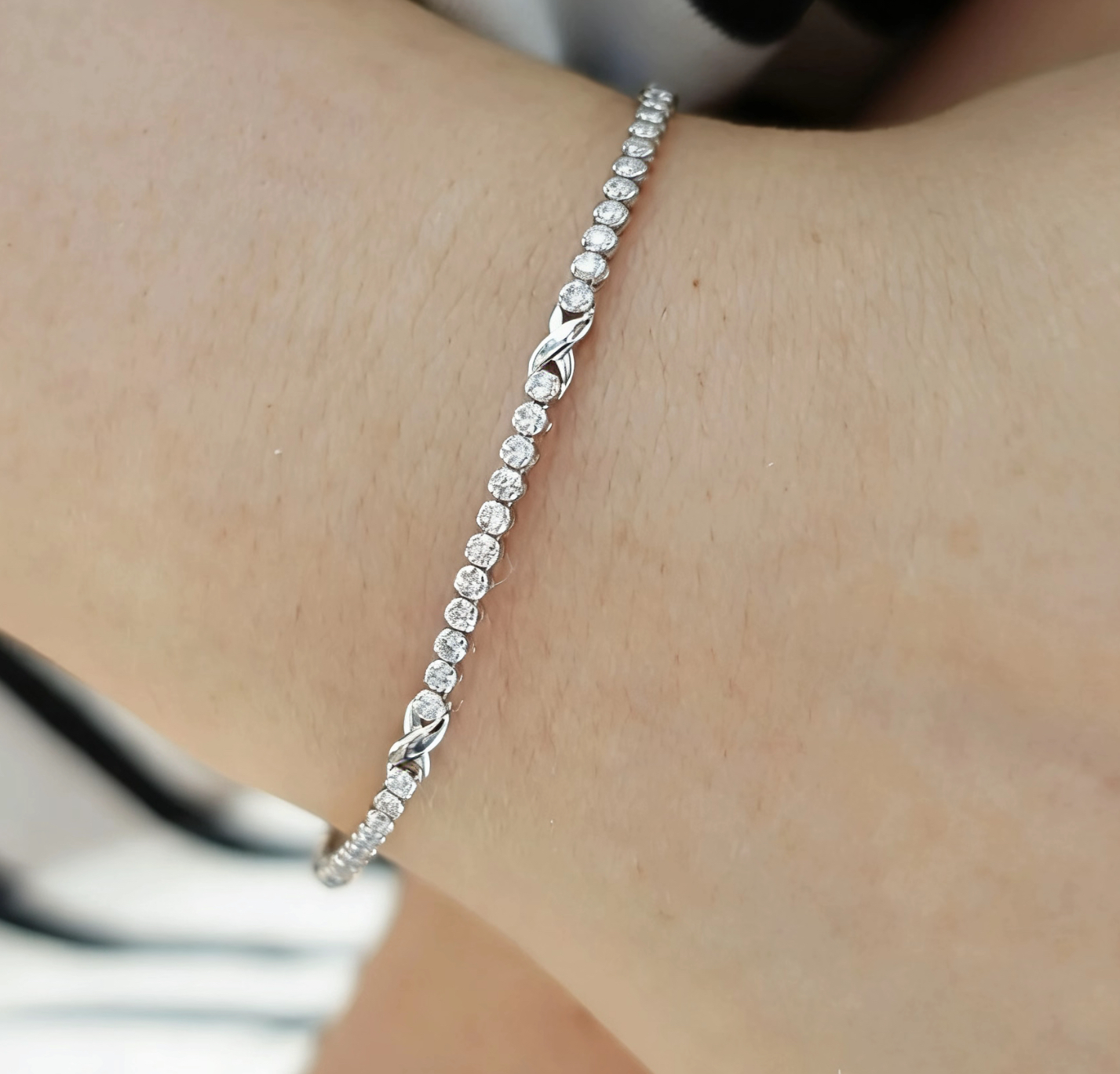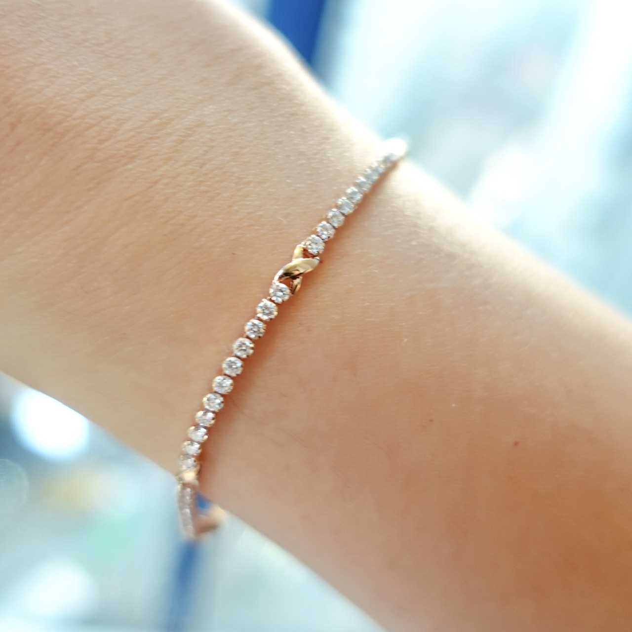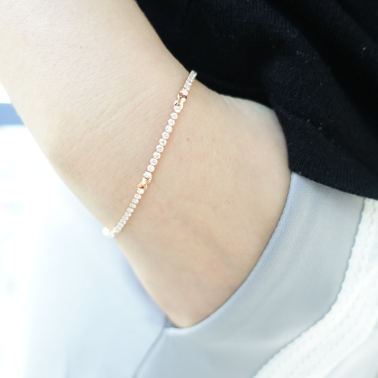 融合了日本輕金鑲托工藝與我們自家的專業配石鑲嵌,有別於傳統的網球手鏈,我們的Paper Chain鑽石手鏈設計幾乎讓鑲爪隱形,只見鑽石璀璨光芒。