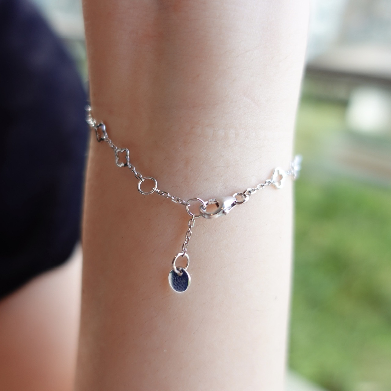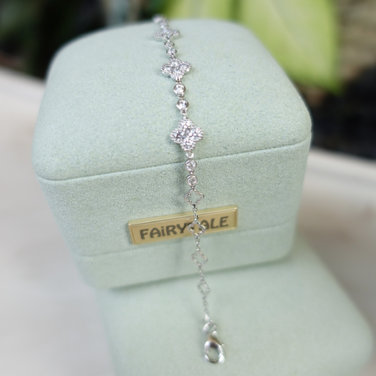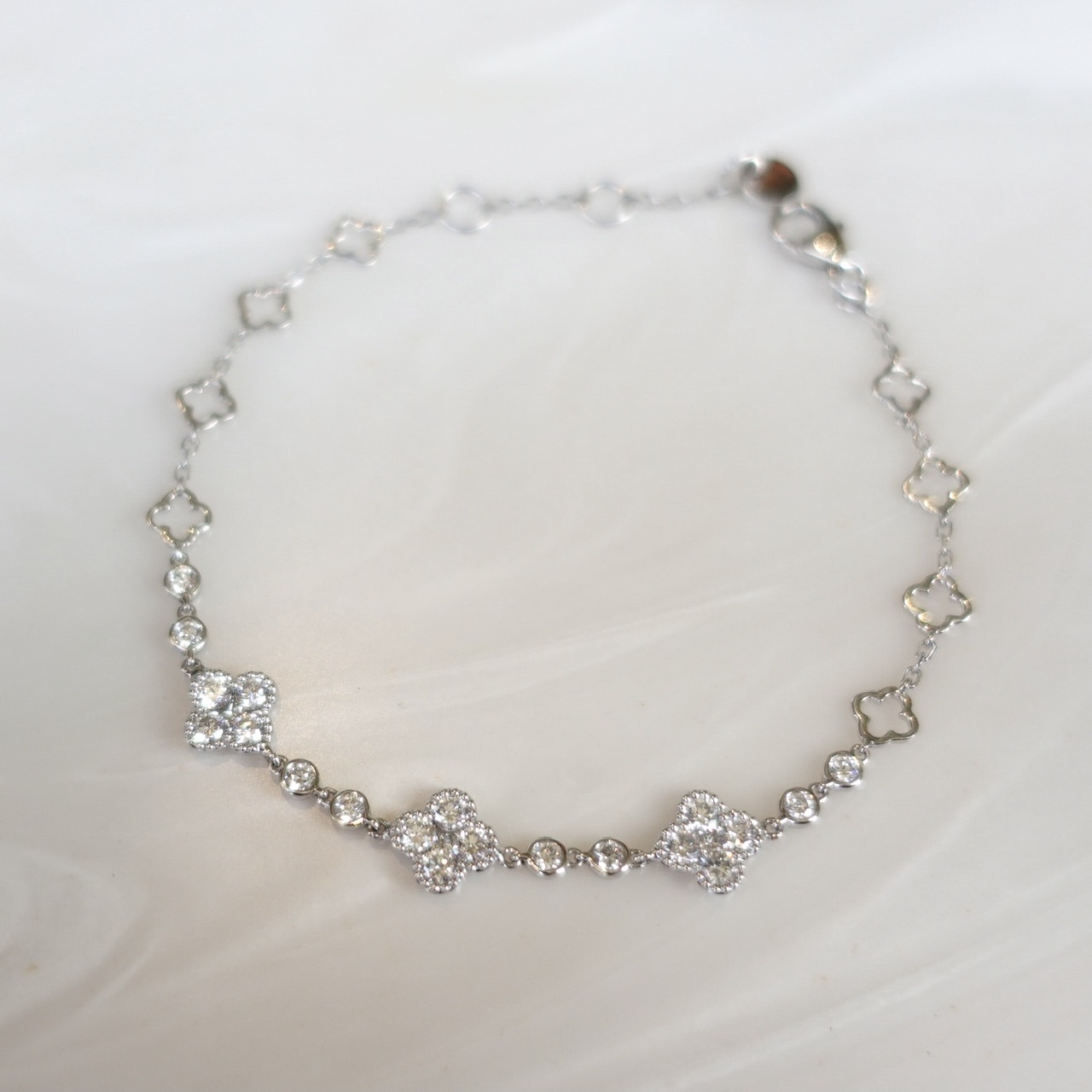 18K金鑲嵌天然鑽石手鏈 - 幸運四葉草