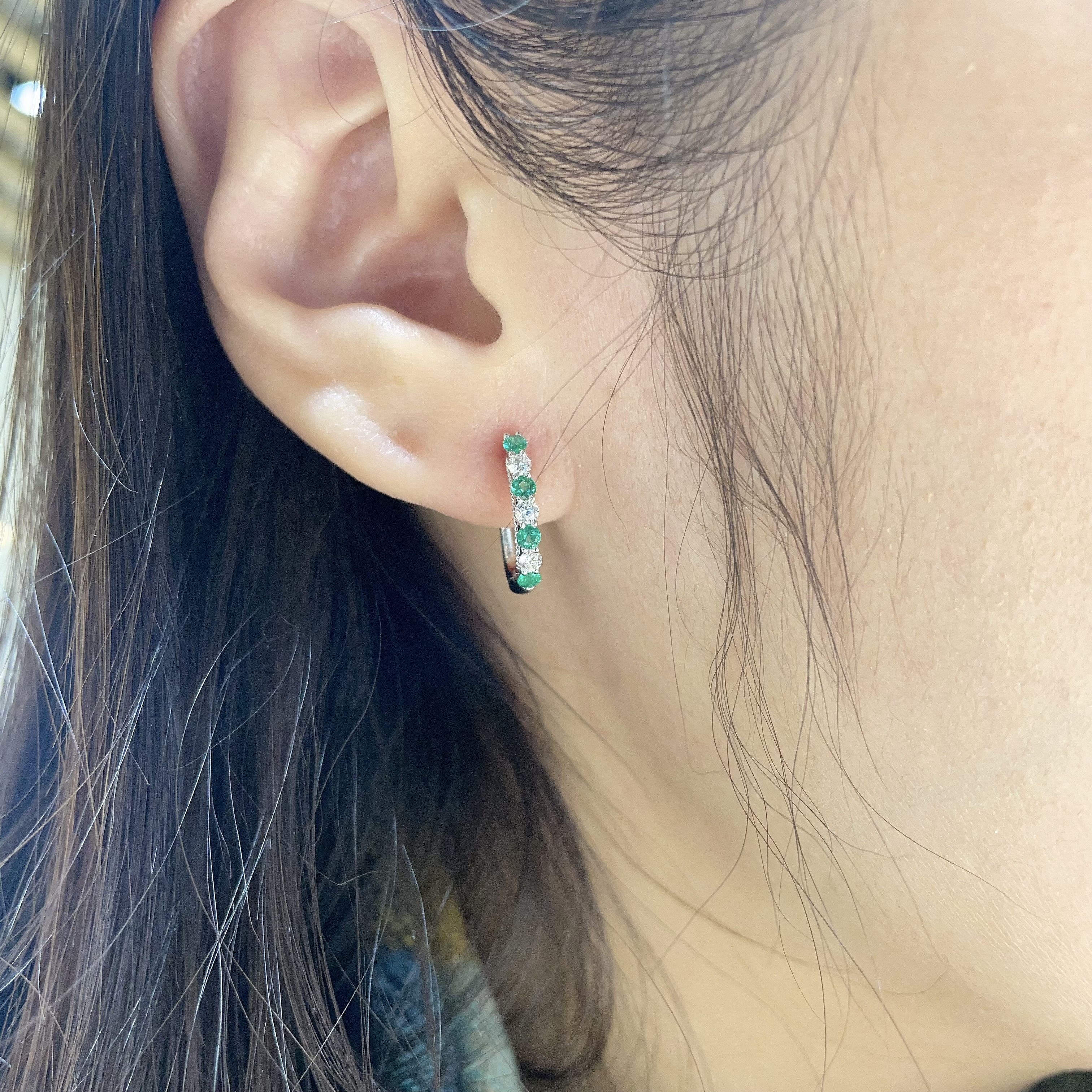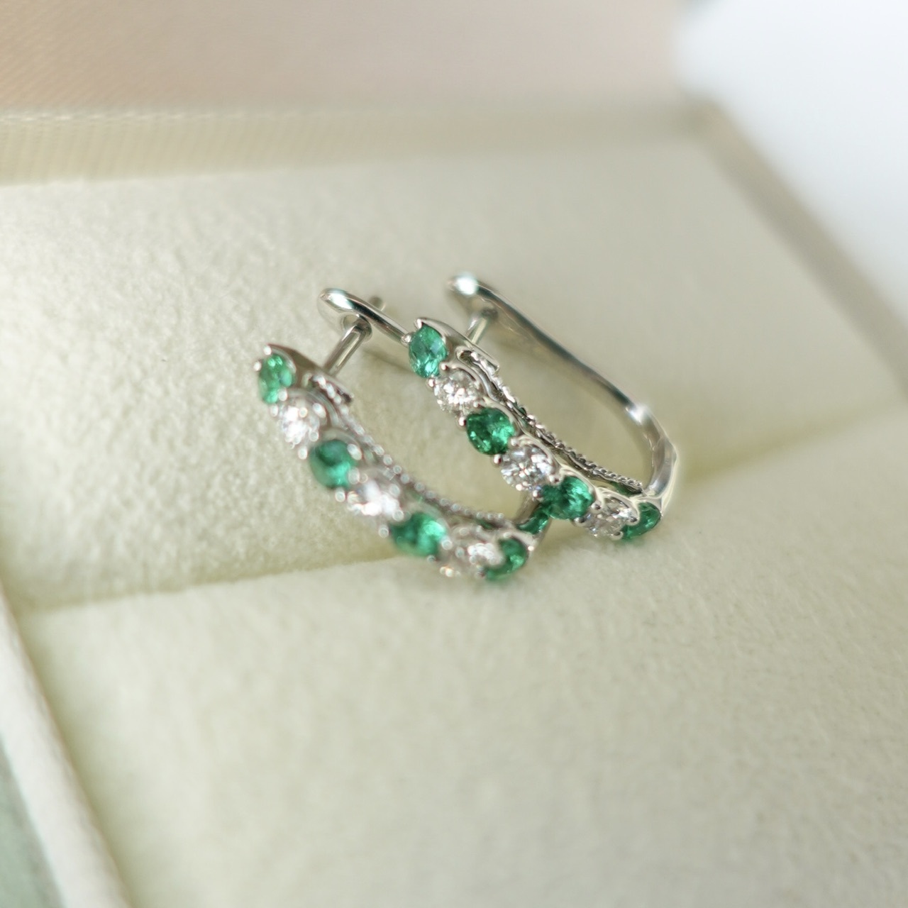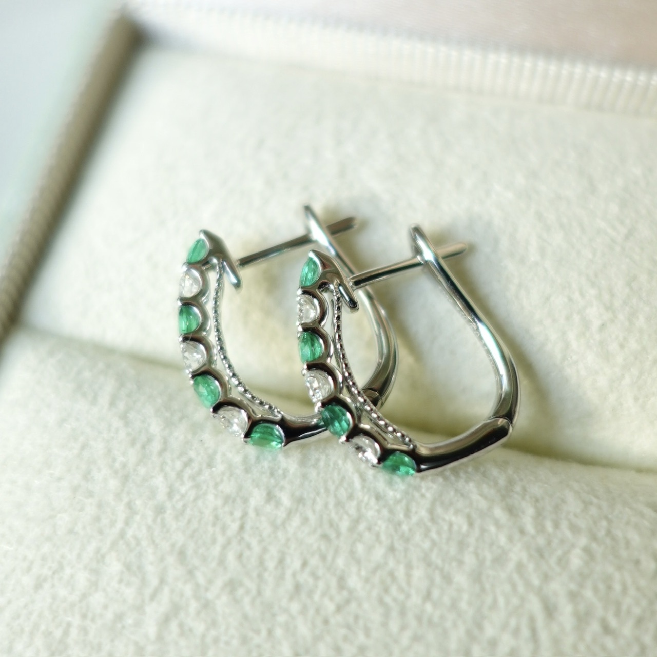 18K金天然祖母綠鑽石耳圈