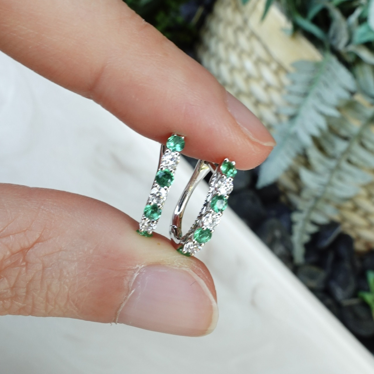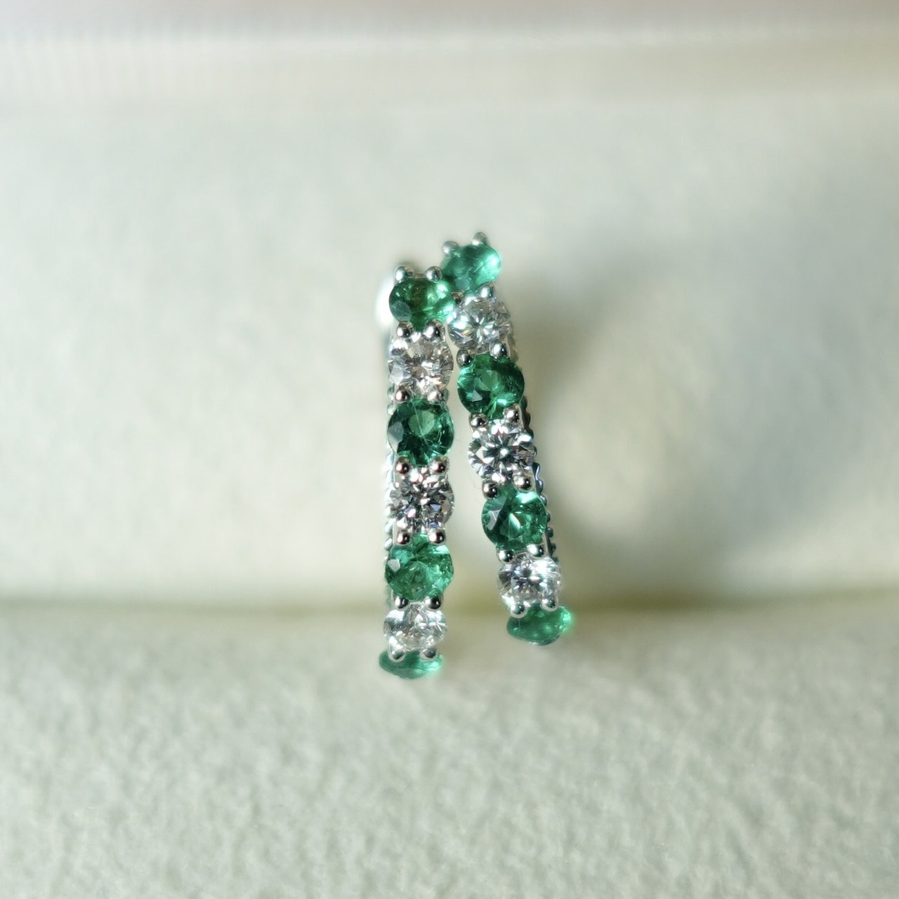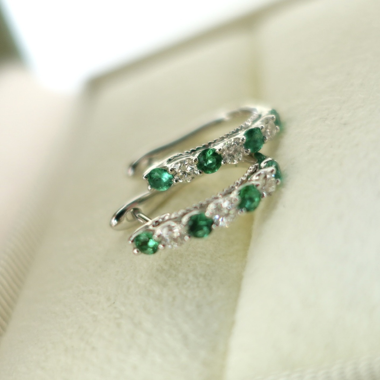 18K金天然祖母綠鑽石耳圈