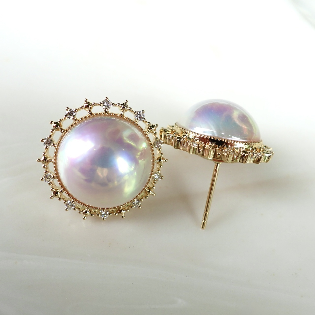 美麗的馬貝珠只出產於日本的奄美島,由於養殖期長、產量少。馬貝珍珠是半邊珍珠,也稱Mabe珠、饅頭珠和半圓珠,是培育出來的海水養殖珍珠,一般在採集完已養殖好的企鵝貝後,將預製的半邊形的珠核插入貝殼的內壁,使凸面朝向珠母貝的套膜,平面貼緊珠母的殼壁,插好後再放入水中餵養,日積月累,珍珠層將外珠核一層一層地包起來形成半圓形。
