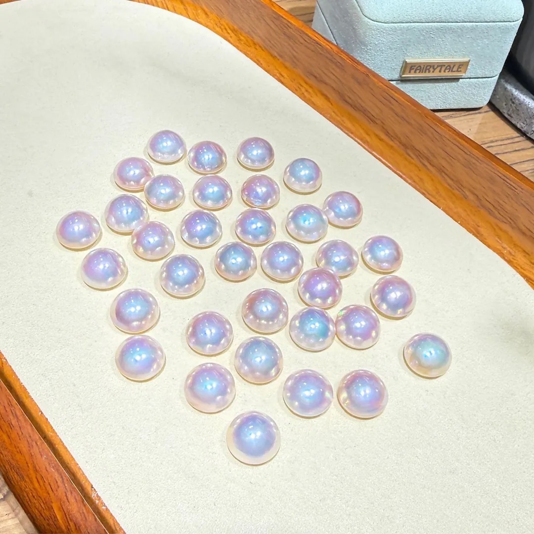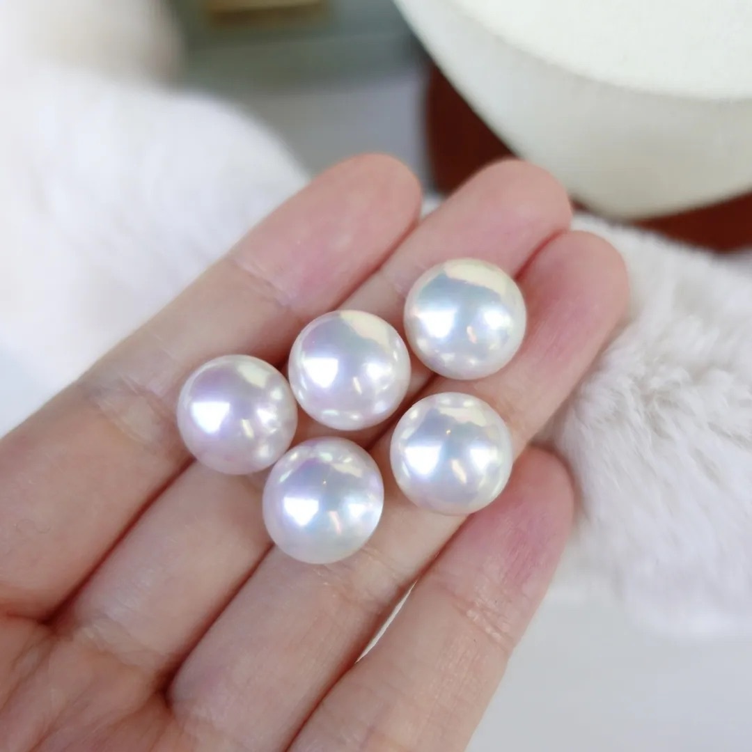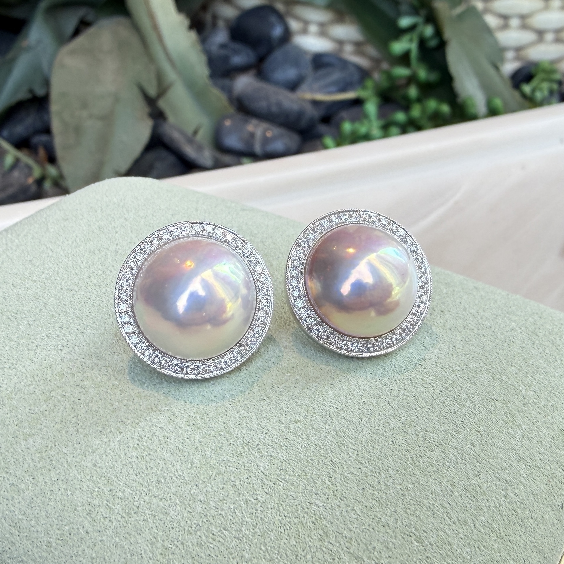 18K金日本稀有極光炫彩白色馬貝珠鑽石耳環