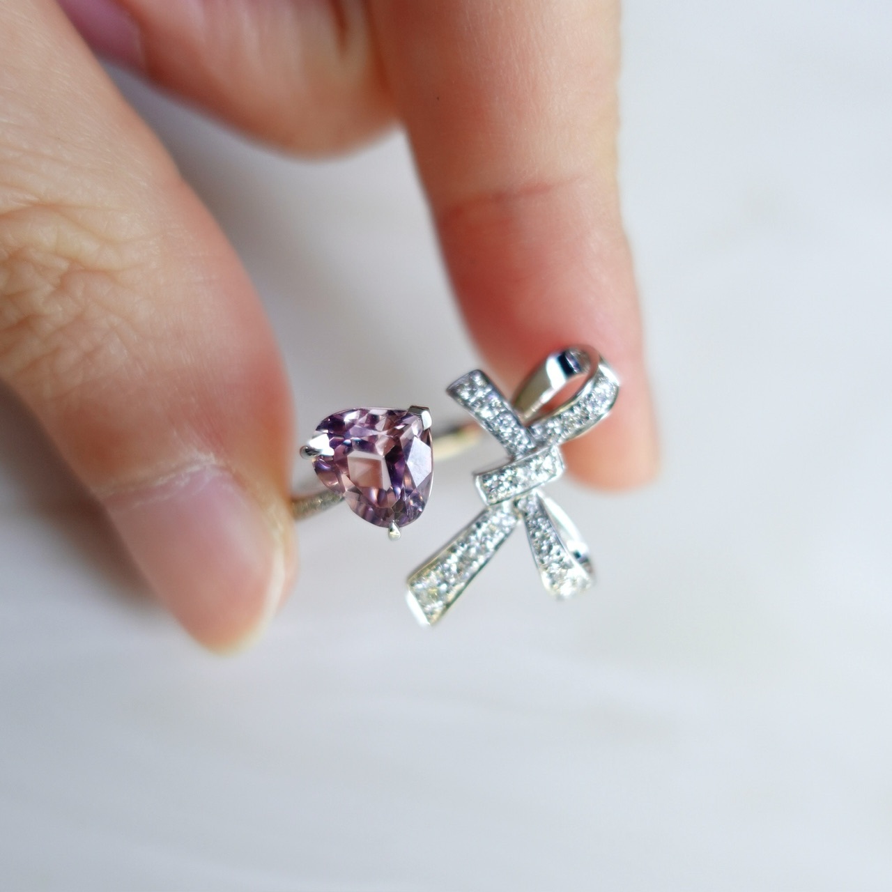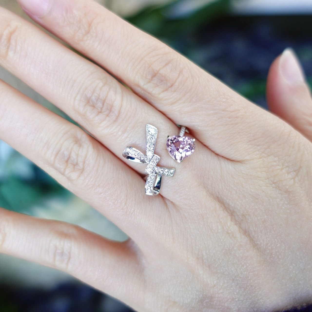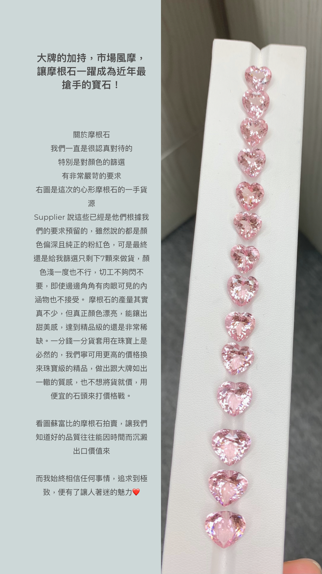 這款心形摩根戒指詢問度一直很高,每顆主石接近3卡,我們精心挑選的摩根石除了顏色夠粉紅(行內稱為Tiffany Pink),肉眼全淨以外,我們特別看重寶石的切工,好切割能更完美的展示寶石的顏色和火彩,擁有超多的切割面,任何角度觀看都火彩璀璨,💎配上最歷久不衰的盤鑽款式,套上指間嬌嫩而顯手白,美的無可挑剔!✨ 每個女人心入面都有顆少女心,對於摩根石淡雅的粉紅色總是無法抗拒。💕