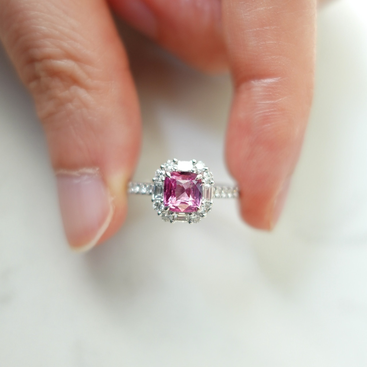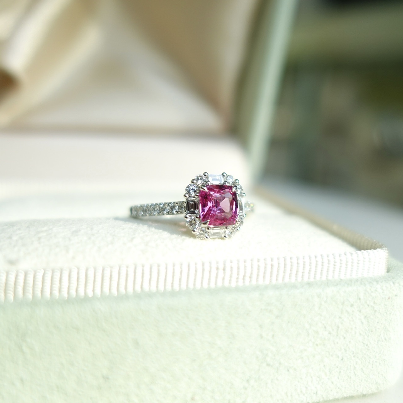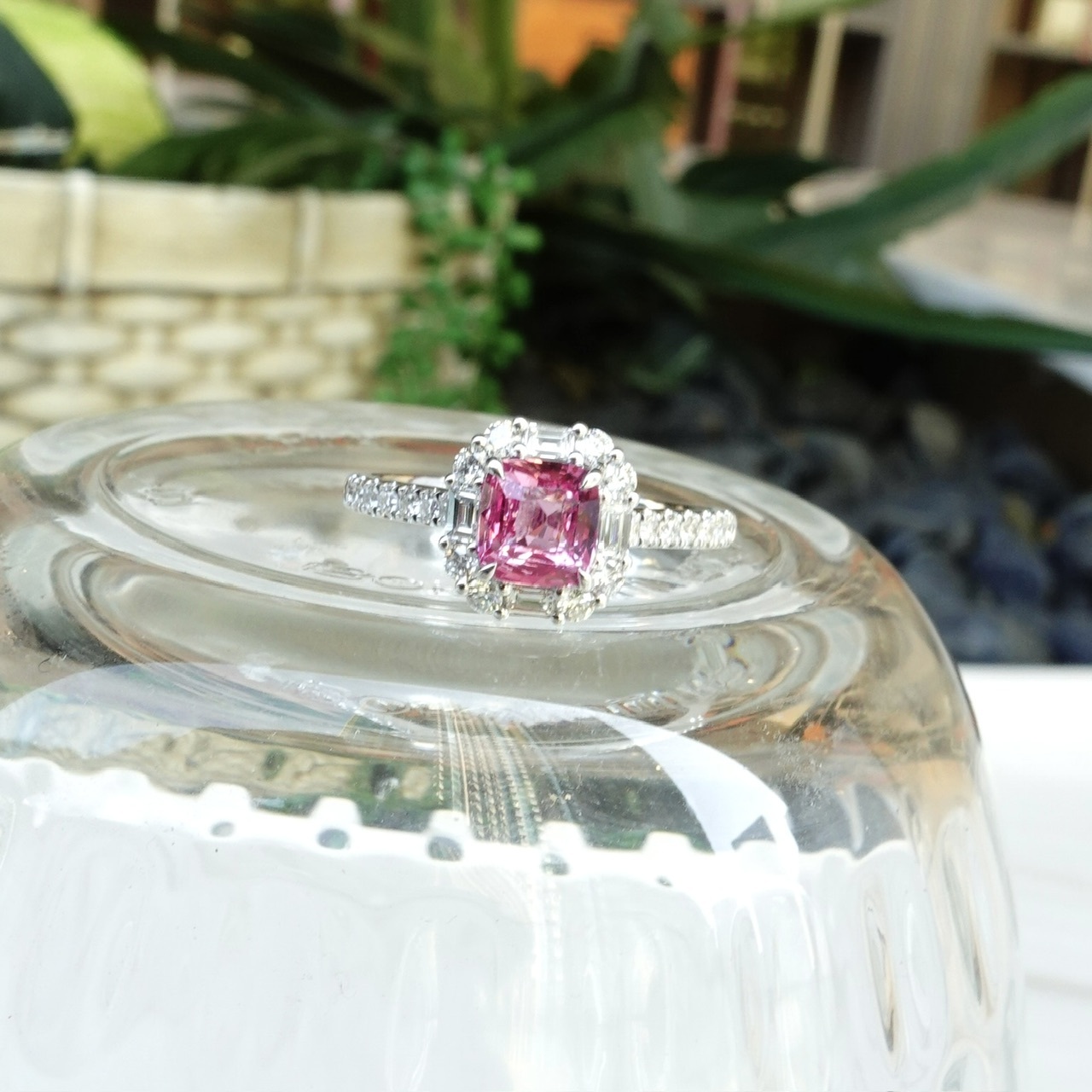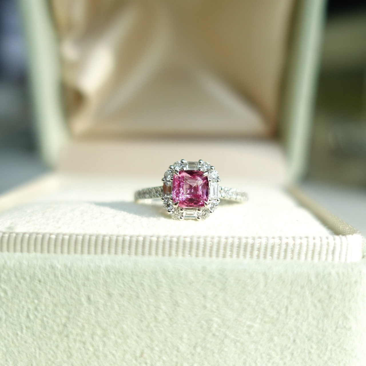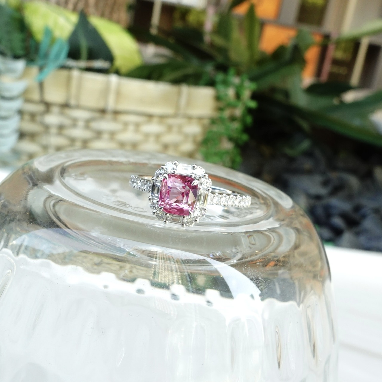 1ct無燒枕形切Padparadscha 18K金戒指-日出色 (帶寶石證書)