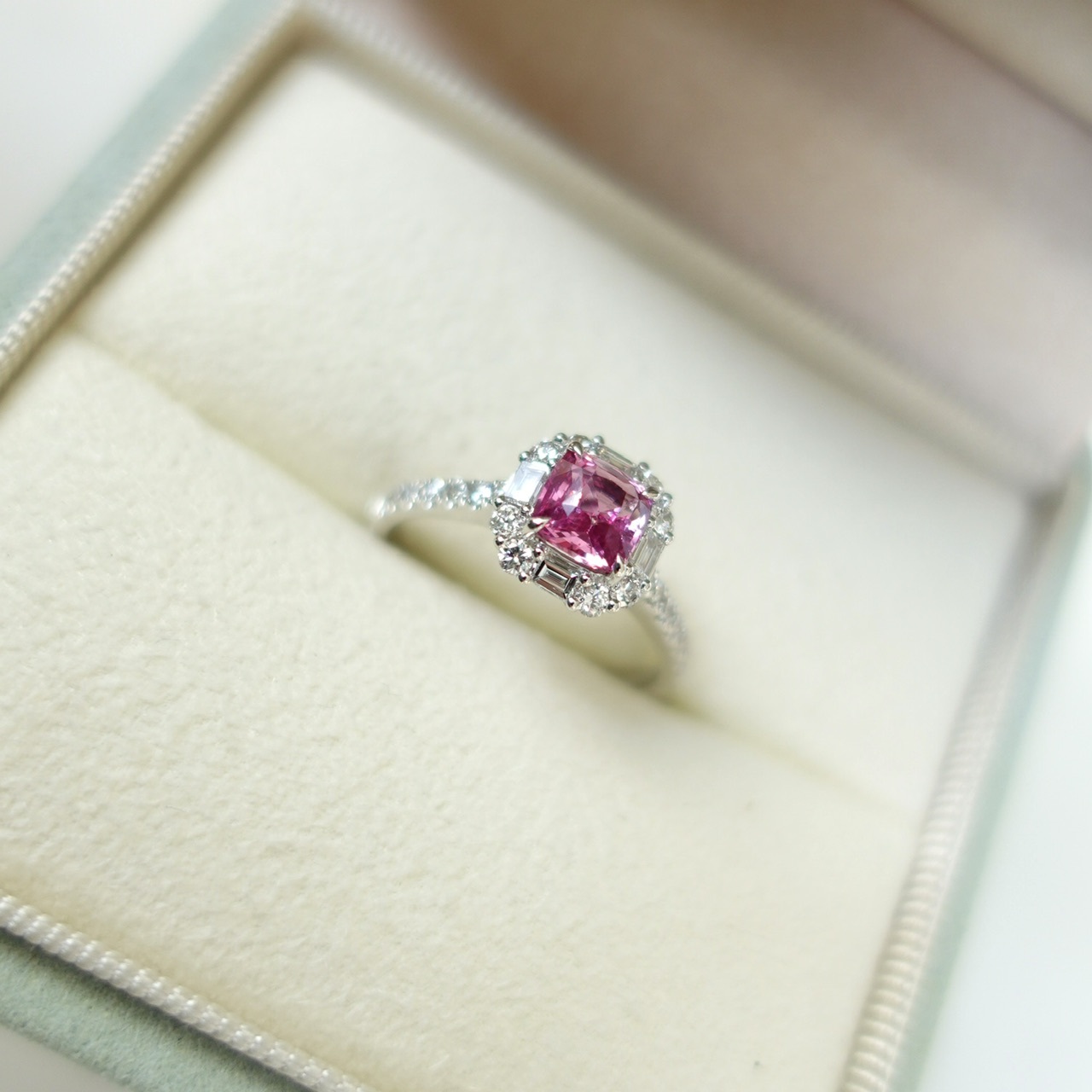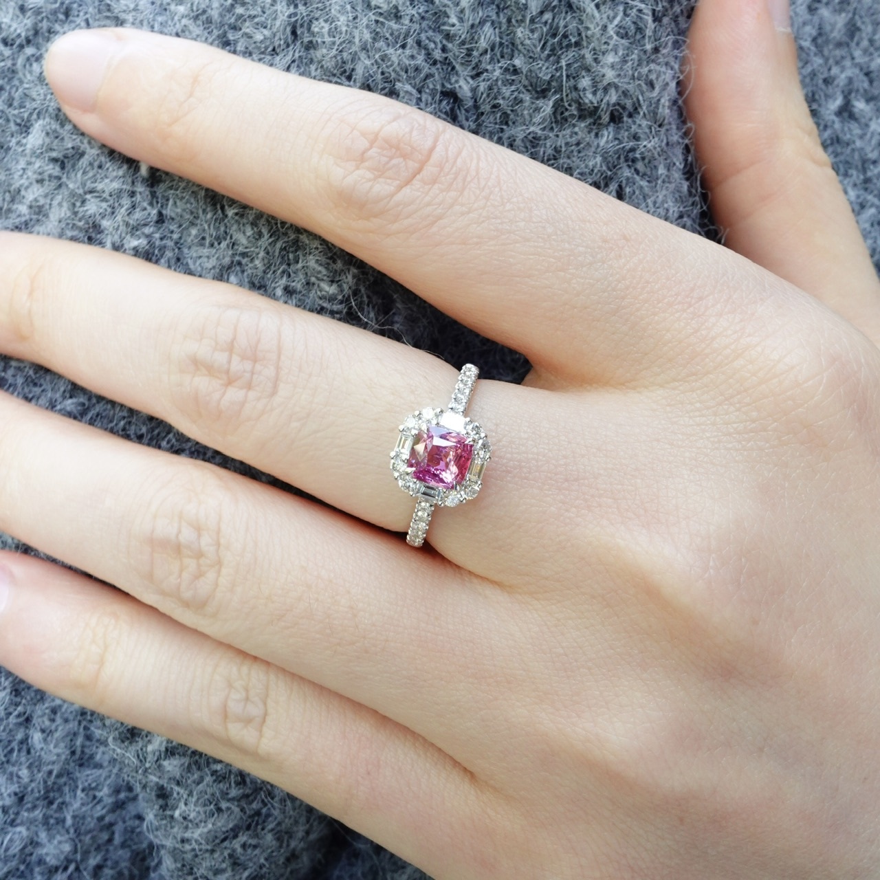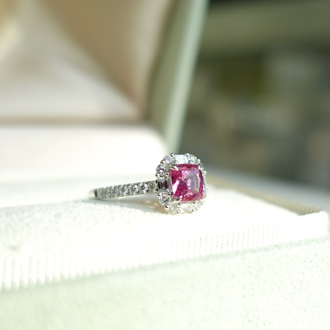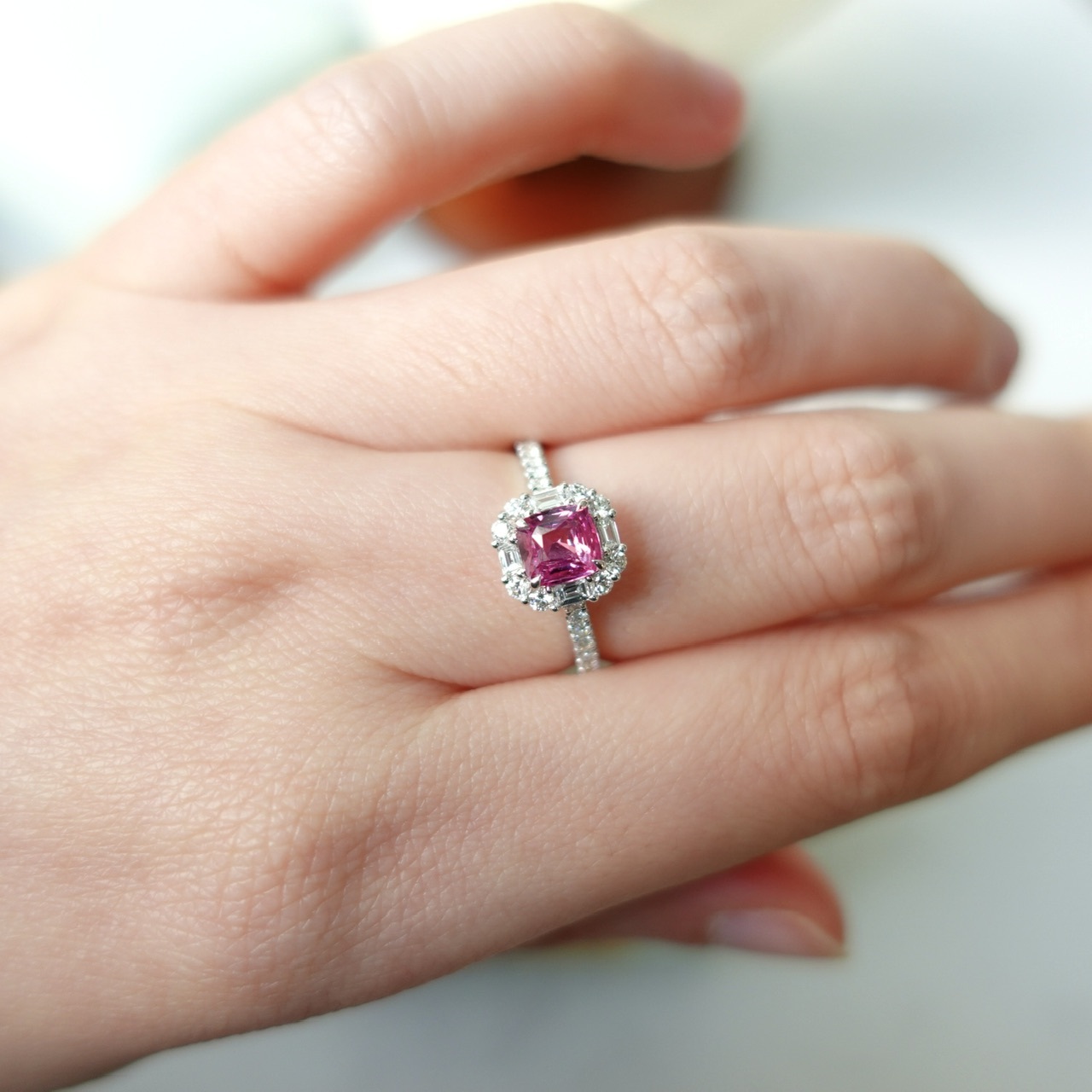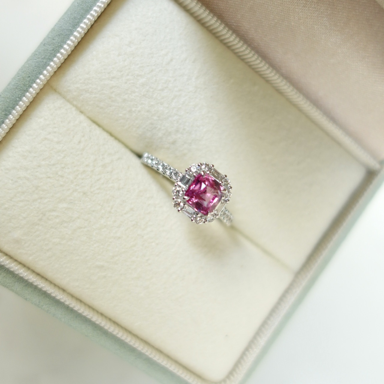 1ct無燒枕形切Padparadscha 18K金戒指-日出色 (帶寶石證書)
