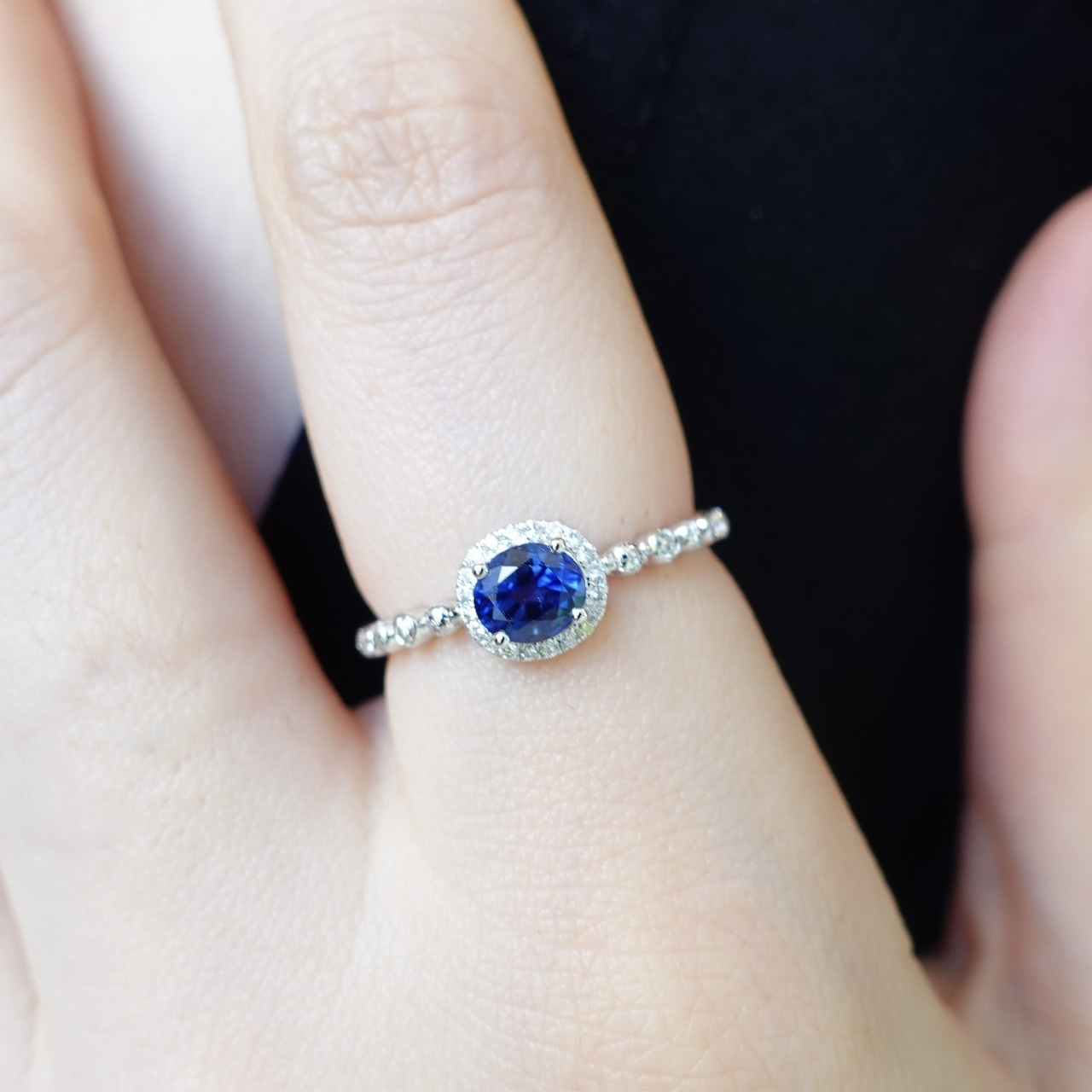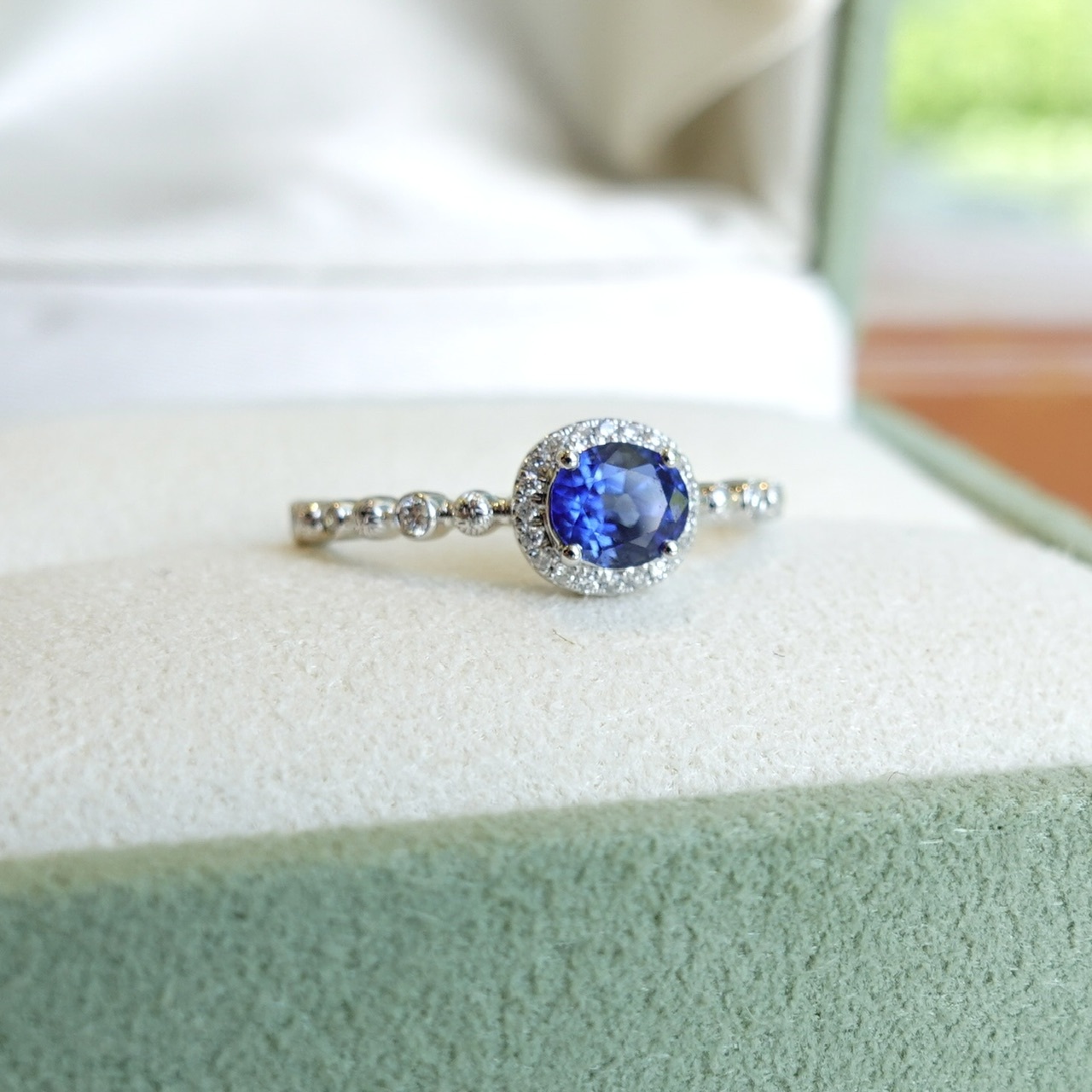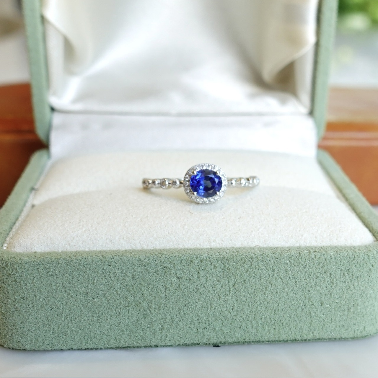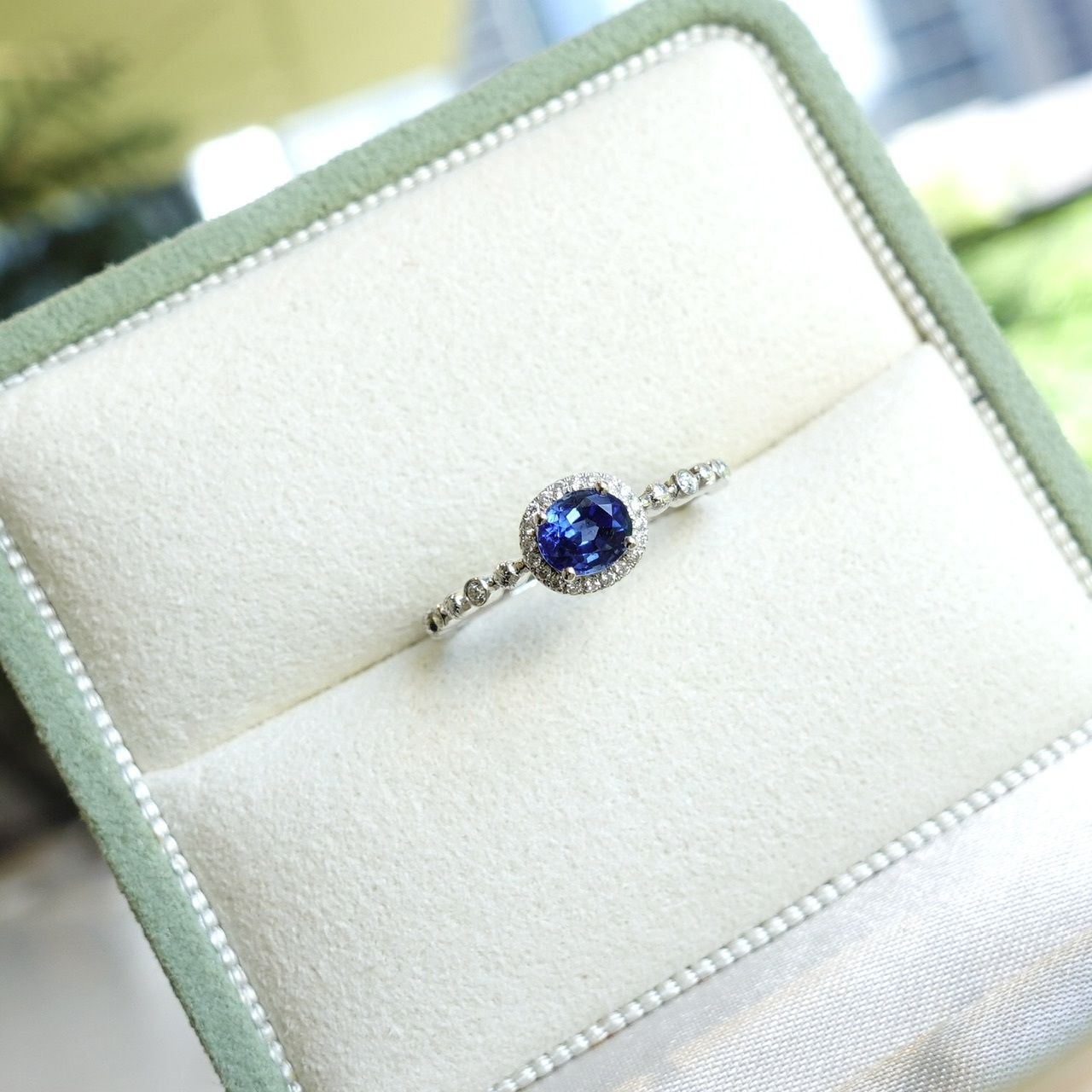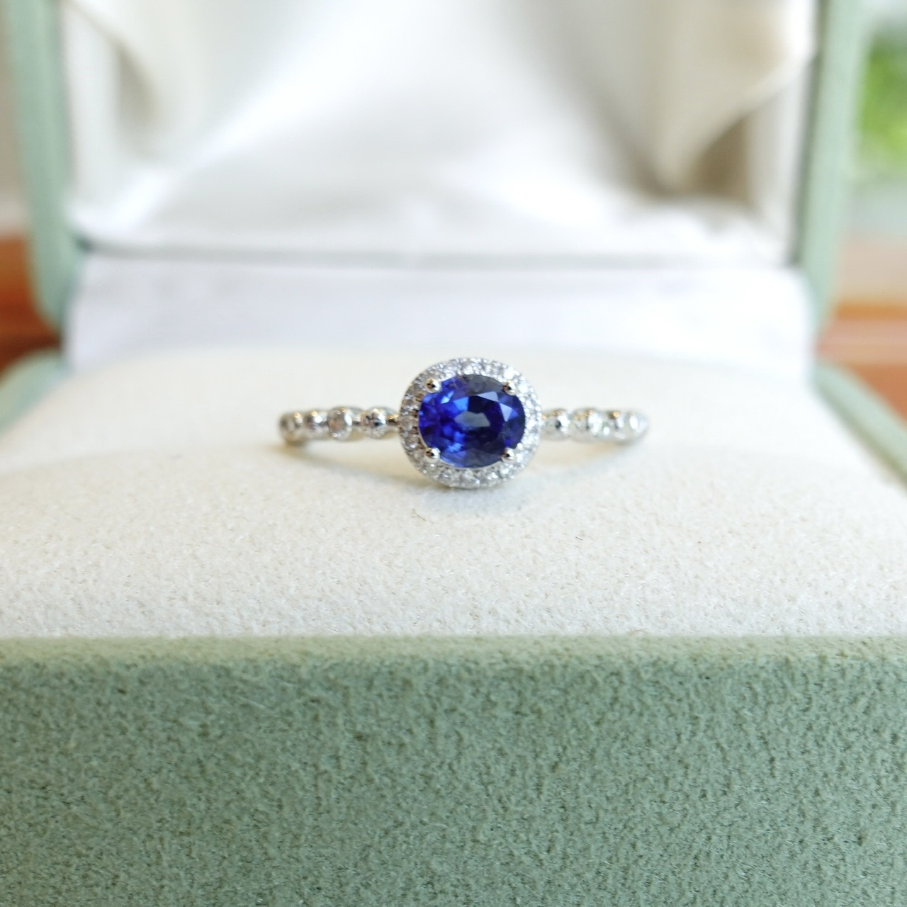 18K白金天然皇家藍藍寶石鑽石圍鑲復古戒指
