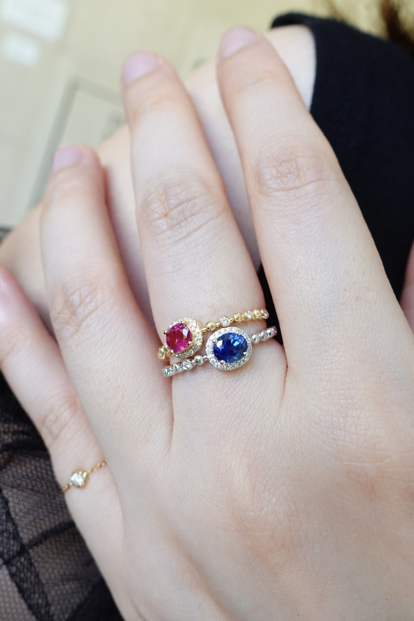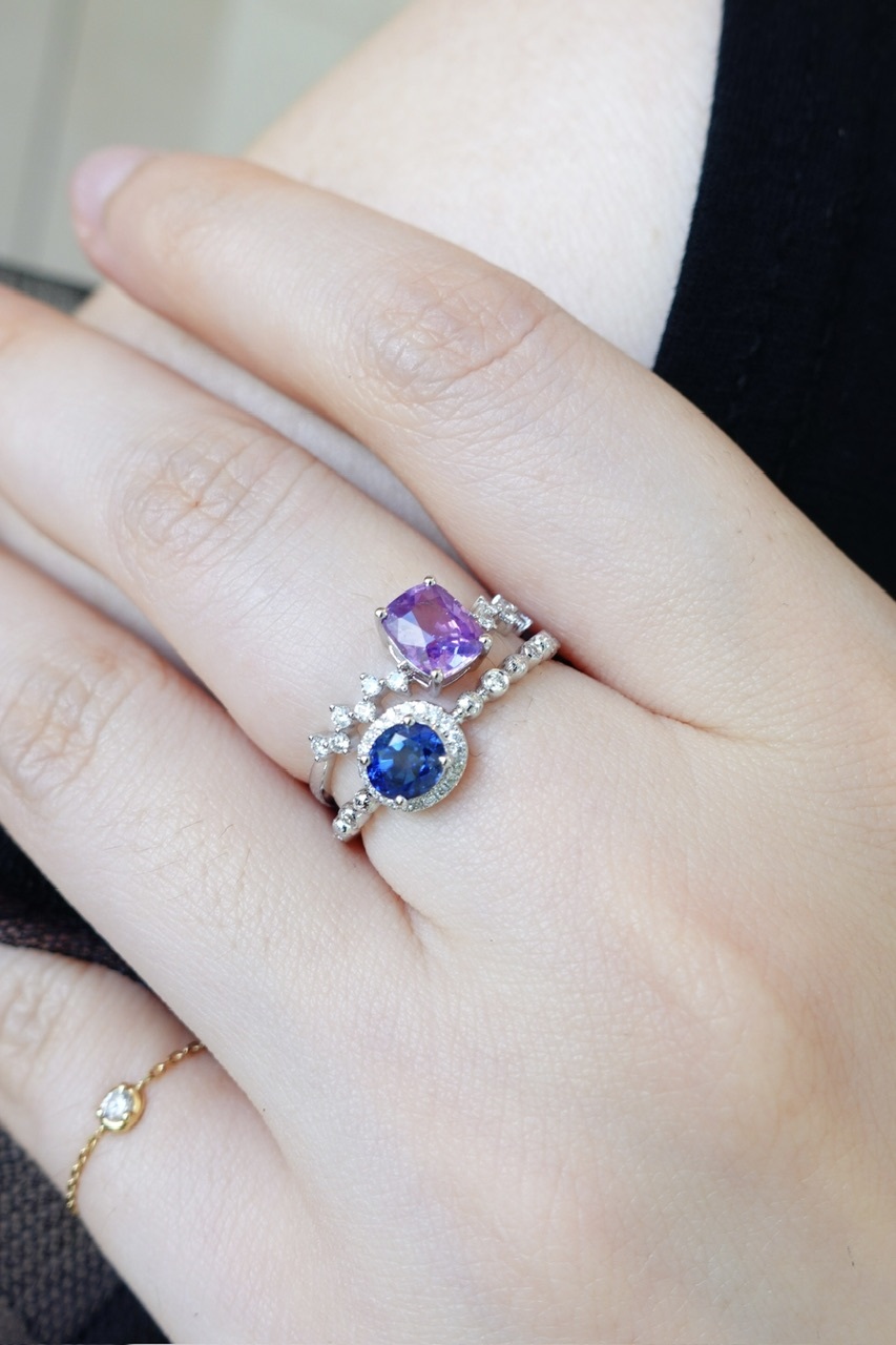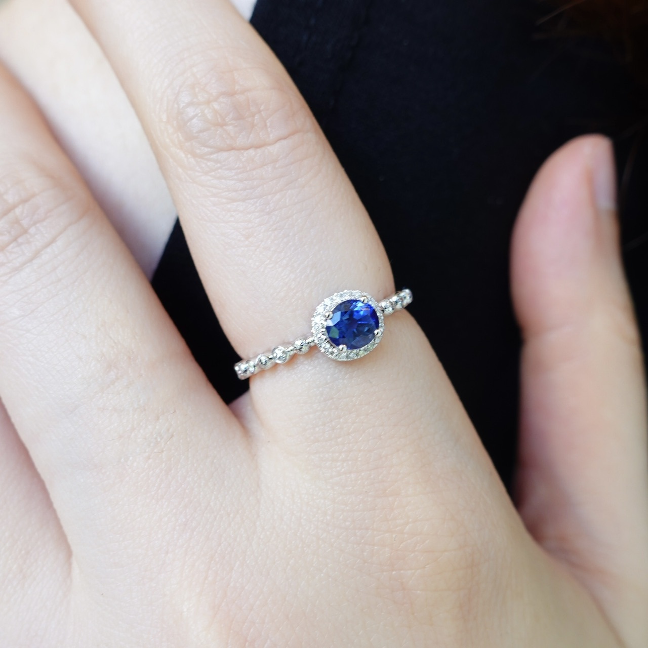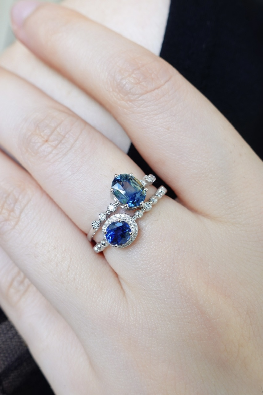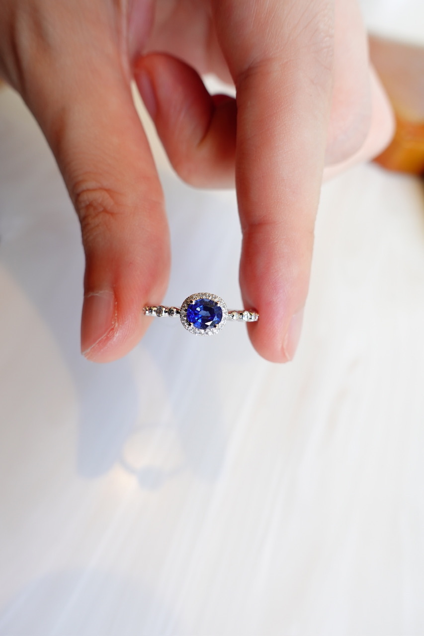 18K白金天然皇家藍藍寶石鑽石圍鑲復古戒指