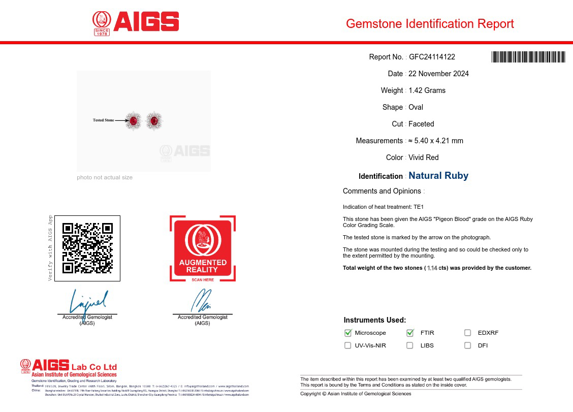 18K金鑲嵌緬甸產天然紅寶石鑽石耳釘-可拆式 (帶證書)