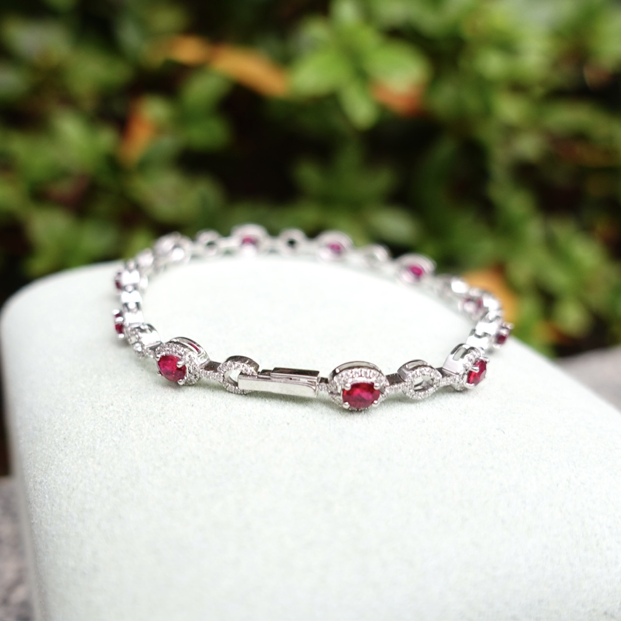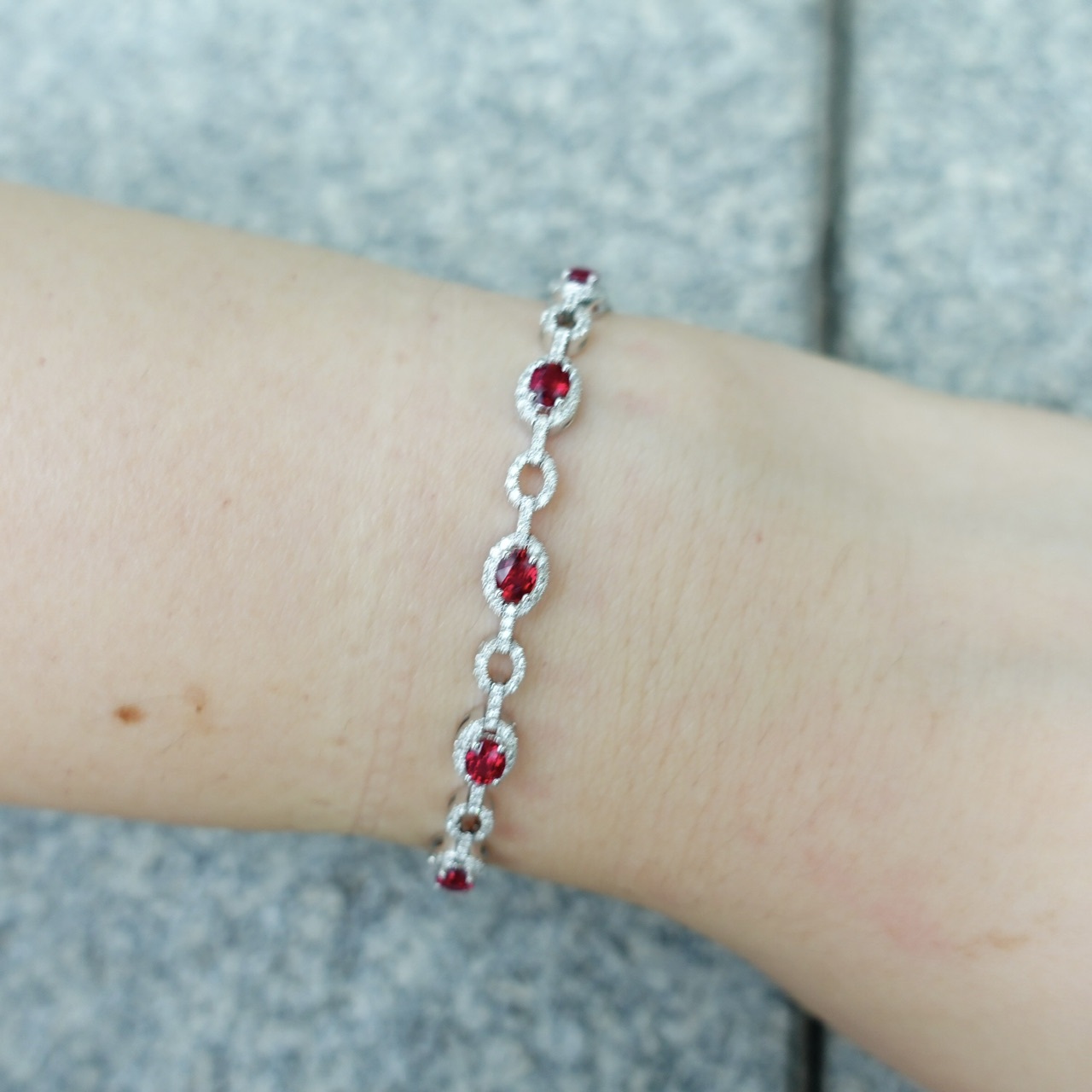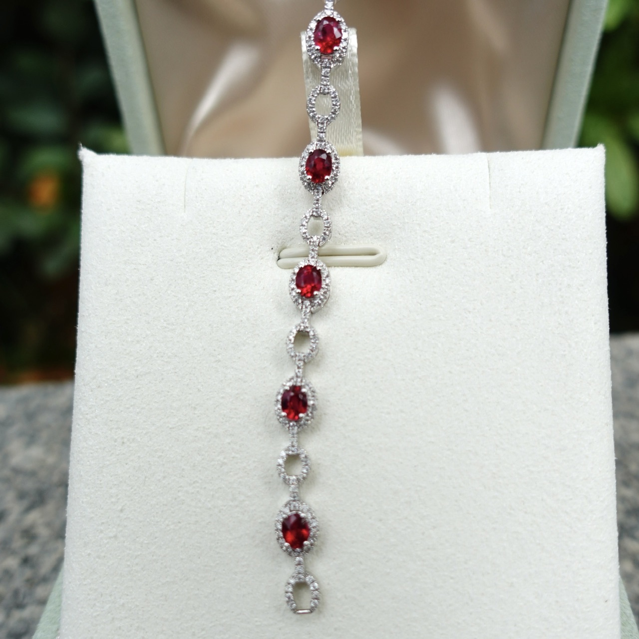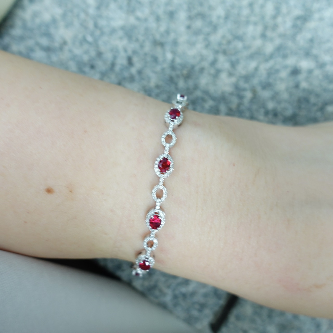 精選濃郁熾烈的鴿血紅寶石,色澤鮮明,絕不暗沉。即便在陰天光線下拍攝的產品照,依舊能拍出如火焰般溫暖耀眼的紅色光采。紅寶石與圓鑽交織相映,勾勒出輕盈靈動的線條。