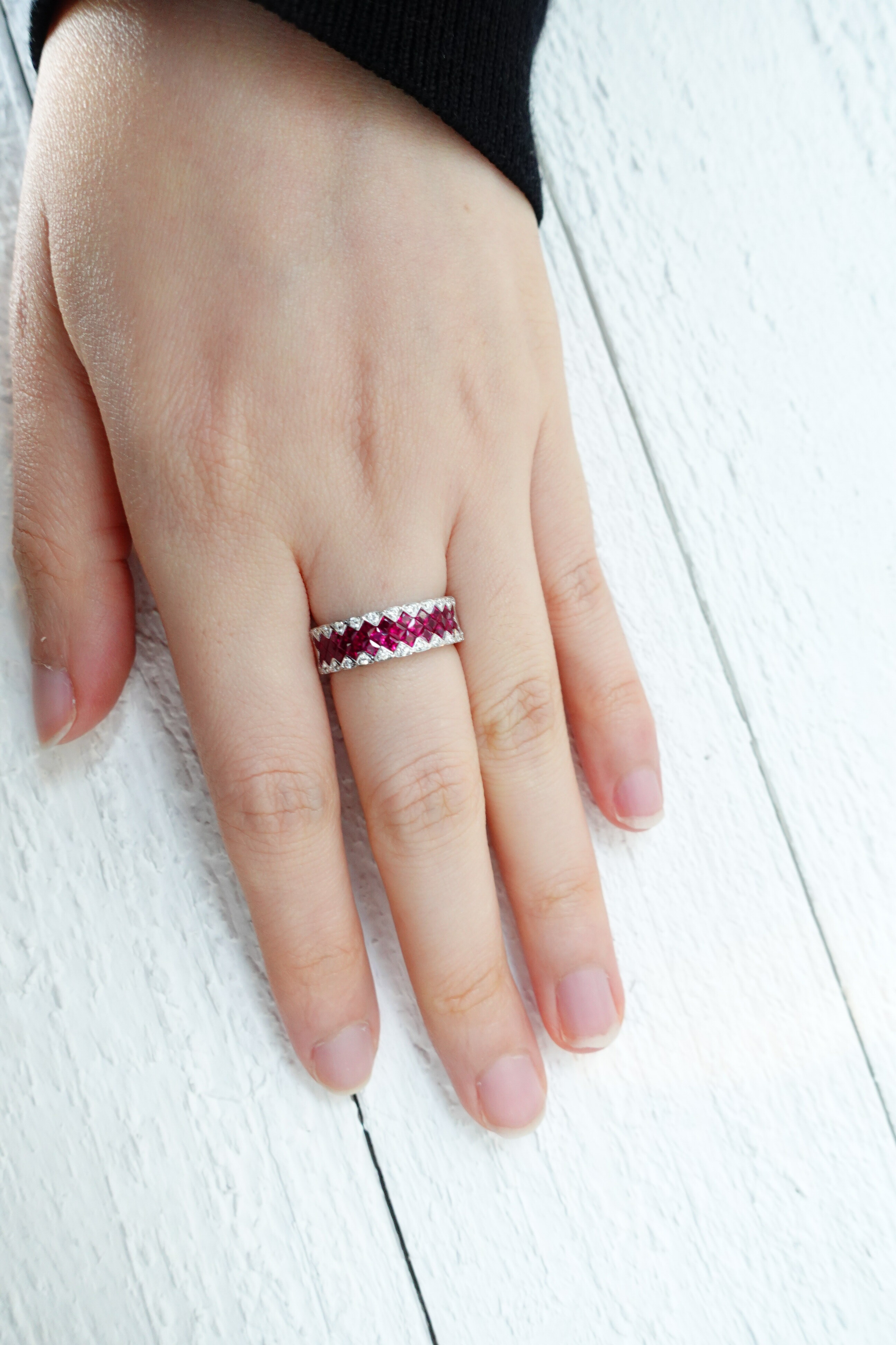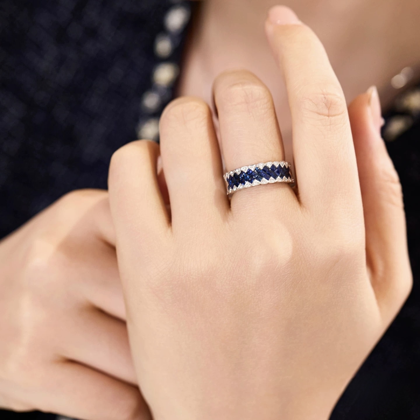 各種寶石的排戒見得多,但是採用「無縫鑲」的寶石排戒卻不常見,這是因為鑲嵌工藝繁複,對工匠的手工技巧有著很高的要求!