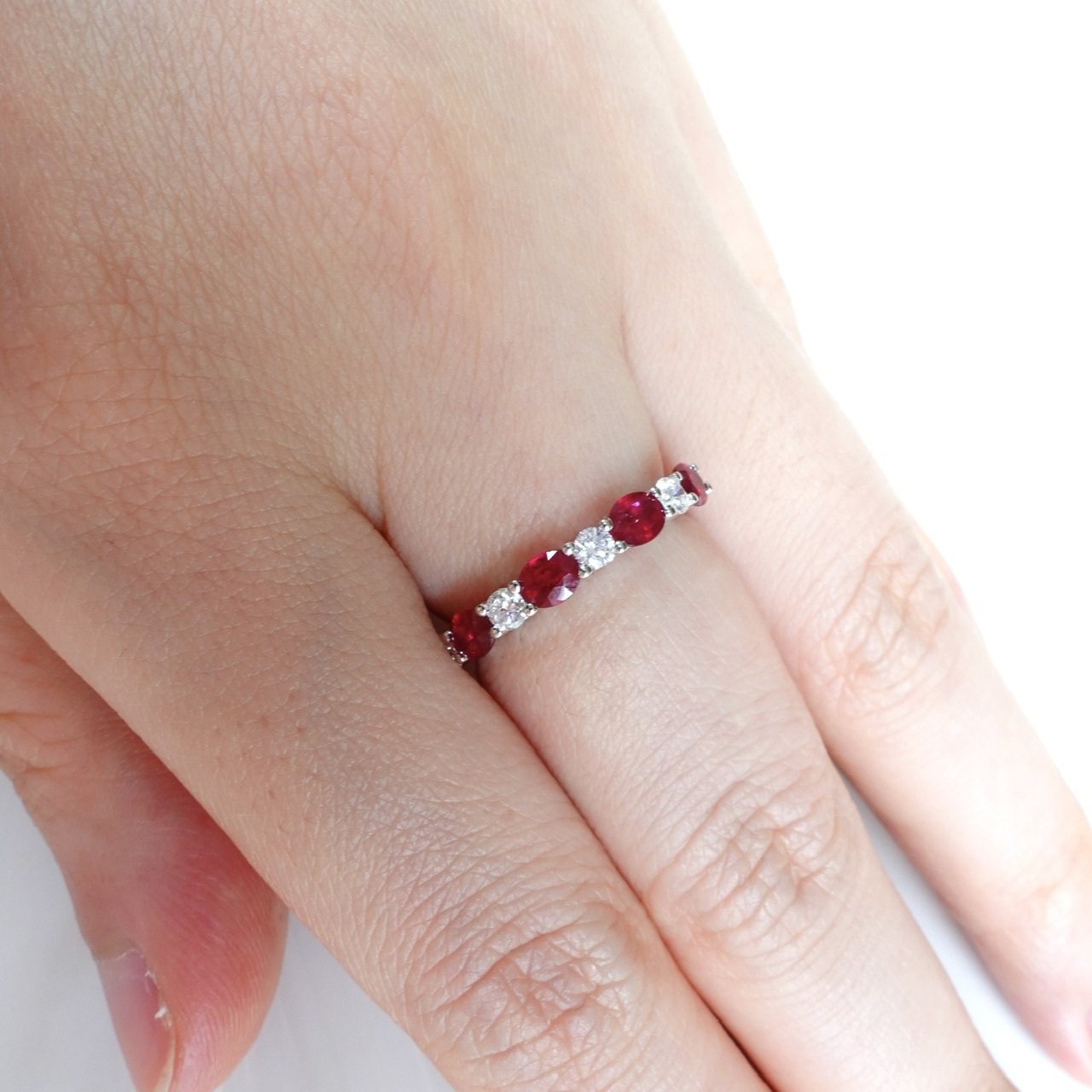 18K金天然紅寶石鑽石排戒-橢圓形切割