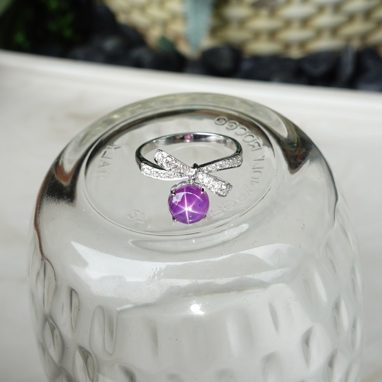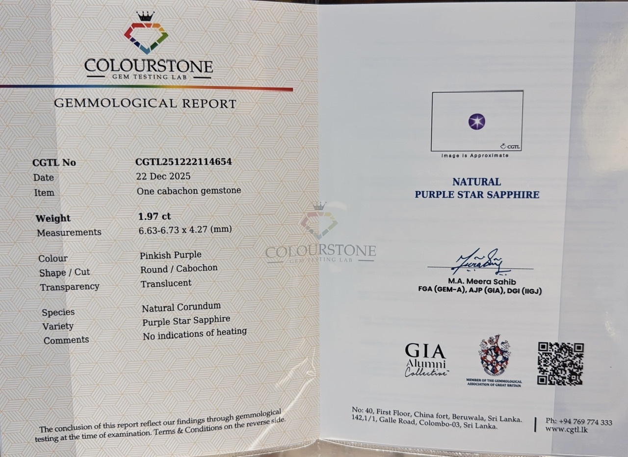 擁有特殊光學效應下紫色星光藍寶石,異常稀有,異常美麗!明亮清晰的光帶聚集於中心點,如同暗夜中閃爍的星辰!