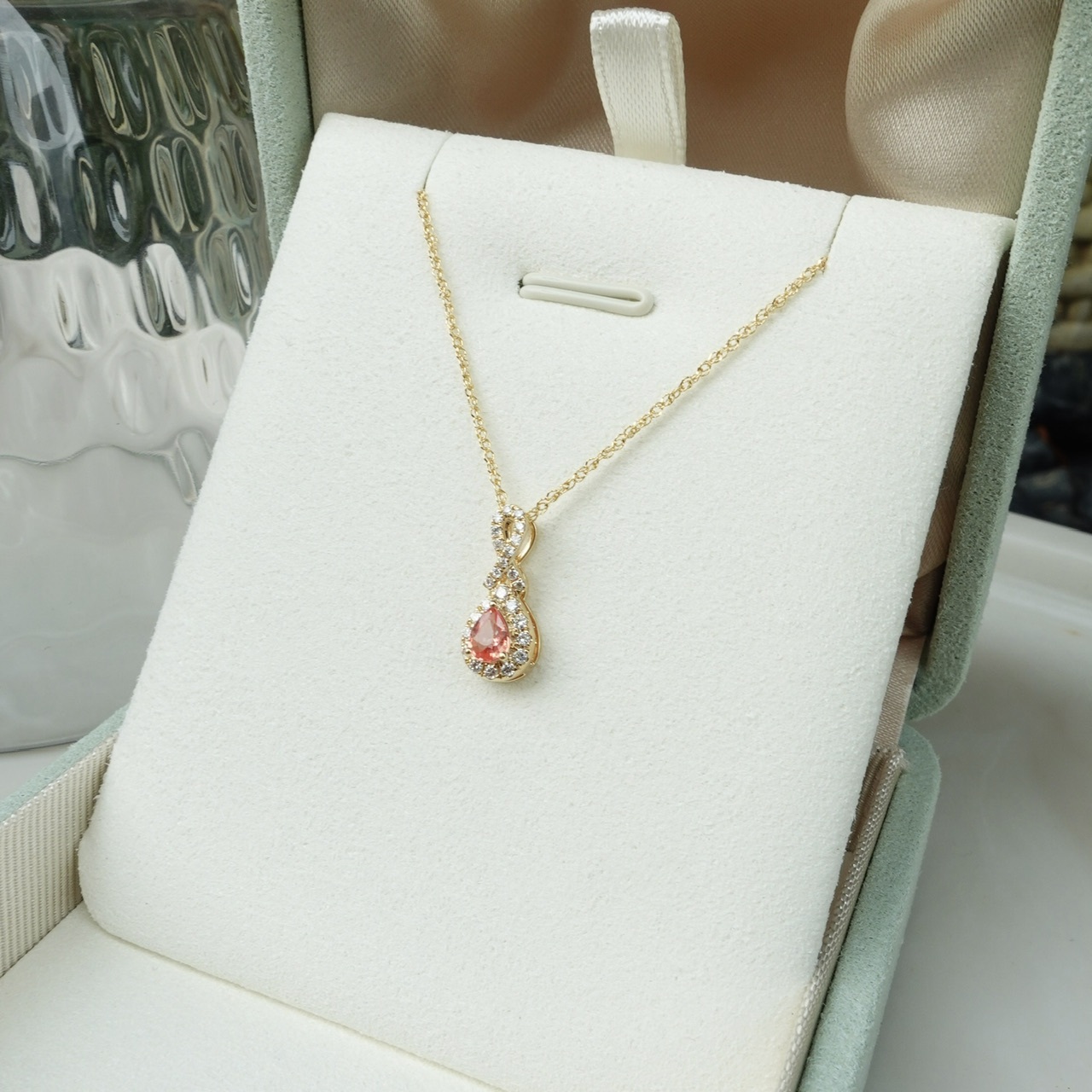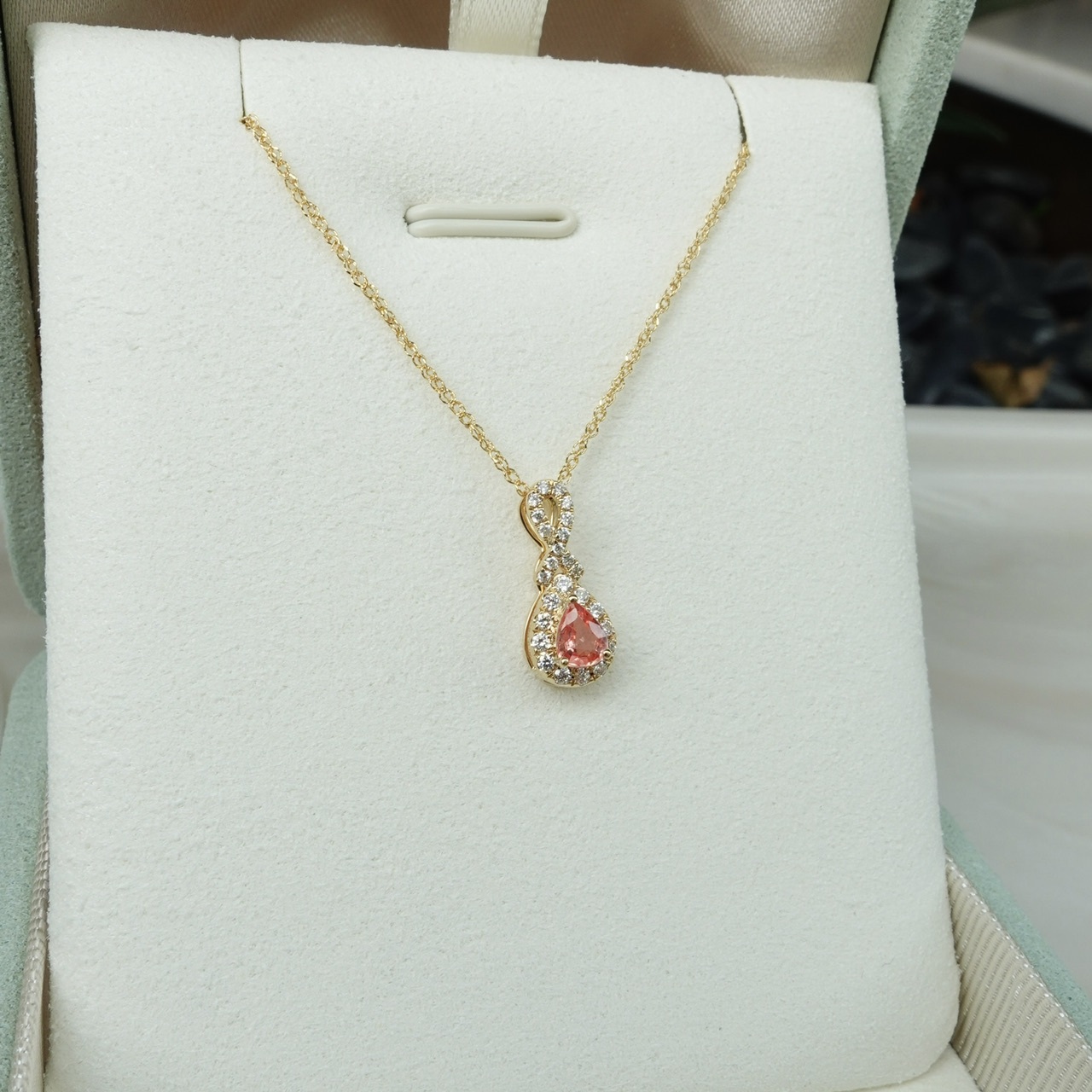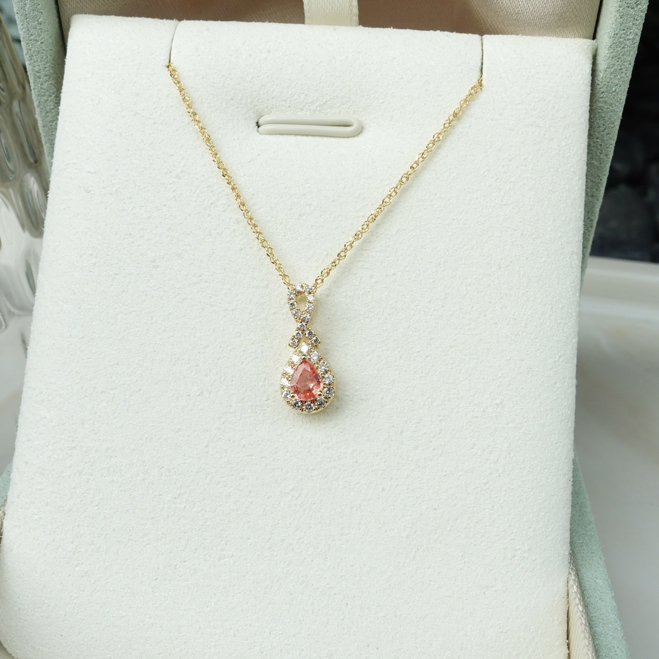 18K金Padparadscha鑽石復古吊墜/掛件 - 日落色