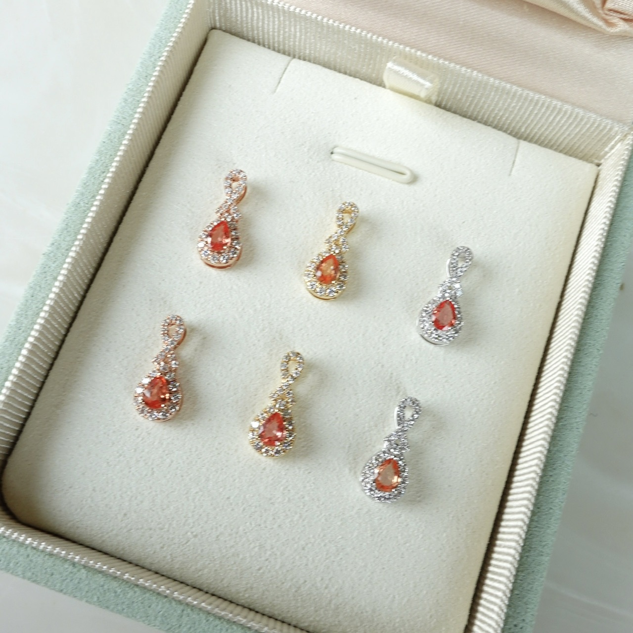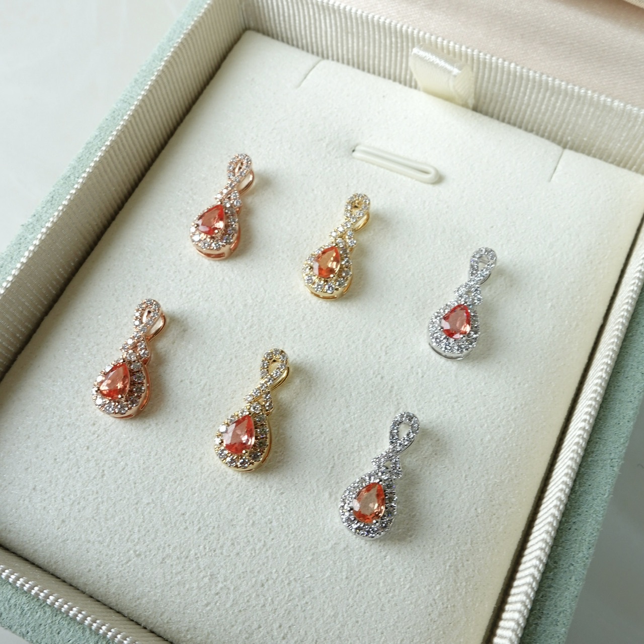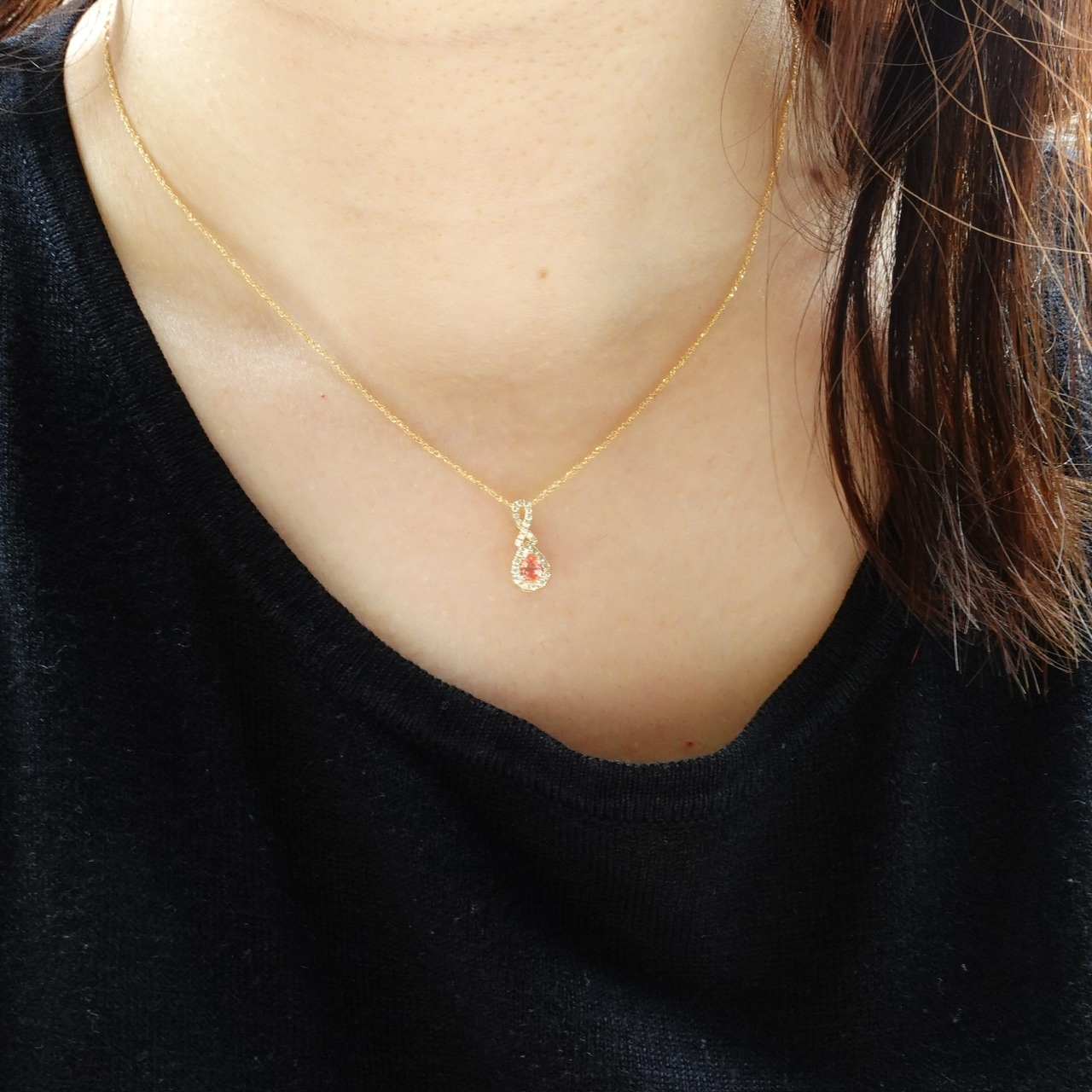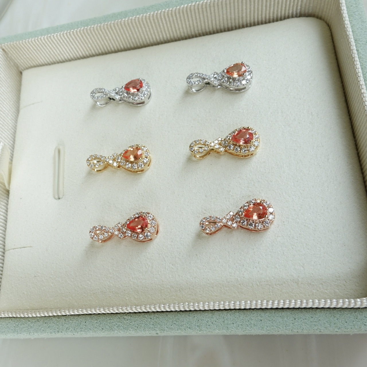 18K金Padparadscha鑽石復古吊墜/掛件 - 日落色