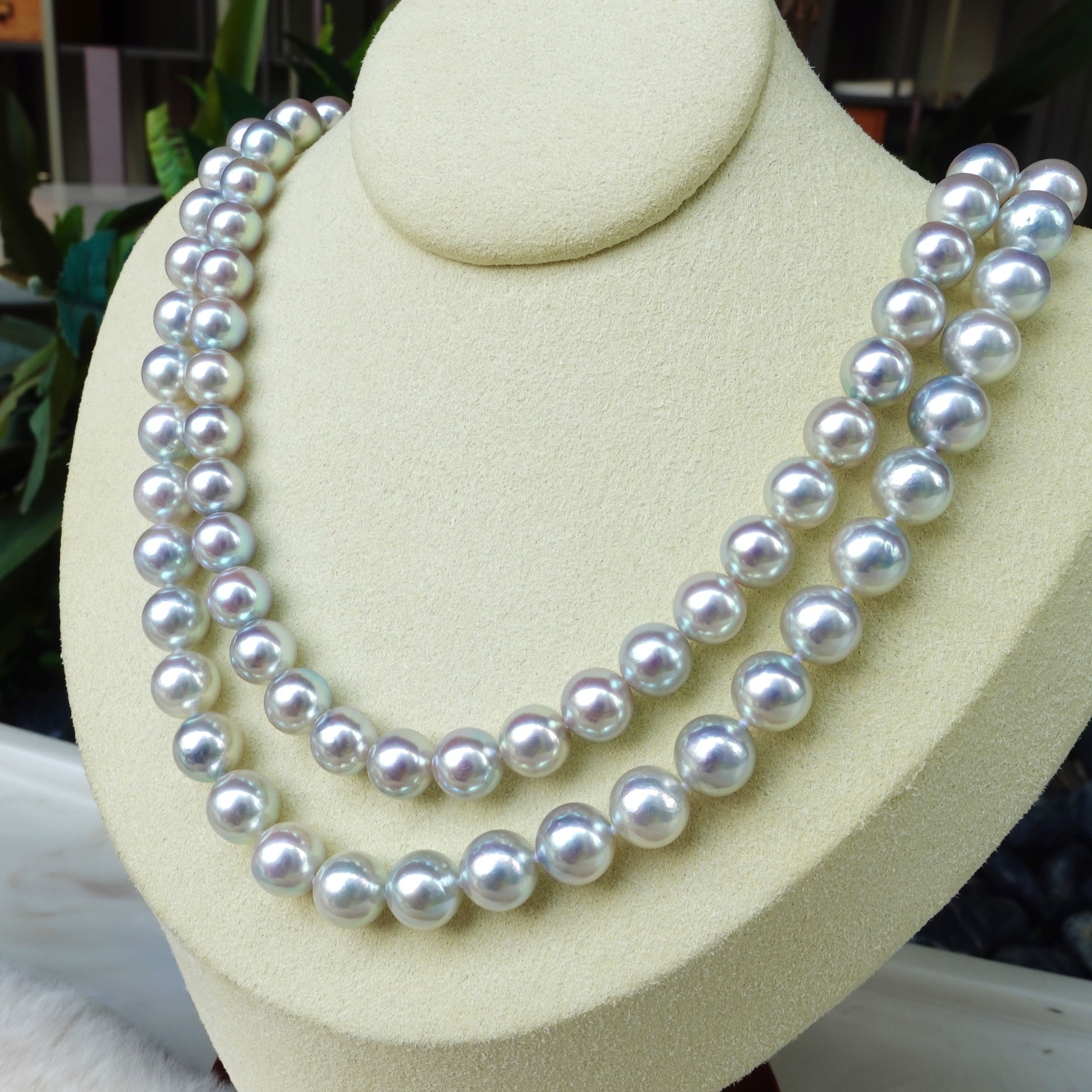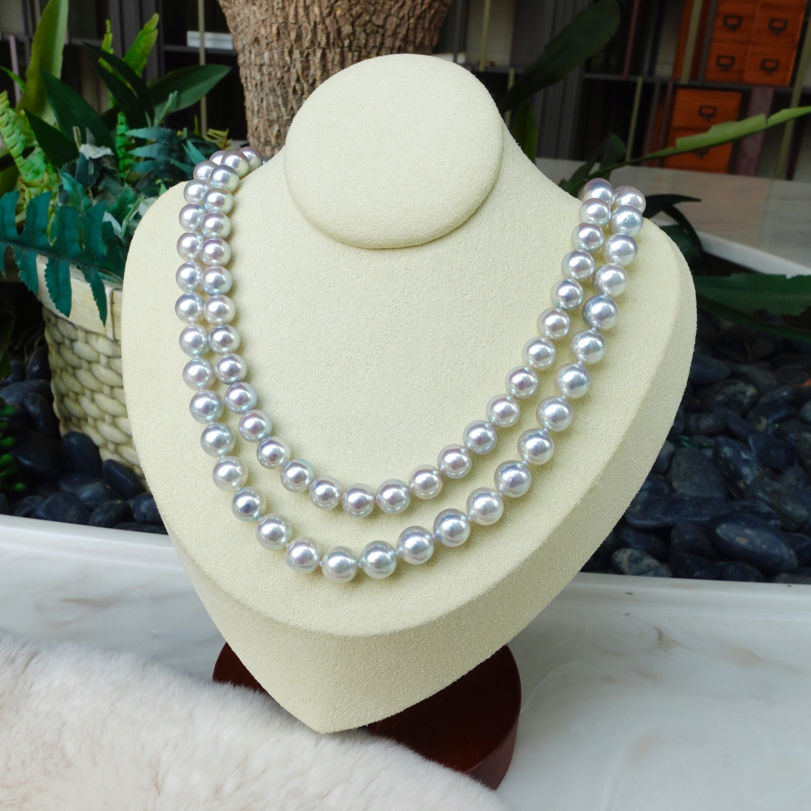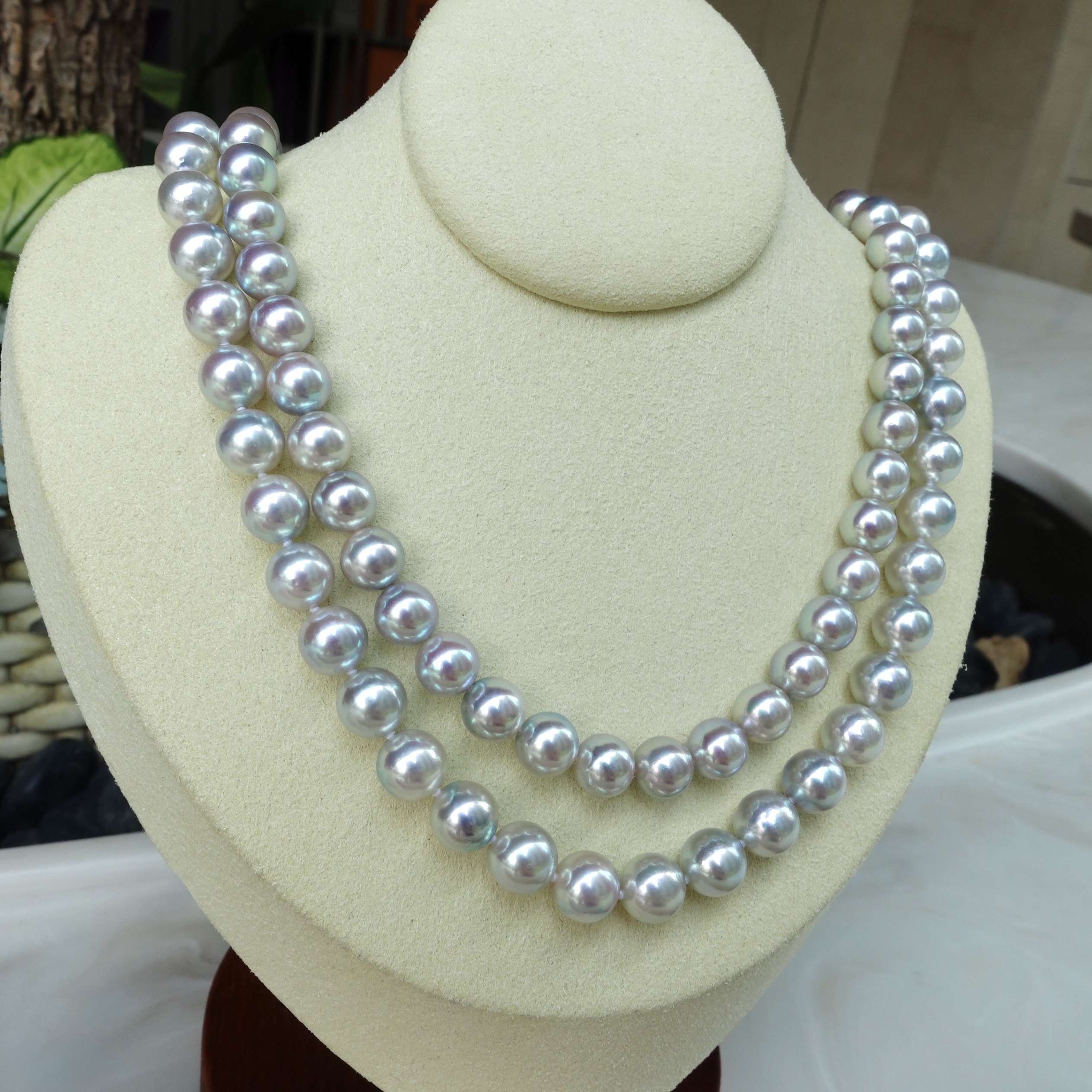 珍珠:         日本阿古屋珍珠大小:  7-7.5/7.5-8mm形狀:          正圓 顏色:       天然銀藍色系 瑕疵:      極微瑕