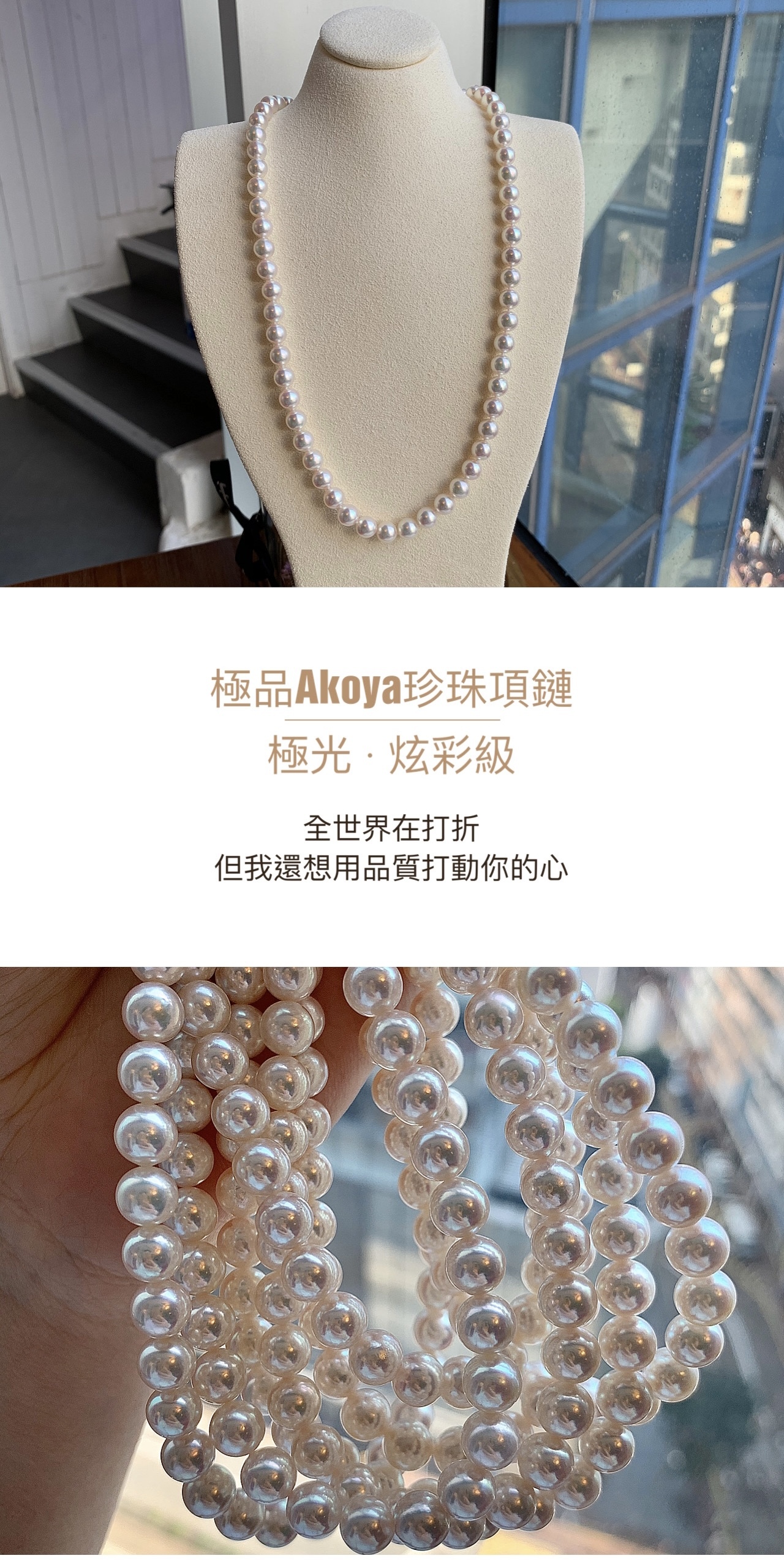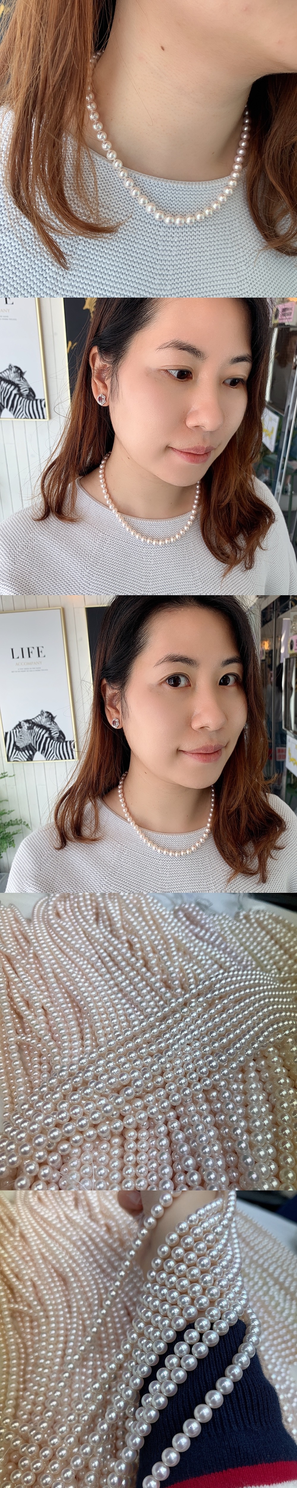 日本Akoya珍珠最迷人之處,在於其如鏡面般清晰銳利的光澤反射。更難得的是,光澤越亮,越能映現出如彩虹般的伴彩效果。推薦給追求極致光澤,同時也能包容一點珍珠天然生長紋路的你。